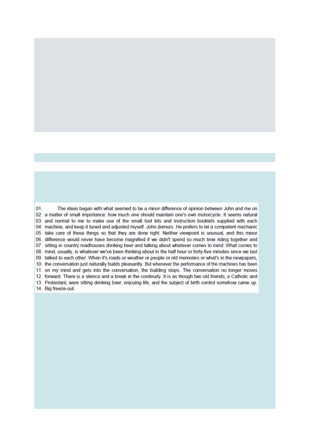 Questão 1 Correto Atingiu 0,50 de 0,50 Marcar questão Texto da questão Leia o texto a seguir. Assinale a análise INCORRETA. a. ‘seems’ (linha 2) está no simple present. b. ‘builds’ (linha 10) está no simple present. c. ‘began’ (linha 1) está no simple past. d. ‘didn’t spend’ (linha 6) está no simple past. e. ‘prefers’ (linha 4) está no present continuous. Feedback Sua resposta está correta. A resposta correta é: ‘prefers’ (linha 4) está no present continuous. Questão 2 Correto Atingiu 0,50 de 0,50 Marcar questão Texto da questão Leia o texto a seguir. TEXT KIRKUS REVIEW É verbo no simple present: a. Is (linha 6). b. Begins (linha 3). c. Todas as alternativas estão corretas. d. Fails (linha 10). e. Make (linha 13). Feedback Sua resposta está correta. A resposta correta é: Todas as alternativas estão corretas. Questão 3 Correto Atingiu 0,50 de 0,50 Marcar questão Texto da questão I ______ you in the park yesterday. You were sitting on the grass and ______ a book. a. ’ve seen / reading b. see/ reading c. saw / read d. was seeing / read e. saw / were reading Feedback Sua resposta está correta. A resposta correta é: saw / were reading Questão 4 Correto Atingiu 0,50 de 0,50 Marcar questão Texto da questão Leia o trecho. Of prime importance in reading is vocabulary skill. The reader must know the meanings of enough of the words in a sentence for it to make sense and also know how to combine individual word meanings within a sentence. O auxiliar MUST poderia ser corretamente substituído, sem alteração de sentido, por: a. Won’t b. Might c. Would d. Has to e. May Feedback Sua resposta está correta. A resposta correta é: Has to Questão 5 Correto Atingiu 0,50 de 0,50 Marcar questão Texto da questão Leia o texto a seguir. Pluto should be reclassified as a planet, experts say The reason Pluto lost its planet status is not valid, according to new research from the University of Central Florida in Orlando. In 2006, the International Astronomical Union (IAU), a global group of astronomy experts, established a definition of a planet that required it to "clear" its orbit, or in other words, be the largest gravitational force in its orbit. (...) (www.sciencedaily.com/releases/2018/09/180907110422.htm) No título do texto, o auxiliar SHOULD transmite a ideia de: a. recommendation. b. obligation. c. promise. d. prohibition. e. http://www.sciencedaily.com/releases/2018/09/180907110422.htm ability. Feedback Sua resposta está correta. A resposta correta é: recommendation. Questão 6 Correto Atingiu 0,50 de 0,50 Marcar questão Texto da questão Na frase “(...) while it’s impossible to believe that everyone can speak in exactly the same way in all areas of a vast nation, the different accents may at times be so difficult to understand that they inhibit communication”, os auxiliares em negrito expressam: a. Ability and permission b. Ability and possibility c. Certainty and ability d. Possibility and permission e. Certainty and possibility Feedback Sua resposta está correta. A resposta correta é: Ability and possibility Questão 7 Correto Atingiu 0,50 de 0,50 Marcar questão Texto da questão When Peter arrived at the airport, the plane __________. a. leaves. b. is leaving. c. had left. d. will leave. e. has left. Feedback Sua resposta está correta. A resposta correta é: had left. Questão 8 Correto Atingiu 0,50 de 0,50 Marcar questão Texto da questão A preposição está usada corretamente em: a. My classes are in the morning. b. Lisa is going to the cinema at Wednesday morning. c. My father is arriving on February. d. We spent a few days on Rome last year. e. The party starts in ten o’clock. Feedback Sua resposta está correta. A resposta correta é: My classes are in the morning. Questão 9 Correto Atingiu 0,50 de 0,50 Marcar questão Texto da questão Os verbos das frases “…remote workers are already common” e “The workforce is changing massively” estão, respectivamente, no: a. simple present and present perfect. b. present perfect and simple present. c. simple past and simple present. d. present continuous and present continuous. e. simple present and present continuous. Feedback Sua resposta está correta. A resposta correta é: simple present and present continuous. Questão 10 Correto Atingiu 0,50 de 0,50 Marcar questão Texto da questão Leia. A alternativa que completa a lacuna da figura acima é: a. puts b. will put c. putted d. put e. putting Feedback Sua resposta está correta. A resposta correta é: put Questão 11 Correto Atingiu 0,50 de 0,50 Marcar questão Texto da questão O simple past de ‘sell’ é: a. Slept b. Said c. Sent d. Sold e. Saw Feedback Sua resposta está correta. A resposta correta é: Sold Questão 12 Correto Atingiu 0,50 de 0,50 Marcar questão Texto da questão O infinitivo de spent é: a. spented. b. spends. c. spend. d. spending. e. spents. Feedback Sua resposta está correta. A resposta correta é: spend. Questão 13 Correto Atingiu 0,50 de 0,50 Marcar questão Texto da questão Ronaldo, the soccer world, confirmed his retirement today at the age of 34. The Brazilian legend has decided to hang up his boots due to injuries and a loss of fitness. “I’m ending my career as a professional soccer player. It’s been a beautiful, emotional, marvelous career. However, these last two years, I’ve had a long series of injuries, from one side to the other, one leg to the other, one muscle to the other,” the Corinthians striker said. (Adapted from Maganews Mar 2011) Os verbos sublinhados no texto estão no: a. present continuous b. past perfect c. past perfect d. simple present e. present perfect Feedback Sua resposta está correta. A resposta correta é: present perfect Questão 14 Correto Atingiu 0,50 de 0,50 Marcar questão Texto da questão Assinale a alternativa que completa a lacuna. Max _________________ ill for three weeks. He’s still in hospital. a. were b. has been c. was d. i