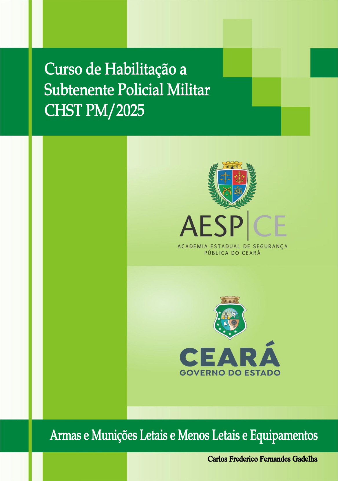 00 AESP CE ACADEMIA ESTADUAL DE SEGURANÇA PÚBLICA DO CEARÁ CEARÁ GOVERNO DO ESTADO GOVERNO DO ESTADO DO CEARÁ ELMANO de FREITAS da Costa GOVERNADOR DO ESTADO DO CEARÁ SECRETARIA DA SEGURANÇA PÚBLICA E DEFESA SOCIAL - SSPDS Antonio ROBERTO Cesário de SÁ - DPF SECRETÁRIO DA SSPDS ACADEMIA ESTADUAL DE SEGURANÇA PÚBLICA DO CEARÁ – AESP|CE LEONARDO D`Almeida Couto BARRETO - DPC DIRETOR-GERAL DA AESP|CE CIRO de Assis Lacerda – DPC DIRETOR-GERAL ADJUNTO DA AESP|CE EVANDRO Queiroz de Assunção – Cel PM DIRETOR DE ENSINO POLICIAL MILTAR DA AESP|CE Pâmela Costa LANDIM Saboya – Maj PM SECRETÁRIA ACADÊMICA DA AESP|CE CURSO DE HABILITAÇÃO A SUBTENENTE POLICIAL MILITAR - CHST PM/2025 DISCIPLINA Armas e Munições Letais e Menos Letais e Equipamentos CONTEUDISTA Carlos Frederico Fernandes Gadelha FORMATAÇÃO JOELSON Pimentel da Silva – 1º SGT PM • 2025 • SUMÁRIO ARMAS E MUNIÇÕES LETAIS E MENOS LETAISE E EQUIPAMENTOS ..................................... 1 1. INTRODUÇÃO ............................................................................................................... 1 1.1 Normas de Segurança ................................................................................................ 1 2. NOÇÕES LEGAIS .............................................................................................................. 3 2.1 Legislação – Uso seletivo progressivo da força ........................................................... 3 2.2 Doutrina sobre uso da arma de fogo ...................................................................... 5 3. CONCEITO E CLASSIFICAÇÃO DO ARMAMENTO LETAL .................................................... 7 3.1 Conceito de Arma de fogo: ........................................................................................ 8 3.2 Classificação: .............................................................................................................. 8 4. NOÇÕES DE BALÍSTICA .................................................................................................. 11 4.1 Calibre ..................................................................................................................... 11 4.2 Munições ................................................................................................................. 12 5. ARMAMENTO LETAL ..................................................................................................... 13 6. INSTRUMENTOS DE MENOR POTENCIAL OFENSIVO (IMPO) ......................................... 15 6.1 Classificação dos sistemas não-letais: ...................................................................... 16 6.2 Técnicas de Menor Potencial Ofensivo (TeMPO) ...................................................... 16 6.3 Equipamentos de Menor Potencial Ofensivo (EMPO)............................................... 16 6.4 Armas/Munições de Menor Potencial Ofensivo (AMPO/MuMPO) ........................... 17 6.5 Armas e Munições de Menor Potencial Ofensivo ..................................................... 17 7. EQUIPAMENTOS POLICIAIS ........................................................................................... 24 TERMOS TÉCNICOS DE ARMAS E MUNIÇÕES (ANEXO AO DECRETO 10.030 DE 30.09.2019) ......................................................................................................................................... 26 1 ARMAS E MUNIÇÕES LETAIS E MENOS LETAISE E EQUIPAMENTOS 1. INTRODUÇÃO A cada nova graduação conquistada, novas responsabilidades surgem. Neste sentido, com os anos, devemos sempre buscar estar mais preparados para o exercício das nossas missões. Chega um momento que não seremos somente operadores de armamentos letais e menos letais. Passaremos a ser indagados sobre como usar e seremos orientadores e até mesmo fiscais, ajudando os escalões mais subordinado para o uso legal e correto. 1.1 Normas de Segurança Uma das principais preocupações que você deve ter neste contexto é saber usar com total segurança e cobrar que todos também tenham esse devido zelo profissional. A grande maioria dos acidentes de tiro e os possíveis nefastos resultados são decorrentes do Excesso de Confiança. Nunca se permita relaxar em relação às regras de segurança. Importante serem, logo neste início, relembradas abaixo algumas regras de seguranças consagradas e constantes na maioria dos manuais dos armamentos: 1. Considere toda arma como se estivesse carregada; 2. Mantenha seu dedo fora do gatilho, salvo necessidade de efetuar algum disparo (entenda aqui uma ação em legítima defesa, quando outro meio menos gravoso não seja hábil); 3. Nunca aponte a arma para qualquer coisa ou pessoa que você não pretenda acertar; 4. Antes de utilizar uma arma, obtenha informações sobre seu manuseio com um competente instrutor; 5. Antes de qualquer limpeza, certifique-se de que a arma esteja descarregada; 2 6. Nunca deixe uma arma de forma descuidada (Neste caso se algum inimputável se apoderar da arma, você estará praticando o crime de Omissão de Cautela, além do risco que poderá estar incidindo e poder acontecer uma tragédia); 7. Sempre que entregar uma arma a alguém, entregue-a descarregada e aberta e ao recebê-la verifique se a mesma está realmente descarregada; 8. Nunca engatilhe a arma quando não houver intenção de atirar; 9. Nunca manuseie arma sem necessidade, especialmente dentro de ambientes fechados ou dentro de viaturas (O manuseio deve ser feito com o cano apontado para um local seguro, como é o caso das caixas de areia perto das reservas nos quartéis); 10. Não dispare quando na mesma linha de tiro houver pessoas inocentes (cuidado com o “fogo amigo”); 11. Não dispare se houver possibilidades, por mínimas que sejam, do projétil, como “bala perdida”, atingir pessoas inocentes; 12. Não dispare em agressor que esteja no meio do povo; proteja-se; chame apoio; faça o cerco;