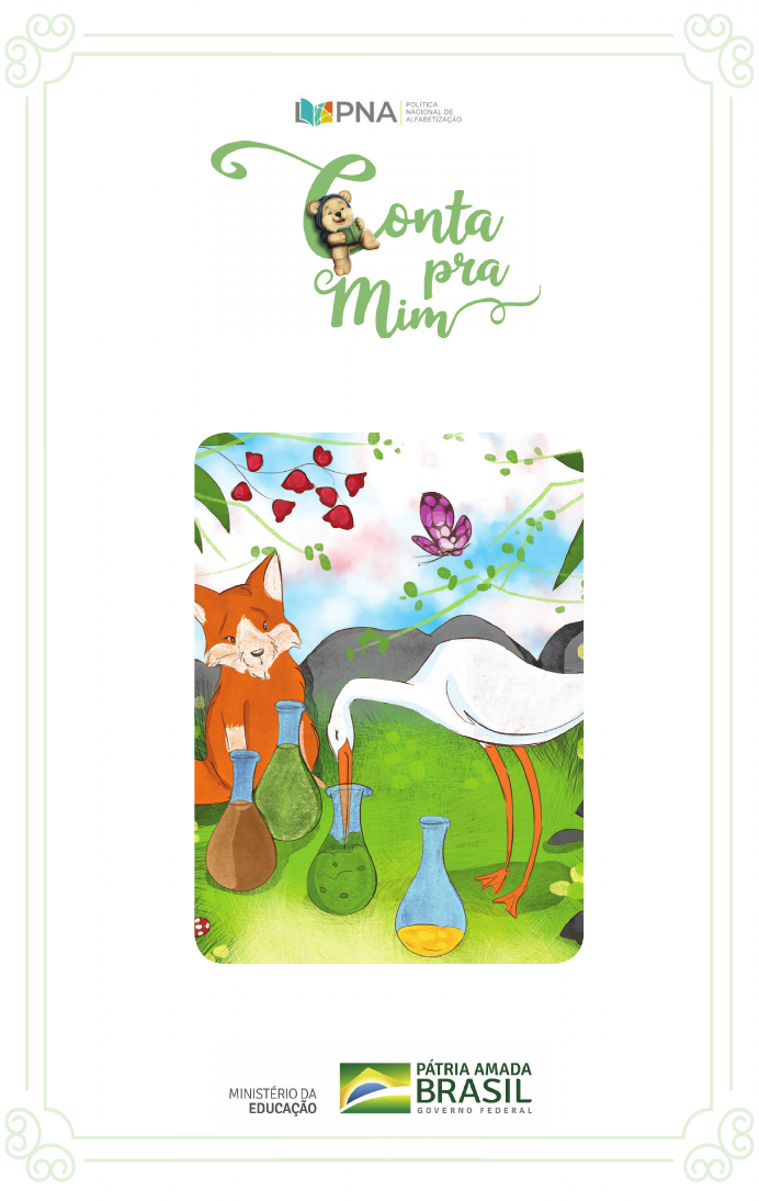 A Cegonha e a Raposa Série Ficção Fábulas e Outras Histórias A Coleção Conta pra Mim é dedicada à família — mães, pais, fi lhas, fi lhos, avós, avôs... Neste livro, vamos conhecer o curioso universo das fábulas, em que as atitudes das pessoas são representadas por bichos. Essas pequenas histórias imaginativas são verdadeiros convites para cultivarmos as virtudes. Viajar por esse universo na companhia da família será com certeza uma experiência que vocês guardarão por toda a vida. Sejam todos muito bem-vindos! Infância e leitura — o caminho de uma boa aventura. Coleção Conta pra Mim Série Ficção Fábulas Dados Internacionais de Catalogação na Publicação (CIP) de acordo com ISBD C389 A cegonha e a raposa e outras histórias [recurso eletrônico] / organizado por Ministério da Educação – MEC ; coordenado por Secretaria de Alfabetização - Sealf. – Brasília, DF : MEC/Sealf, 2020. 16 p. : il. ; PDF ; 15,2 MB. – (Coleção Conta pra Mim) ISBN: 978-65-87026-41-1 (Ebook) 1. Literatura infantil. I. Ministério da Educação – MEC. II. Secretaria de Alfabetização - Sealf. III. Título. IV. Série. 2020-1038 CDD 028.5 CDU 82-93 Elaborado por Vagner Rodolfo da Silva - CRB-8/9410 Índice para catálogo sistemático: 1. Literatura infantil 028.5 2. Literatura infantil 82-93 Autoria: Ricardo Moreira Figueiredo Filho Ilustrações: Vanessa Alexandre Edição: Marismar Borém Direção geral e curadoria: Wiliam Ferreira da Cunha Supervisão técnica e de conteúdo: Carlos Francisco de Paula Nadalim Revisão de texto: Felipe Salomão Cardoso e Adriana Araújo Figueiredo Publicado em 2020 pelo Ministério da Educação (MEC) em cooperação com a Editora Cora e com a Organização das Nações Unidas para a Educação, a Ciência e a Cultura (UNESCO), no âmbito do Projeto 914BRZ1074 - 914BRZ1074.3 sob o contrato ED00217/2020 © MEC 2020 Esta publicação está disponível em acesso livre ao abrigo da licença Atribuição 4.0 Internacional (CC BY 4.0) (https://creativecommons.org/licenses/by/4.0/deed.pt_BR). Ao utilizar o conteúdo da presente publicação, os usuários aceitam os termos de uso do Repositório de Domínio Público do MEC (http://www.dominiopublico.gov.br/pesquisa/PesquisaObraForm.jsp). A Cegonha e a Raposa e Outras Histórias 3 A Cegonha e a Raposa A Raposa convidou sua amiga Cegonha para almoçar. Preparou um banquete, tudo bem molinho, como uma sopa. Porém, serviu as refeições sobre a pedra. 444 A ave tentou se alimentar, mas, como tinha um bico longo, machucou-se e voltou faminta para sua moradia. 555 Em outra oportunidade, a Cegonha convidou a Raposa para a merenda. Quitutes gostosos foram elaborados com carinho e servidos em vasilhas es- treitas e longas. 6 A Raposa fez várias tentativas, mas seu focinho não alcançou a comida. Desta vez, foi ela que voltou esfomeada para casa. As Árvores e o Machado No canto de um celeiro, havia um machado sem cabo. As árvores viram o instrumento triste e decidiram dar-lhe a madeira necessária para fazer a haste. 7 Pouco depois, um lenhador apanhou o machado e começou a destruir todo o bosque. 8 Em apuros, uma árvore disse a outra: — Tudo culpa nossa! Não deveríamos ter presenteado a ferramenta… 9 10 O Galo e a Pérola Um Galo ciscava no quintal, procuran- do algo gostoso para comer. Revirou uma pedra e encontrou uma pérola. Então, pensou: 11 — Se isto fosse uma semente ou uma deliciosa minhoca, eu poderia comer. Deixou aquele tesouro de lado e con- tinuou sua busca por alimento. 12 O Carvalho e o Caniço O Carvalho vistoso, para ser imitado, aconselhou o Caniço a não se curvar perante a passagem do vento ou de qualquer brisa. 13 O Caniço respondeu: — Você é robusto, pode fi car fi rme. 14 Um furacão passou e arrancou do chão o Carvalho, com raízes e tudo. Mas o Caniço, que se contorcia, resistiu. Conversa entre adultos e crianças antes, durante e depois da leitura em voz alta. Leitura Dialogada O que é? Fortalecer os laços afetivos entre pais e fi lhos. Quais são os benefícios? Contribuir para a alfabetização e reforçar a aprendizagem escolar das crianças. Como praticar? Escolha um momento tranquilo para iniciar a leitura dialogada. Leia com calma. Pronuncie bem as palavras, cuidando com carinho do tom de voz. Deslize o dedo indicador sob as palavras durante a leitura. Nomeie as ilustrações e dê tempo para seu fi lho apreciá-las. Valorize os comentários de seu fi lho, explorando outros aspectos das histórias. Ao sair de casa, leve sempre livros para ler com seu fi lho. Aproveite todas as oportunidades! 1. Trate seu fi lho com muito amor e carinho. 2. Converse com seu fi lho. 3. Valorize e respeite o que seu fi lho tem a dizer. 4. Leia em voz alta para seu fi lho. 5. Conte histórias para seu fi lho. 6. Dê livros de presente para seu fi lho. 7. Leia e escreva diante de seu fi lho. 8. Participe da vida escolar de seu fi lho. 9. Elogie e encoraje seu fi lho. 10. Tenha altas expectativas em relação a seu fi lho. Literacia Familiar em Dez Pontos