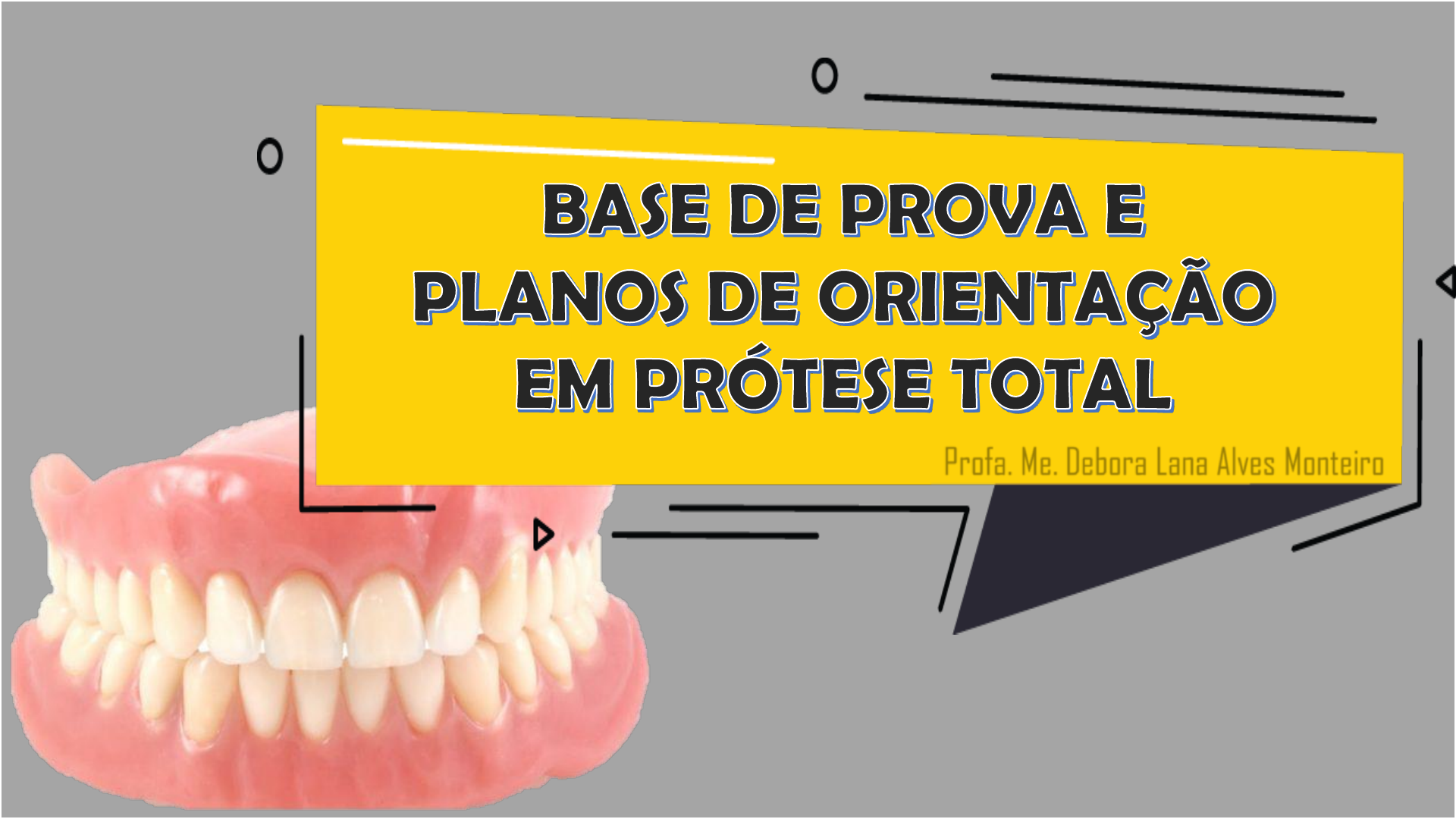 Profa. Me. Debora Lana Alves Monteiro Base de prova é a base provisória da prótese total, durante as fases para captar e registrar os movimentos mandibulares, com a finalidade de transportá-los ao articulador. Será usada para a montagem de dentes artificiais, até a prova estética e fonética no paciente. • Construção dos arcos de oclusão - Registros da distância vertical e relação central; • Posicionamento dos modelos no articulador; • Montagem de dentes artificiais - Testes de função estética e fonética no paciente. 1. Cobrir todo o tecido que constitui a base do suporte; 2. Deve ser ajustada para enfrentar possíveis desprendimentos por causa da cedência da fibromucosa; 3. O recorte das bordas obedece os limites do modelo da borda conseguida na moldagem, rigorosamente, reproduzida no modelo. As bases de prova não devem conflitar-se com as regiões retentivas do modelo, para não danificá-los; 4. Deve guardar relações com as atividades funcionais, como: fonação, respiração e deglutição. Por esse motivo, seu acabamento deve ser mais caprichoso. ALÍVIO DAS RETENÇÕES MECÂNICAS: • Todas as retenções mecânicas dos modelos são removidas através do preenchimento das mesmas com cera rosa nº 7; • As retenções nos maxilares são mais frequentes na face vestibular da região de canino a canino, e na região vestibular das tuberosidades alveolares; • As retenções na mandíbula são mais frequentes na região de canino a canino, tanto por vestibular, como por lingual e na região de fossa retromilo-hioidea.. Deve ser lembrado que os alívios são menores que nas moldeiras, tendo em vista a necessidade de retenção na boca do paciente. ISOLAMENTO DA ÁREA DE SUPORTE: Todo o modelo será isolado com Cel-Lac, com um pincel macio para evitar a aderência da resina ao gesso do modelo. PREPARO DA RESINA ACRÍLICA: Normalmente a proporção pó/líquido é 3/1 A mistura é feita com espátula nº 36, e o recipiente fechado para evitar a evaporação do monômero da mesma forma que a executada para as moldeiras. a) Fase arenosa – logo após a mistura b) Fase pegajosa - começa a adquirir consistência c) Fase fibrilosa – ao tocá-la nota-se a formação de fibrilas (fios) d) Fase plástica – a resina permite a manipulação. e) Fase borrachóide – a resina não permite mais ser manipulada f) Fase densa ou dura – a resina esta polimerizada. Os arcos de oclusão (planos de cera/planos de orientação) superior e inferior são representativos de ambos os arcos dentários. Para a orientação do plano de cera, há necessidade de se confeccionar um rolete de cera que deve ser unido firmemente à base de prova a fim de serem registradas as diferentes operações de interesse protético. • Guardar o espaço para a montagem dos dentes artificiais; • Registrar e garantir a distância vertical e relação central; • Registrar a inclinação da curva de compensação e transversa (curvas de von Spee e de Monson ou de Wilson). Para que seja possível a tomada dos registros dos movimentos mandibulares é necessário que o profissional utilize um plano de referência, que será o plano protético. Assim, o plano de cera superior deverá ser paralelo ao plano protético lateralmente (Figura 14a), e na região anterior, paralelo à linha bipupilar (Figuras 14b). Este paralelismo possibilitará, durante a função, que as forças oriundas do ato mastigatório incidam perpendicularmente sobre o rebordo, proporcionando estabilidade da prótese. Para tal utiliza-se a Régua de Fox. • Suporte labial (não deixar rugas muito evidente); • Altura dos incisivos (delimitada a partir da linha alta do sorriso); • Plano anterior (linha bipupilar); • Linhas (média, canino, sorriso); • Curva de Spee (plano de camper); • Curva de Wilson; • Corredor bucal (espaço entre a bochecha e os dentes); • DVO e RC; • Seleção e posicionamento dos dentes. Região ANTERIOR verificar: • Suporte labial; • Altura do rodete de cera(deve aparecer 1 a 3mm da incisal dos dentes, com a boca meio aberta “em repouso”; • Paralelismo com a linha bipupilar; • Linhas de orientação (média, distancia entre os caninos, linha alta do sorriso). • Comissura labial - determinar a largura dos dente anteriores. Região POSTERIOR verificar: • Curva de Spee - É a curva ântero-posterior bem definida, descrita na face oclusal dos dentes do arco inferior natural (cúspide do canino a cúspide vestibular dos pré-molares e molares) cujo prolongamento coincide com a inclinação da vertente posterior da eminência do osso temporal • Curva de Wilson - Linha imaginária, no plano frontal, que toca os vértices das cúspides vestibulares e linguais dos dentes posteriores inferiores e superiores de um lado até os vértices das cúspides linguais e vestibulares do lado oposto; • Corredor bucal - é o espaço entre a vestibular dos dentes posteriores com a bochecha. 1- Dimensão Vertical de Repouso (DVR): Também chamada de Dimensão Vertical de Postura, é a distância entre a maxila e a mandíbula quando esta se encontra em repouso. 2- Dimensão Vertical de Oclusão (DVO): Também chamada de Dimensão Vertical Morfológica, é a distância entre a maxila e a mandíbula, quando os dentes estão em contato. 3- Espaço Funcional Livre (EFL): Também chamado de Espaço Interoclusal, é o espaço que existe entre a posição de repouso e a posição de oclusão. Em outras palavras, é a diferença entre a Dimensão Vertical de Repouso e a Dimensão Vertical de Oclusão. Estudos realizados mostraram que o Espaço Funcional Livre mede em média, de 2 a 4 mm. Como a posição de repouso é variável, admite-se também que o espaço funcional livre sofra flutuações. No desdentado total Existem vários métodos para o registro da DVO, todos sujeitos a críticas. O método a ser descrito aqui se baseia na DVR e é comumente chamado de Método dos dois pontos. a) Paciente sentad