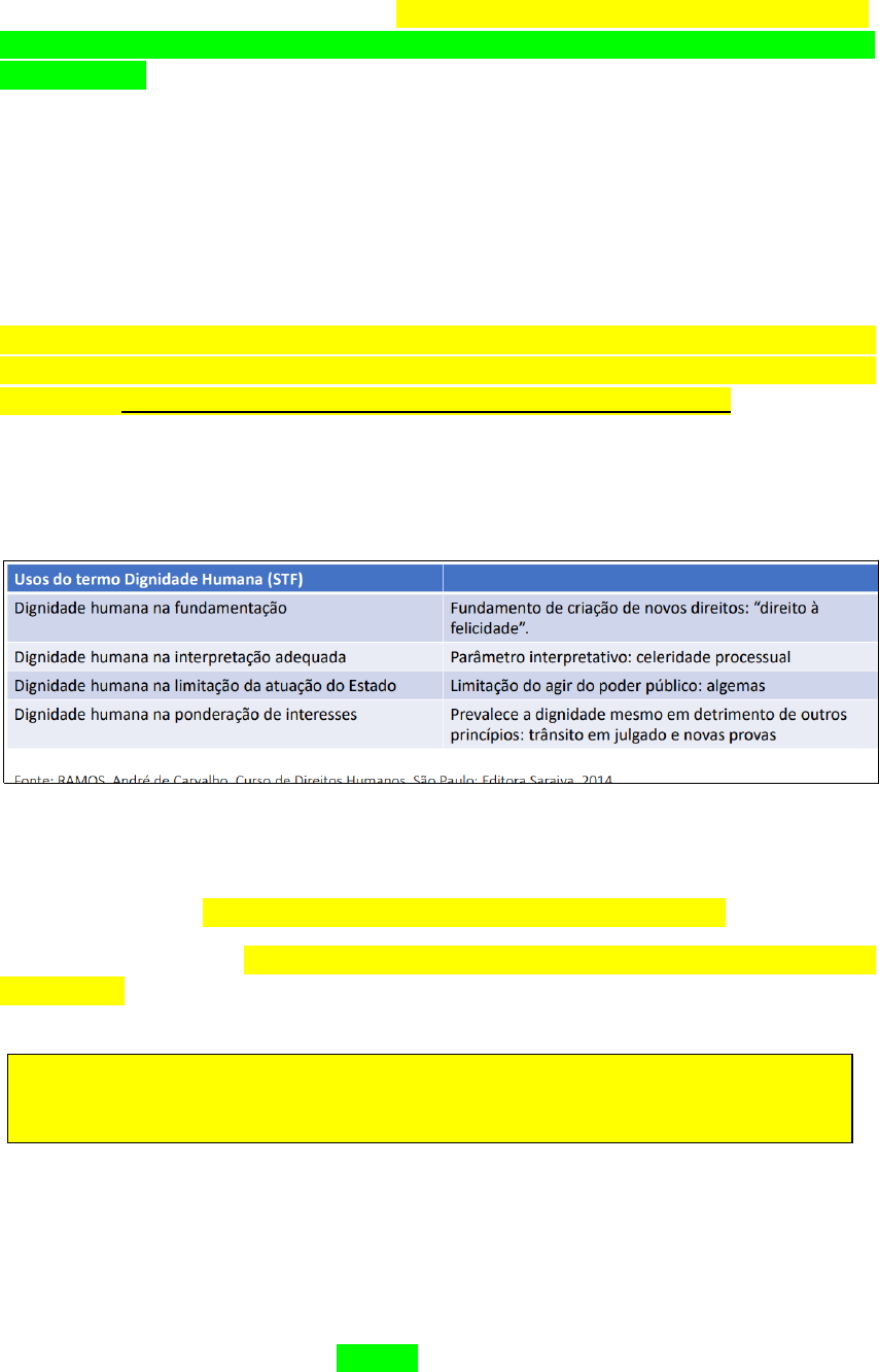 TEORIA GERAL DOS DIREITOS HUMANOS Conceito: “Os direitos humanos são direitos inerentes a todos os seres humanos, independentemente de raça, sexo, nacionalidade, etnia, idioma, religião ou qualquer outra condição.” (ONU) “Direitos Humanos - conjunto de faculdades e instituições que, em cada momento histórico, concretizam as exigências de dignidade, liberdade e igualdade humanas, as quais devem ser reconhecidas positivamente pelos ordenamentos jurídicos em nível nacional e internacional.” (PERES LUÑO, Antônio. Derechos humanos, Estado de derecho y Constitución. 5. ed. Madrid: Editora Tecnos, 1995, p. 48. DIGNIDADE DA PESSOA HUMANA “...a dignidade humana consiste na qualidade intrínseca e distintiva de cada ser humano, que o protege contra todo tratamento degradante e discriminação odiosa, bem como assegura condições materiais mínimas de sobrevivência. Consiste em atributo que todo indivíduo possui, inerente à sua condição humana, não importando qualquer outra condição referente à nacionalidade, opção política, orientação sexual, credo etc.” (RAMOS, André de Carvalho. Curso de Direitos Humanos, São Paulo: Editora Saraiva, 2014 .) Direitos humanos = Direitos fundamentais? -distinção no plano de positivação. - Direitos humanos: direitos universalmente aceito no plano internacional. -Direitos fundamentais: direitos positivados na ordem interna dos Estados, em geral na Constituição.OBS: A noção de direitos do homem é mais ampla e engloba o direito jus natural (não positivados) também. Questão - Conceitualmente, os direitos humanos são os direitos protegidos pela ordem internacional contra as violações e arbitrariedades que um Estado possa cometer às pessoas sujeitas a sua jurisdição. Por sua vez, os direitos fundamentais são afetos à proteção interna dos direitos dos cidadãos, os quais encontram-se positivados nos textos constitucionais contemporâneos. (CERTO) A Constituição da República de 1988 cuidou expressamente dos direitos humanos, enumerando-os no Título que trata dos direitos e garantias fundamentais. Existem, entretanto, outros direitos humanos não enumerados no texto, mas cuja proteção a própria Constituição assegura, PORQUE: A) decorrem do regime e dos princípios adotados pela própria Constituição. B) o Brasil se submete à jurisdição de Tribunal Penal Internacional. C) são criados pelo Poder Judiciário, após o trânsito em julgado das decisões. D) surgem de necessidades que não foram previstas pelo legislador constituinte. ESTRUTURA NORMATIVA ABERTA -Diferença entre regras e princípios (espécies de normas) -Regras: Situação fática com consequência jurídica. Aplicadas pela técnica de subsunção. -Princípios: “mandados de otimização” (Alexy) Aplicados pela técnica de ponderação de interesses. OBS: Os Direitos Humanos são constituídos de REGRAS e PRINCÍPIOS. FUNDAMENTOS DOS DIREITOS HUMANOS DIFICULDADE NA DELIMITAÇÃO DOS FUNDAMENTOS (Bobbio), PORQUE - Divergência quanto ao conjunto de direitos abrangidos; - Constante evolução pela sua historicidade (Sujeitos a mudanças); - Categoria de direitos heterogêneos. - Peres Luño: consagração de direitos a partir de juízos de valor pessoais, sem fundamento de validade TEORIAS CRIADAS PARA CONTORNAR ESSA DIFICULDADE NA DELIMITAÇÃOS DOS FUNDAMENTOS DOS DIREITOS HUMANOS Proposição de fundamentos: De onde vem a legitimidade para aplicação desses direitos? 1 - teoria jusnaturalista: fundamento em normas anteriores e superiores ao direito estatal, de origem divina ou decorrente da razão humana. Da própria natureza humana, adquire ao nascer. Equivale aos direitos naturais. (Tales de Mileto, Zenon, Santo Tomás de Aquino) Ex: direito de greve como um direito natural (STF). 2 - teoria positivista: fundamento nos textos legais de Estados Constitucionais de Direito, que encontram seu preceito de validade formal na Constituição. Antes disso meros valores e juízos morais. (Thomas Hobbes, Augusto Comte, Justiniano, Descartes, Kant, Hans Kelsen) 3 - teoria moralista: direitos subjetivos baseados em princípios, independente de regras prévias. Do campo da consciência moral e da experiência do convívio social. (Chaim Perelman) *ATENÇÃO: SE COMPLEMENTAM! Não há predominância. Os DH são construídos a partir do convívio social e consciência de sociedade (3), se fundamentam na crença da existência de direitos oriundos da natureza humana (1) que são consolidados pelo legislador que os positiva no ordenamento jurídico (2) TEORIA CRÍTICA DOS DIREITOS HUMANOS -Teoria tradicional: existem desajustes na estrutura social que devem ser corrigidos. -Teoria crítica: a estrutura social é inerentemente conflitiva (Desajuste Estrutural). DIREITOS HUMANOS COMO PRODUTOS CULTURAIS -Direitos humanos são históricos, ou seja, conquistados pela sociedade a partir das confluências sociais e culturais, não sendo pré-existentes ao direito estatal. -Refuta a ideia de universalidade dos Direitos Humanos: culturas hegemônicas apresentam o outro como incivilizado. -Como produtos culturais devemos enxergar o outro como diferente, na busca por caminhos que o permitam atingir as próprias concepções de dignidade humana. OBS: Quem somos nós para dizer a qualquer sociedade o que é certo ou errado a respeito de certos direitos? RESPEITAR AO OUTRO e permitir que dentro da sua própria vivência ele alcance instrumentos para as próprias concepções de dignidade humana. DIREITOS HUMANOS Inerentes a natureza humana. Dignidade da Pessoa Humana (mínimo existencial e proteção contra abusos e maus tratos) COMPOSIÇÃO Regras e Princípios FUNDAMENTAÇÃO Dificuldade para fundamentação devido a heterogeneidade, evolução devido à historicidade e o conjunto dos direitos abrangidos. Teoria Jusnaturalista Complementares Teroria Juspositivista Teoria Moralista DIREITOS HUMANOS TEORIA TRADICIONAL Existem desajustes na estrutura social q