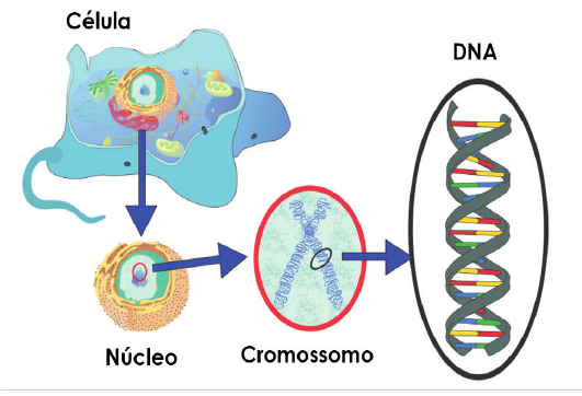Biologia 87 Pró-Reitoria de Extensão – PROEX Figura 35: Esquema da localização do DNA em célula eucariótica que, enovelado com prote- ínas histonas, forma os cromossomos localizados no interior do núcleo da célula. Fonte: adaptado de . Acesso em: 10 out. 2016. 6.1 duPliCação do dna Para que uma nova célula seja originada por mitose (divisão celular), é pre- ciso que a célula-mãe copie o próprio DNA para que ambas as células-filhas formadas possuam o material genético idêntico. O processo de cópia da molécula de DNA é denominado duplicação ou replicação do DNA. O processo é iniciado quando as duas fitas do DNA se desprendem uma da outra (porque as pontes de hidrogênio que unem bases nitrogenadas se separam) para que cada uma delas possa orientar a síntese de uma nova fita complementar. O gradual desemparelhamento das duas fitas libera as bases nitrogenadas para o recebimento de nucleotídeos livres do cito- plasma. Ou seja, os nucleotídeos livres são acoplados às duas fitas-molde de DNA desemparelhadas, seguindo a complementaridade A-T e C-G. Esse preenchimento origina duas novas moléculas de DNA, a partir de uma molécula antiga. Tal processo de reprodução do DNA é citado como duplicação semiconservativa, uma vez que duas moléculas de DNA originadas conservam uma fita do DNA antigo (a fita-mol- de) e adicionam uma fita nova a partir dos nucleotídeos livres que foram associados (Figura 36). 88 Ciências da Natureza Pró-Reitoria de Extensão – PROEX Figura 36: Esquema que representa uma molécula de DNA duplicada. As fi tas do DNA ori- ginal são representadas em cor roxa, enquanto a fi ta nova possui cor alaranjada. Observe que toda molécula formada na replicação do DNA conserva uma fi ta original. Fonte: . Acesso em: 10 out. 2016. A duplicação do DNA é auxiliada pela ação de várias enzimas, que têm a função de desemparelhar as fi tas de DNA, que desenrolam a dupla hélice e que asso- ciam novos nucleotídeos à fi ta-molde. A polimerase do DNA é a enzima responsável pela adição de nucleotídeos livres à fi ta e seu nome é explicado pela sua função, pois essa enzima promove a formação de um polímero, a molécula do DNA. Um polí- mero é uma molécula formada por várias unidades menores, os monômeros, que no caso do DNA são os nucleotídeos. Figura 37: Esquema da duplicação do DNA. A dupla hélice se desfaz e as duas fi tas se despren- dem gradualmente uma da outra, formando uma “forquilha” de duplicação. As fi tas do DNA original tornam-se fi tas-molde para a associação de nucleotídeos livres. Cada fi ta origina uma nova molécula de DNA. Fonte: adaptado de . Acesso em: 10 out. 2016.