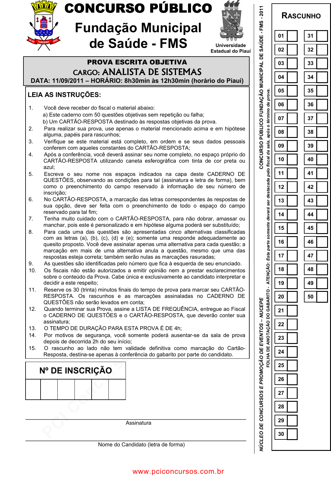 pcimarkpci MDAwMDowMDAwOjAwMDA6MDAwMDowMDAwOmZmZmY6OTU0ZTpiOWI2:U3VuLCAyMiBKdW4gMjAyNSAxNDoxNTozNSAtMDMwMA== www.pciconcursos.com.br PROVA ESCRITA OBJETIVA CARGO: CARGO: CARGO: CARGO: ANALISTA DE SISTEMASANALISTA DE SISTEMASANALISTA DE SISTEMASANALISTA DE SISTEMAS DATA: 11/09/2011 – HORÁRIO: 8h30min às 12h30min (ho rário do Piauí) LEIA AS INSTRUÇÕES: 1. Você deve receber do fiscal o material abaixo: a) Este caderno com 50 questões objetivas sem repetição ou falha; b) Um CARTÃO-RESPOSTA destinado às respostas objetivas da prova. 2. Para realizar sua prova, use apenas o material mencionado acima e em hipótese alguma, papéis para rascunhos; 3. Verifique se este material está completo, em ordem e se seus dados pessoais conferem com aqueles constantes do CARTÃO-RESPOSTA; 4. Após a conferência, você deverá assinar seu nome completo, no espaço próprio do CARTÃO-RESPOSTA utilizando caneta esferográfica com tinta de cor preta ou azul; 5. Escreva o seu nome nos espaços indicados na capa deste CADERNO DE QUESTÕES, observando as condições para tal (assinatura e letra de forma), bem como o preenchimento do campo reservado à informação de seu número de inscrição; 6. No CARTÃO-RESPOSTA, a marcação das letras correspondentes às respostas de sua opção, deve ser feita com o preenchimento de todo o espaço do campo reservado para tal fim; 7. Tenha muito cuidado com o CARTÃO-RESPOSTA, para não dobrar, amassar ou manchar, pois este é personalizado e em hipótese alguma poderá ser substituído; 8. Para cada uma das questões são apresentadas cinco alternativas classificadas com as letras (a), (b), (c), (d) e (e); somente uma responde adequadamente ao quesito proposto. Você deve assinalar apenas uma alternativa para cada questão; a marcação em mais de uma alternativa anula a questão, mesmo que uma das respostas esteja correta; também serão nulas as marcações rasuradas; 9. As questões são identificadas pelo número que fica à esquerda de seu enunciado. 10. Os fiscais não estão autorizados a emitir opinião nem a prestar esclarecimentos sobre o conteúdo da Prova. Cabe única e exclusivamente ao candidato interpretar e decidir a este respeito; 11. Reserve os 30 (trinta) minutos finais do tempo de prova para marcar seu CARTÃO- RESPOSTA. Os rascunhos e as marcações assinaladas no CADERNO DE QUESTÕES não serão levados em conta; 12. Quando terminar sua Prova, assine a LISTA DE FREQUÊNCIA, entregue ao Fiscal o CADERNO DE QUESTÕES e o CARTÃO-RESPOSTA, que deverão conter sua assinatura; 13. O TEMPO DE DURAÇÃO PARA ESTA PROVA É DE 4h; 14. Por motivos de segurança, você somente poderá ausentar-se da sala de prova depois de decorrida 2h do seu início; 15. O rascunho ao lado não tem validade definitiva como marcação do Cartão- Resposta, destina-se apenas à conferência do gabarito por parte do candidato. Nº DE INSCRIÇÃO ____________________________________________________________ Assinatura ____________________________________________________________ Nome do Candidato (letra de forma) Universidade Estadual do Piauí RASCUNHO 01 31 02 32 03 33 04 34 05 35 06 36 07 37 08 38 09 39 10 40 11 41 12 42 13 43 14 44 15 45 16 46 17 47 18 48 19 49 20 50 21 22 23 24 25 26 27 28 29 30 N Ú C LE O D E C O N C U R S O S E P R O M O Ç Ã O D E E V E N T O S – N U C E P E C O N C U R S O P Ú B LI C O F U N D A Ç Ã O M U N IC IP A L D E S A Ú D E - F M S - 2 01 1 F O LH A D E A N O T A Ç Ã O D O G A B A R IT O - A T E N Ç Ã O : E st a pa rt e so m en te d ev er á se r de st ac ad a pe lo fi sc al d a sa la , a pó s o té rm in o da p ro va . CONCURSO PÚBLICOCONCURSO PÚBLICOCONCURSO PÚBLICOCONCURSO PÚBLICO Fundação Municipal de Saúde - FMS www.pciconcursos.com.br pcimarkpci MDAwMDowMDAwOjAwMDA6MDAwMDowMDAwOmZmZmY6OTU0ZTpiOWI2:U3VuLCAyMiBKdW4gMjAyNSAxNDoxNTozNSAtMDMwMA== www.pciconcursos.com.br Concurso Público – Fundação Municipal de Saúde – CARGO: ANALISTA DE SISTEMAS 2 N º D E I N S C R I Ç Ã O www.pciconcursos.com.br pcimarkpci MDAwMDowMDAwOjAwMDA6MDAwMDowMDAwOmZmZmY6OTU0ZTpiOWI2:U3VuLCAyMiBKdW4gMjAyNSAxNDoxNTozNSAtMDMwMA== www.pciconcursos.com.br Concurso Público – Fundação Municipal de Saúde – CARGO: ANALISTA DE SISTEMAS 3 QUESTÕES DE LÍNGUA PORTUGUESA TEXTO I (Para as questões de 01 a 07). 01 02 03 04 05 06 07 08 09 10 11 12 13 14 15 16 17 Decifrando códigos Pessoas que já vivenciaram um terremoto costumam ter lembranças claras dessa experiência: o solo vibra, treme, fica abaulado e se desloca; o ar se enche de estrondos; abrem-se rachaduras; e vidros se estilhaçam; armários se abrem; livros, pratos e bugigangas caem das prateleiras. Esses episódios são lembrados com notável clareza mesmo anos depois, porque nosso cérebro evoluiu para fazer isto: extrair informação de eventos relevantes e tal conhecimento para guiar nossa resposta a situações semelhantes no futuro. A capacidade de aprender com experiências anteriores permite a todos os animais se adaptar a um mundo que é complexo e está em constante mutação. Por décadas, neurocientistas tentaram descobrir como o cérebro produz lembranças. Agora, combinando um conjunto de novos experimentos a análises matemáticas poderosas e à capacidade de gravar simultaneamente a atividade de 200 neurônios em camundongos despertos, meus colegas e eu descobrimos o que acreditamos ser o mecanismo básico usado pelo cérebro para extrair informação vital das experiências e transformá-las em lembranças. As conclusões às quais chegamos se somam a trabalhos cada vez mais numerosos e indicam que o fluxo linear de sinais de neurônio a neurônio não é suficiente para explicar como o cérebro representa percepções e reminiscências. Essas representações demandam atividade coordenada de grandes populações de neurônios. (...) (Revista Mente Cérebro – Duetto Editorial - Número 27 – Por Joe Z. Tsien, p. 30) 01. Considerando-se as informaçõ