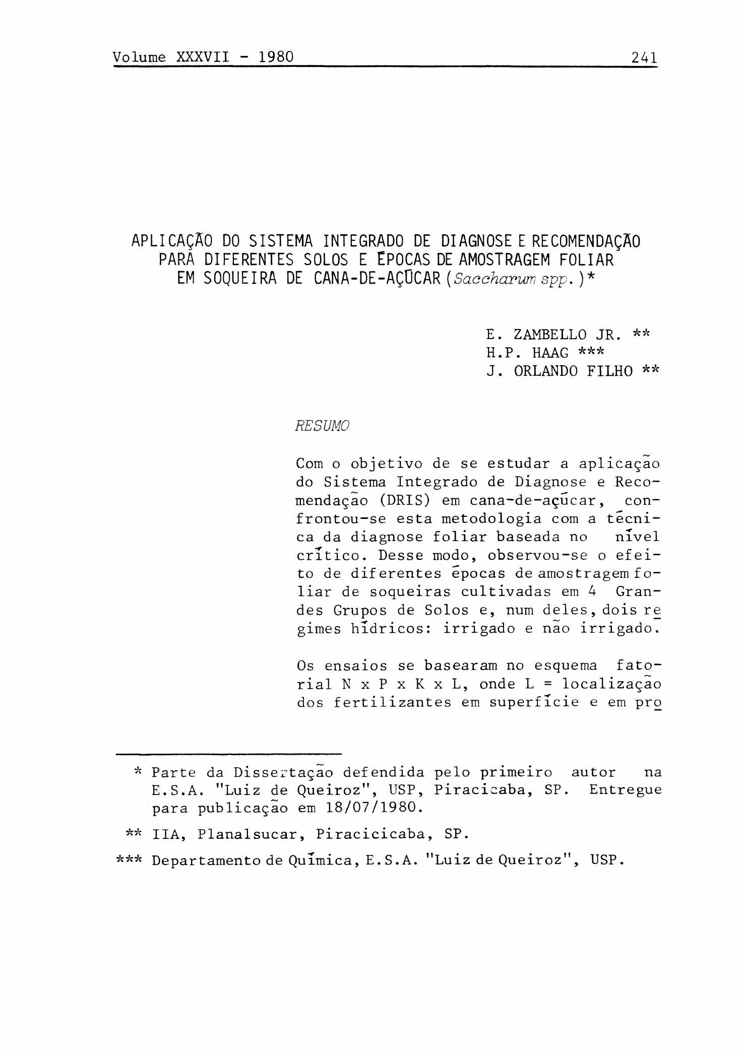 ZAMBELLO JR.; ORLANDO F?, J., 1977. Diagnose foliar em so¬