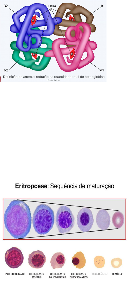 Anemias Definição: Redução da quantidade total de hemoglobina ou da carga eritrocitária. Hemoglobina: Estrutura quaternária, de agrupamento de globinas, 2 alfa e 2 betas, e 4 agrupamentos de M, onde o ferro se associa e incorpora o oxigênio. Epidemiologia · 40% dos pacientes entre 6 meses e 5 anos, sendo a doença crônica mais comum da infância. · 37% das gestantes. Classificação · A partir dos reticulócitos · A partir do padrão de hemácias Conceitos importantes · HCM: representa a "cor" da hemácia, ou seja, se ela tem uma concentração maior ou menor de hemoglobina. Divide as anemias em hipocrômicas, normocrômicas e hipercrômicas; · VCM: avalia o tamanho da hemácia, permitindo a divisão das anemias em microcíticas, normocíticas e macrocíticas; · RDW: avalia o grau de anisocitose de uma anemia (ou seja, o quanto as hemácias são diferentes entre si de acordo com sua forma); · Reticulócitos: avalia a quantidade de "hemácias jovens". Reticulócitos · Células da cadeia de maturação das hemácias, quando as mesmas já se encontram quase no fim do processo, sendo a fase prévia à formação das hemácias maduras. · 2,5% é a quantidade normal. · Se: · > 2,5% >> Anemias hiperproliferativas · > Anemias hipoproliferativas Anemias hiperproliferativas · Sangramento agudo · Anemia hemolítica aguda Anemias hipoproliferativas · Anemia ferropriva · Anemia de doença crônica · Anemias megaloblástica A partir do padrão das hemácias · Concentração de hemoglobina (HCM - hemoglobina corpuscular médio) · Hipocrômica (ferro reduzido) · Anemia ferropriva · Normocrômica · Anemia de doença crônica · Volume Corpuscular médio - VCM (tamanho da hemácia)/ Hipoproliferativas (índice de reticulócitos > Anemia falciforme · Corpúsculos de Heinz · Deficiência de G6PD Anemia Ferropriva (Anemia hipocrômica e microcítica, RDW aumentado e reticulócitos diminuídos.) · Anemia mais comum · Associado a vulnerabilidade social e desnutrição Mecanismos · Aumento da perda de sangue · Menorragia · Sangramento gastrointestinal · Trauma · Aumento da demanda de ferro (Gravidez ou primeira infância) · Redução da ingesta de ferro · Anemia carencial · Absorção do ferro deficiênte · Cirurgia bariátrica · Doenças inflamatórias intestinais Clínica · Assintomática/ Fadiga/ Intolerância aos esforços · Perversões de apetite/ picas (comer gelo, pedras etc.) · Queilite angular (casos mais avançados) · Coiloníquia (unha em formato de colher) · Síndrome de Plummer-Vinson · Anemia + Disfagia · Membrana esofágica · Síndrome das pernas inquietas (em especial na infância) Investigação etiológica · Adulto ou idoso com anemia ferropriva · SEMPRE INVESTIGAR · “Sangramento gastrointestinal até que se prove o contrário” · Investigar neoplasia intestinal (Cólon e estômago) · Colonoscopia Diagnóstico Laboratorial · Microcítica, Hipocrômica, RDW aumentado (anisocitose) · Com menos frequência, pode ser normocítica e normocrômica · Contagem de reticulócitos - Reduzida · Ferro sérico - Reduzido · Ferritina - Reduzida · Transferrina - Aumentada (proteína que transporta o ferro no sangue) · Ocorre um aumento a capacidade de ligação ao ferro, como há uma diminuição do ferro sérico na anemia ferropriva, as transferrinas estão “vazias”, aumentando sua capacidade de se ligar ao ferro. · Saturação de transferrina - Reduzida · Total iron binding capacity (TIBC) · Mede a avidez por ferro · Aumentado · Pode haver trombocitose (aumento da produção devido a estímulos para aumento da produção de hemácias) Diagnósticos diferenciais · Talassemias · Microcítica + Hipocrômica + RDW normal · Anemia de inflamação · Doença de base/ Normocítica Tratamento · Conforme a gravidade · Anemia aguda grave: transfusão · População em geral: se Hb 100 · Causas: Alcoolismo, reticulocitose, hipotireoidismo, mielodisplasia · Anemia megaloblástica · Carência de B9 e B12 · VCM > 110 · Prejuízos na divisão celular Mecanismos · Baixa ingestão de B12 (cobalamina) ou B9 (folato) · Absorção deficiente · Perniciosa · Doenças autoimunes com destruição das células parietais do estômago · Ausência do fator intrínseco · Cirurgia gástrica/ intestinal · Doença inflamatória intestinal · Medicações · Inibidor de bomba de prótons (B12) · Metformina (B12) · Metotrexato (B9) Clínica · Astenia · Diarreia · Prejuízo na divisão celular, com dificuldade para a renovação celular, incluindo do epitélio intestinal · Icterícia · Pela eritropoiese ineficaz, aumenta a destruição dessas hemácias defeituosas, com aumento da bilirrubina indireta. · Glossite · Comprometimento neurológico · Raro na deficiência isolada de folato · Neuropatia periférica · Síndromes demenciais · Parestesia Diagnóstico · Anemia megaloblástica: VCM > 110 · Neutrófilos plurissegmentares · Pancitopenia · Hiperbilirrubinemia indireta - Destruição intramedular de células defeituosas devido à eritropoiese ineficaz · Dosagem de B12 e B9 · Dosagem de homocisteína e ácido metilmalônico (não muito utilizado devido a maior facilidade em dosar diretamente B12 e B9) · Acumulam-se na deficiência de B12 · Deficiência de B9 - Acúmulo apenas de homocisteína · LDH aumentado devido hemólise secundária à anemia Tratamento · Antes de repor folato, verificar a reserva de B12 · Reposição isolada de B9 pode precipitar neuropatia · Reposição profilática de folato em pacientes com desejo de engravidar/ grávidas · Reposição oral de folato/ Injeções decobalamina Como obter vitamina B12 na dieta? Por meio de fontes animais! Por isso os vegetarianos possuem maior risco de desenvolver deficiência dessa vitamina. Como ocorre a absorção da B12? A vitamina B12 é ingerida,e chega ao estômago. Lá, o ambiente ácido promove a sua liberação dos demais nutrientes, e ela se combina com o lig