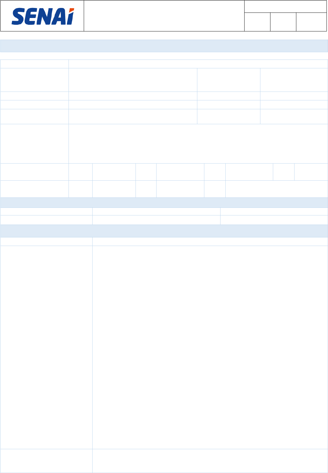 PLANO DE SITUAÇÃO DE APRENDIZAGEM EDU-FF-120 Folha: 1 de 2 Revisão: 03 Data: 06/09/2024 DADOS DA UNIDADE OPERACIONAL/CURSO Unidade Operacional:¹ Rondonópolis Curso:2 Eletromecânica Modalidade:3 Aprendizagem Industrial Técnica de Nível Médio Turma:4 APT.006.027 Módulo:5 ESPECÍFICO I Docente:6 Tiago Rodrigo de Gois Período Letivo:7 1°sem/2025 Unidade Curricular:8 Fabricação Mecânica Aplicada à Manutenção e Montagem Carga Horária da SA:9 20 Objetivo Geral:10 Proporcionar o desenvolvimento das capacidades técnicas, sociais, organizativas e metodológicas requeridas para o planejamento dos processos de produção dedicados à eletromecânica, considerando as características do projeto, as operações e sequência indicados, parâmetros técnicos e cronograma de execução das atividades produtivas Ambiente de Ensino:11 ☒ Sala de Aula ☒ Laboratório ☐ Em Campo ☐ Outro Aplicação da SA:12 ☐ Individual ☒ Em Grupo ☐ Em Dupla № DE CAPACIDADES A SEREM DESENVOLVIDAS NA SITUAÇÃO DE APRENDIZAGEM Capacidades Básicas13 Capacidades Técnicas14 Capacidades Socioemocionais15 7 6 DETALHAMENTO DAS CAPACIDADES A SEREM DESENVOLVIDAS NA SITUAÇÃO DE APRENDIZAGEM Capacidades Básicas:16 Capacidades Técnicas:17 Reconhecer os diferentes processos de fabricação aplicados à produção de peças e conjuntos de projetos mecânicos, suas características, aplicações e execução Reconhecer os parâmetros técnicos que se aplicam aos diferentes processos de fabricação mecânica Interpretar requisitos das normas (técnicas, ambientais, de qualidade, de saúde e de segurança) aplicáveis ao processo produtivo pertinente Identificar as variáveis dos processos de produção fabricação, assim como os recursos humanos, materiais, tecnologias disponíveis Definir as condições de recebimento, movimentação e endereçamento dos materiais previstos no projeto Definir, com base nas informações do projeto, as fases/etapas a serem consideradas nos processos produtivos Interpretar as informações técnicas contidas no projeto quanto a materiais, processos de fabricação, características do produto e demais especificações que impactam a organização do processo produtivo Capacidades Socioemocionais:18 Reconhecer a iniciativa como característica fundamental e requisito de um bom profissional Apresentar comportamento ético no desenvolvimento das atividades sob a sua responsabilidade Aplicar os princípios de organização nas atividades sob a sua responsabilidade Reconhecer os diferentes comportamentos das pessoas nos grupos e equipes Reconhecer situações de risco à saúde e segurança do trabalhador e as diferentes formas de proteção a esses riscos Integrar os princípios da qualidade às atividades sob a sua responsabilidade ESTRATÉGIA DE APRENDIZAGEM DESAFIADORA19 ☐ Estudo de Caso ☒ Situação Problema ☐ Pesquisa ☒ Projeto ☐ Outro CONTEXTUALIZAÇÃO20 Um mecânico industrial é o profissional responsável por manter, instalar e reparar máquinas e equipamentos industriais. Ele atua em indústrias e fábricas, e suas principais funções são: · Desmontar, montar, recuperar ou substituir peças e máquinas · Diagnosticar falhas · Realizar manutenções preventivas e corretivas · Ajustar e calibrar equipamentos · Garantir a eficiência e segurança das operações industriais · Zelar pela utilização adequada dos equipamentos de proteção individual e coletivo · Orientar os colegas de trabalho em relação ao uso de materiais que não tragam danos ambientais · O curso de mecânica industrial inclui o estudo de princípios de mecânica, eletricidade, hidráulica, pneumática e automação. · Existem diferentes níveis de carreira para um mecânico industrial, como júnior, pleno, sênior, supervisor de manutenção e gerente de manutenção. A fabricação Mecânica também pode ser aplicada à Manutenção e Montagem de máquinas e equipamentos na indústria, atuando assim na manutenção preditiva, preventiva, corretiva e prescritiva. A fabricação Mecânica também engloba situações de utilização de chapas metálicas, soldagem, técnicas de caldeiraria e estruturas metálicas. DESAFIO21 Você é um dos Técnicos da área Mecânica contratados pela empresa, com o auxílio do Professor e demais membros da turma, deverá Fabricar 3 unidades de um modelo de “Alçador de BIG BAG” com o intuito de auxiliar o pessoal de armazenamento e expedição da empresa. Esse “Alçador de BIG BAG” facilitará a o alçamento dos BIG BAG’s pelas empilhadeiras e pelos auxiliares de armazenamento, tornando assim o trabalho mais ergonômico e seguro. Durante a fabricação desse dispositivo você utilizará seus conhecimentos já adquiridos em: Soldagem, Esmerilhamento, Tornearia, metrologia, Desenho técnico, Caldeiraria, etc. O professor irá fornecer um Desenho mecânico para estudo e planejamento das tarefas a serem desenvolvidas. Após o estudo das tarefas, o professor fará as devidas demonstrações das operações novas e após essa fase você começará a fabricar o dispositivo. Obs. Esse dispositivo é uma peça que será realmente utilizada pela empresa. RESULTADOS ESPERADOS22 É esperado que o aluno fabrique coletivamente o “Alçador de BIG BAG” utilizando as orientações dadas em aulas, o desenho técnico, as folhas de processos. CRITÉRIOS DE AVALIAÇÃO23 · O grupo fabricou todas as peças do Alçador de BIG BAG’s. · As peças foram fabricadas dentro das tolerâncias geométricas das medidas do projeto mecânico. · O grupo montou todas as peças do conjunto. · O grupo fez as folhas de processos para fabricação do conjunto. · O grupo confeccionou os gabarito para intersecção de tubos. · O grupo trabalhou utilizando todos os EPI’s conforme a atividade desenvolvida. · O grupo cumpriu com os horários e planejamento de tempo pré-estabelecidos. · O grupo trabalhou de forma organizada e limpa, mantendo o ambiente de tr