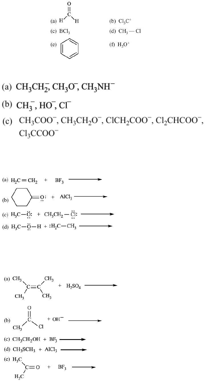 Lista de Exercicios 4 – Topicos Acido-base, 1. Indique cada uma das especies abaixo como acido ou base de Lewis 2. Organize os seguintes íons em ordem crescente de basicidade 3. Complete as seguintes reações mostrando o movimento dos elétrons usando setas curvas. Identifique os reagentes como ácidos de Lewis ou bases de Lewis e coloque a carga formal nos átomos conforme apropriado. 4. Complete as seguintes reações mostrando o movimento dos elétrons usando setas curvas. Identifique os reagentes como ácidos de Lewis ou bases de Lewis. 5. Considere a estrutura do ibuprofeno (Composto A) dada abaixo. (a) Identifique o próton mais ácido na estrutura. (b) Escreva a reação para a base conjugada do Composto (A) com acetaminofeno (Composto B) e identifique os ácidos e bases fracos e fortes 6. Organize os seguintes compostos em ordem crescente de acidez 7. Identifique os produtos em cada uma das seguintes reações ácido base. Rotule o ácido e a base nos reagentes e o ácido e a base conjugados nos produtos formados. 8. Identifique o número de estruturas de ressonância possíveis para os seguintes íons (b) 9. Desenhe as formas ácidas conjugadas dos compostos dados abaixo e com base em sua estabilidade preveja a protonação de qual (a) oxigênio e (b) átomo de nitrogênio é favorecida. 10. Represente o seguinte como sua projeção de Newmann: a) Conformaçao mais estável de 2-ciclopentil-6-metilheptano, olhando para baixo a ligação C2 C3. (b) Conformacao Gauche de 1-fenilbutano, olhando para a ligaçao C1 C2. 11. Desenhar as projeções de Newman de isopentano e Plote o gráfico de energia potencial vs. rotação sobre a ligação C2 C3. Identifique a conformacao que corresponde ao mínimo mais alto da parcela. 12. Por que o momento de dipolo molecular (μ) para FCH2CH2OH é muito maior do que isso para FCH2CH2F. Use conforma análise nacional para explicar. image4.png image5.png image6.png image7.png image8.png image9.png image10.png image11.png image12.png image13.png image14.png image15.png image1.png image2.png image3.png
