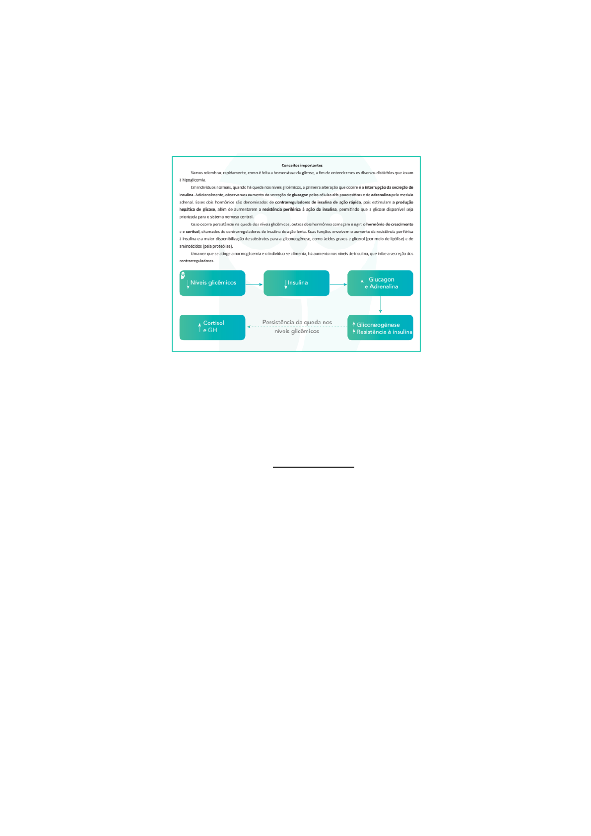 Tutoria 3 -Diabetes mellitus tipo 2 (DM2)- Diabetes tipo 2 — A hipoglicemia é substancialmente menos frequente no diabetes tipo 2, embora pacientes com diabetes tipo 2 tratados com insulina, uma sulfonilureia ou uma meglitinida geralmente apresentem maior risco do que aqueles tratados com dieta ou outros medicamentos. Entre os secretagogos de insulina comumente usados (sulfonilureias, meglitinidas), a hipoglicemia é mais frequentemente relatada em pacientes que tomam medicamentos de ação prolongada, como glibenclamida , em comparação com sulfonilureias com menor risco de hipoglicemia (por exemplo, glipizida , glimepirida e gliclazida ). Em contraste com a insulina e os secretagogos de insulina, os agentes que não causam hiperinsulinemia desregulada (por exemplo, metformina , inibidores da alfa-glicosidase, tiazolidinedionas, agonistas do receptor do peptídeo semelhante ao glucagon 1 [GLP-1], agonistas duplos do GLP-1 e do receptor do polipeptídeo inibitório gástrico [GIP], inibidores da dipeptidil peptidase 4 [DPP-4] e inibidores do cotransportador sódio-glicose 2 [SGLT2]) geralmente não causam hipoglicemia. No entanto, eles aumentam o risco se usados com insulina ou um secretagogo de insulina. A frequência de hipoglicemia aumenta com o tempo, à medida que os pacientes se aproximam do extremo de deficiência de insulina do espectro do diabetes tipo 2. Em um estudo observacional global, a taxa de hipoglicemia grave entre pacientes com diabetes tipo 2 tratados com insulina foi de 2,5 eventos por pessoa-ano. Embora estudos observacionais sugiram que o MCG(monitoramento contínuo da glicose) detecta números maiores de eventos hipoglicêmicos em pacientes com diabetes tipo 2 tratados com insulina do que relatados usando medições de picada no dedo [ 24 ], dados de ensaios clínicos sugerem que a hipoglicemia é infrequente em tais pacientes, independentemente da estratégia de monitoramento de glicose. Como exemplo, em um ensaio que avaliou o MCG ou o tratamento usual (monitoramento de glicemia [BGM] pelo menos quatro vezes ao dia) em 158 adultos com diabetes tipo 2 (duração mediana de 17 anos) e tratados com múltiplas injeções diárias de insulina, a hipoglicemia foi infrequente em ambos os grupos (por exemplo, porcentagem de tempo gastoEssas definições de hipoglicemia pressupõem uma medição precisa e confiável dos níveis de glicose. O monitoramento da glicemia (MGS) fornece informações sobre os níveis de glicose capilar em um momento específico. Notavelmente, as leituras da MGS podem não ser precisas em pacientes com fluxo sanguíneo capilar deficiente, como aqueles com choque, hipotermia, fenômeno de Raynaud ou doença vascular periférica Consequências — A hipoglicemia recorrente é um forte fator de risco para a percepção prejudicada da hipoglicemia. Por sua vez, a percepção prejudicada da hipoglicemia aumenta o risco de hipoglicemia grave em seis vezes em pessoas com diabetes tipo 1 e em 17 vezes em indivíduos com diabetes tipo 2 que tomam insulina. Qualidade de vida relacionada à saúde — A hipoglicemia, particularmente episódios noturnos ou graves, tem sido associada à redução da qualidade de vida relacionada à saúde. A hipoglicemia grave tem sido associada ao sofrimento causado pelo diabetes e ao medo da hipoglicemia. Por sua vez, o medo da hipoglicemia pode levar a comportamentos prejudiciais ao controle do diabetes. A hipoglicemia não grave também pode diminuir a qualidade de vida. Em adultos de meia-idade (idade média de 53,5 anos), a hipoglicemia não grave demonstrou aumentar o tempo afastado do trabalho. Episódios recorrentes de hipoglicemia podem afetar os privilégios de dirigir, o emprego e os relacionamentos interpessoais. Resultados relacionados à saúde — A hipoglicemia está associada a diversas outras consequências adversas. Nem sempre está claro se a hipoglicemia causa diretamente esses resultados adversos ou se é um marcador de maior vulnerabilidade a eles. ●Mortalidade e doença cardiovascular – Episódios hipoglicêmicos agudos podem ser fatais e são responsáveis por até 10 por cento das mortes em pessoas com diabetes tipo 1 com menos de 40 anos de idade . Em ensaios clínicos e estudos observacionais, a hipoglicemia grave está associada a um risco aproximadamente 1,5 a 6 vezes maior de eventos cardiovasculares e mortalidade. Em uma análise de dados agrupados de ensaios clínicos de terapia com insulina, episódios hipoglicêmicos em qualquer nível de gravidade (do nível 1 ao nível 3) mostraram associações significativas com doença cardiovascular e mortalidade. Não está claro se a hipoglicemia desempenha um papel causal na doença cardiovascular, pois fatores de confusão, incluindo doenças comórbidas, podem contribuir para essa associação observada. Uma relação direta entre hipoglicemia e doença cardiovascular, particularmente doença cardíaca coronária, foi proposta em parte com base nos efeitos biológicos da hipoglicemia, incluindo regulação adversa da função simpatoadrenal, imunológica e endotelial. Em uma meta-análise de estudos observacionais com análise de viés, a doença comórbida por si só não explicou totalmente a associação entre hipoglicemia e doença cardiovascular. ●Comprometimento cognitivo e demência – A extensão em que a hipoglicemia recorrente causa comprometimento cognitivo é incerta e pode depender em parte da idade do paciente. Em adultos mais velhos, a hipoglicemia grave tem sido associada a um risco aumentado de demência. Por sua vez, adultos mais velhos com diabetes que desenvolvem demência têm um risco maior de hipoglicemia. Em adultos mais jovens, no entanto, os resultados do Diabetes Control and Complications Trial (DCCT; idade média na entrada do estudo 27 anos) são tranquilizadores. Embora a frequência de hipoglicemia grave no DCCT tenha sido > 3 vezes maior no grupo de tratamento intensivo em comparação com o grupo de t