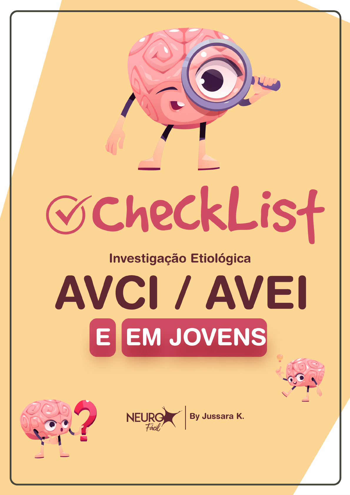 Investigação Etiológica AVCI AVEI E EM JOVENS NEURO By Jussara K. FácilInvestigação Etiológica AVCI / AVEI E EM JOVENS Avaliação Cardiológica; Exame de Neuroimagem; Radiografia de Tórax; Doppler; Exame de Sangue; que solicitar quando quadro Clínico for Sugestivo de Vasculite; Quando pedir exame de urina; Lembrete; By Jussara K. FácilEM JOVENS ou ≤55 NÃO HÁ CONSENSO). NÃO DOENÇAS DA PAREDE VASCULAR: ARTERiTES COMO MOLES DOENÇAS NA de TROMBOFiLiA NO CASO de ETiOLOGiA iNDETERMiNADA). DOENÇA CARDÍACA By Jussara K. VALVULOPATIA, NEURO Fácil etc. 03EM PROCEDER COM a STiGAÇÃO de ROTiNA P/ EM JOVEMS. EXAMES I- a) AVALiAÇÃO b) c) ECOCARDiOGRAMA: TRANS TORÁCICO d) OUTROS PELA NEURO By Jussara K. 04 FácilAve EM JOVENS=NÃO PROCEDER COM a STiGAÇÃO de ROTiNA EM EXAMES EXAMES de NEUROiMAGEM TOMOGRAFIA de CRÂNiO. de CRÂNiO dos VASOS CERViCAiS ou ARTERiOGRAFiA DiGiTAL. NEURO By Jussara K. 05 FácilEM JOVENS=NÃO PROCEDER COM a STiGAÇÃO de ROTiNA P/ AVC EM JOVEMS. EXAMES III- RADiOGRAFiA de TÓRAX. IZ-DOPPLER ECODOPPLER de DOPPLER TRANS CRANiANO. NEURO By Jussara K. 06 FácilEM PROCEDER COM a STiGAÇÃO de ROTiNA P/ AVC EM EXAMES V- EXAME de SANGUE HEMOGRAMA. LiPiDOGRAMA. VHS PeR. GLICEMIA de HEMOGLOBINA GLiCADA. COAGULOGRAMA. e CREATiNiNA. ELETROFORESE de EM IDOSOS LUES DOENÇA CHAGAS. SUSPETA de ARTERiTE TEMPORAL) NEURO By Jussara K. 07 FácilOBSERVAÇÕES: PACiENTE COM DOENÇA de MESMO DEVE iNVESTiGAR DOENÇA CORONARiANA No AR TERiTE TEMPORAL (EM ESTÁ BiOPSiA da TEMPORAL DEVENDO-SE FRAGMENTOS PORQUE PROCESSO PATOLÓGiCO ACOMETE A PAREDE VASCULAR de FORMA NEURO By Jussara K. Fácil 08EM JOVENS=NÃO AVC EM JOVEMS. EXAMES ALÉM DOS EXAMES de SANGUE: FATOR V de LEYDEN. PROTEiNA S. da COAGULAÇÃO. C. MUTAÇÃO da PROTROMBiNA. ANTiTROMBiNA III. PROVAS de ALFA 1 ViTAMiNA B12. ANTiCORPO ANTiCOAGULANTE PI HIV. HEPATiTE ENZiMAS NEURO By Jussara K. 09 FácilEM JOVENS=NÃO AVC EM JOVEMS. EXAMES ALÉM DOS QUADRO de CPK S AVALiAR SE A INDiCADO COMPLEMENTO N G U de PELE, NERVO, FAN. E MÚSCULO PULMÃO. FATOR NEURO By Jussara K. 10 FácilEM JOVENS=NÃO PROCEDER COM a iNVESTiGAÇÃO de ROTiNA P/ AVC EM JOVEMS. EXAMES EXAME de URiNA EXAME de ROTiNA ACUSAR PROTEiNÚRiA de 24 HORAS. NEURO By Jussara K. FácilEM JOVENS NÃO PORTANTO RELAÇÃO C/ FATORES de Risco P/ DOENÇA VASCULAR LEMBRETES: : 1- A ANEMiA DOENÇA GENÉTiCA FREQUENTE NO BRASiL OCORRENDO EM AFRODESCENDENTES l do GREGOS, ARABES l 3- CAUSA de EM CRiANÇAS NEURO By Jussara K. 12 FácilInvestigação Etiológica AVCI AVEI E EM JOVENS Prática + repetição = memorização. NEURO By Jussara K. Fácil