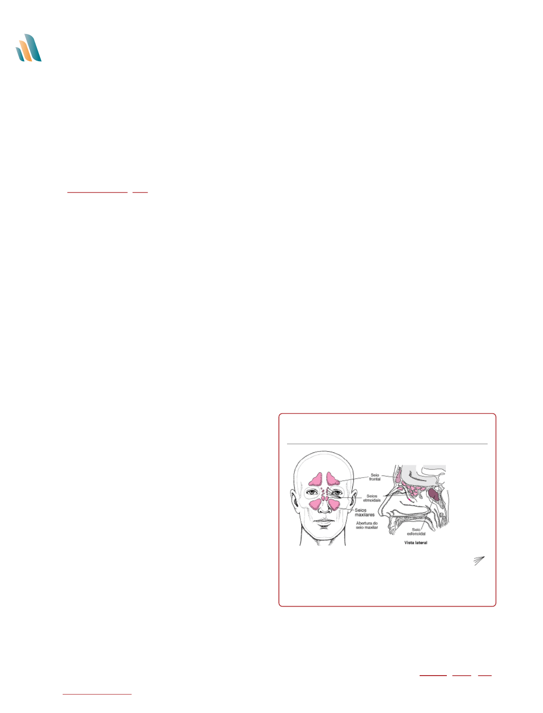 22/11/2024, 16:04Nariz e seios paranasais - Distúrbios do ouvido, nariz e garganta - Manual MSD Versão Saúde para a Família Página 1 de 3https://www.msdmanuals.com/pt/casa/distúrbios-do-ouvido-nariz-e-g…ta/biologia-dos-ouvidos-nariz-e-garganta/nariz-e-seios-paranasais Localizando os seios paranasais Nariz e seios paranasais Por David M. Kaylie, MS, MD, Duke University Medical Center Revisado/Corrigido: abr. 2022 | modificado dez. 2022 O nariz é o órgão do olfato e a principal via de acesso para entrada e saída de ar dos pulmões. O nariz aquece, umedece e limpa o ar, antes que ele entre nos pulmões. Os ossos do rosto, localizados ao redor do nariz, contêm espaços ocos denominados seios paranasais. Há quatro grupos de seios paranasais: os seios maxilares, etmoidais, frontais e esfenoides. Os seios paranasais reduzem o peso dos ossos faciais e do crânio, enquanto mantêm a resistência e a forma dos ossos. Os espaços cheios de ar do nariz e dos seios paranasais também conferem ressonância à voz. A estrutura que sustenta a parte superior e externa do nariz é formada por ossos e a parte inferior é formada por cartilagem. Dentro do nariz, localiza-se a cavidade nasal, que se encontra dividida em duas passagens pelo septo nasal. O septo nasal é composto tanto por osso, como por cartilagem e se estende dos orifícios nasais até à parte posterior do nariz. Os ossos denominados conchas nasais projetam-se para o interior da fossa nasal (cavidade), formando uma série de pregas (cornetos). Esses cornetos aumentam enormemente a área da superfície da cavidade nasal, consequentemente permitindo uma troca mais eficiente de calor e umidade. Podem se desenvolver pólipos entre os cornetos, frequentemente em pessoas com asma, alergias ou fibrose cística e nas que usam aspirina por períodos longos. MANUAL MSD Versão Saúde para a Família https://www.msdmanuals.com/pt/casa/authors/kaylie-david https://www.msdmanuals.com/pt/casa/dist%C3%BArbios-pulmonares-e-das-vias-respirat%C3%B3rias/asma/asma https://www.msdmanuals.com/pt/casa/doen%C3%A7as-imunol%C3%B3gicas/rea%C3%A7%C3%B5es-al%C3%A9rgicas-e-outras-doen%C3%A7as-relacionadas-%C3%A0-hipersensibilidade/alergias-sazonais https://www.msdmanuals.com/pt/casa/problemas-de-sa%C3%BAde-infantil/fibrose-c%C3%ADstica/fibrose-c%C3%ADstica-fc https://www.msdmanuals.com/pt/casa 22/11/2024, 16:04Nariz e seios paranasais - Distúrbios do ouvido, nariz e garganta - Manual MSD Versão Saúde para a Família Página 2 de 3https://www.msdmanuals.com/pt/casa/distúrbios-do-ouvido-nariz-e-g…ta/biologia-dos-ouvidos-nariz-e-garganta/nariz-e-seios-paranasais Revestindo a cavidade nasal existe uma membrana mucosa, rica em vasos sanguíneos. A área da superfície ampliada e os abundantes vasos sanguíneos permitem que o nariz aqueça e umidifique rapidamente o ar que por ele entra. As células da membrana mucosa produzem muco e contêm filamentos ciliares minúsculos (cílios). Geralmente, o muco retém as partículas de sujeira que penetram, que são então removidas pelos cílios até à parte anterior do nariz ou para baixo, até à garganta, para serem removidas das vias aéreas. Essa ação ajuda a limpar o ar antes que chegue aos pulmões. O espirro limpa automaticamente os canais nasais, em resposta à irritação, tal como a tosse limpa os pulmões. À semelhança da cavidade nasal, os seios paranasais são revestidos por uma membrana mucosa, composta por células que produzem muco e possuem cílios. As partículas de sujeira são retidas pelo muco e então removidas pelos cílios até à cavidade nasal, através de pequenas aberturas (óstios) dos seios. Devido ao tamanho tão reduzido dessas aberturas, a drenagem pode ficar facilmente obstruída em situações como resfriados ou alergias, que provocam edema das membranas mucosas. A obstrução da drenagem normal dos seios paranasais dá lugar a inflamação e infecção (sinusite). Olfato Uma das mais importantes funções do nariz é o papel que desempenha no sentido do olfato. Células receptoras de odores estão localizadas na parte superior da cavidade nasal. Trata-se de células nervosas especializadas que possuem cílios. Os cílios de cada célula são sensíveis a diferentes substâncias químicas e, quando estimulados, criam um impulso nervoso que é enviado às células nervosas do bulbo olfativo, que se encontra no interior do crânio, logo acima do nariz. Os nervos olfativos levam o impulso nervoso do bulbo olfativo diretamente ao cérebro, onde é percebido como um odor. O sentido do olfato, que até agora não foi totalmente compreendido, é muito mais sofisticado do que o sentido do paladar. Os diferentes odores são muito mais numerosos do que os sabores. O sentido subjetivo do paladar ao comer (sabor) envolve o paladar e o olfato (veja a figura Como as pessoas sentem os sabores), bem como textura e temperatura. É por essa razão que a comida pode parecer algo insípida quando a pessoa se encontra com o sentido do olfato diminuído, como pode acontecer quando a pessoa está resfriada. Visto que os receptores do olfato se encontram localizados na parte superior do nariz, a respiração normal não faz chegar muito ar sobre eles. Contudo, inspirar pelo nariz aumenta o fluxo de ar até às células receptoras olfativas, aumentando consideravelmente a sua exposição aos odores. https://www.msdmanuals.com/pt/casa/dist%C3%BArbios-do-ouvido-nariz-e-garganta/doen%C3%A7as-do-nariz-e-dos-seios-paranasais/sinusite 22/11/2024, 16:04Nariz e seios paranasais - Distúrbios do ouvido, nariz e garganta - Manual MSD Versão Saúde para a Família Página 3 de 3https://www.msdmanuals.com/pt/casa/distúrbios-do-ouvido-nariz-e-g…ta/biologia-dos-ouvidos-nariz-e-garganta/nariz-e-seios-paranasais Direitos autorais © 2024 Merck & Co., Inc., Rahway, NJ, EUA e suas afiliadas. Todos os direitos reservados.