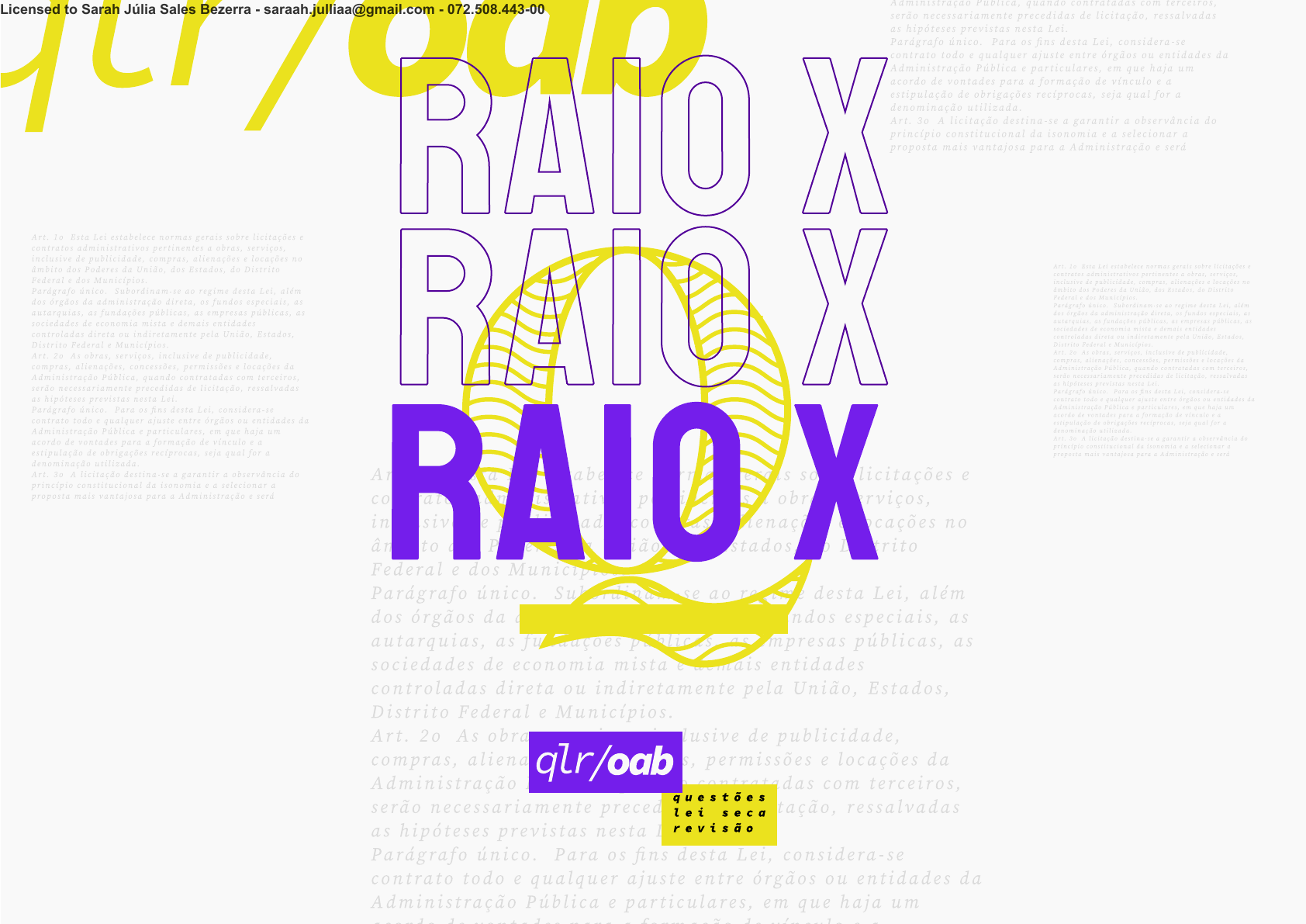 TRIBUTÁRIO Licensed to Sarah Júlia Sales Bezerra - saraah.julliaa@gmail.com - 072.508.443-00 Raio X OAB - Método QLR OAB Elaborado por Ana Clara Fernandes @viciodeumaestudante Material de uso individual. Proibido o repasse! Legenda: Artigos cobrados nas últimas 10 provas (XXXV ao XXV) Artigos cobrados em provas antes de 2018 Art. Artigos alterados a partir de 2019 Art. Artigo revogado Art. Artigo que já foi cobrado pelo menos 3 vezes Licensed to Sarah Júlia Sales Bezerra - saraah.julliaa@gmail.com - 072.508.443-00 Raio X OAB - Método QLR OAB Elaborado por Ana Clara Fernandes @viciodeumaestudante Material de uso individual. Proibido o repasse! CÓDIGO TRIBUTÁRIO NACIONAL (CTN) Art. 1 Art. 2 Art. 3 Art. 4 Art. 5 Art. 6 Art. 7 Art. 8 Art. 9 Art. 10 Art. 11 Art. 12 Art. 13 Art. 14 Art. 15 Art. 16 Art. 17 Art. 18 Art. 19 Art. 20 Art. 21 Art. 22 Art. 23 Art. 24 Art. 25 Art. 26 Art. 27 Art. 28 Art. 29 Art.30 Art. 31 Art. 32 Art. 33 Art. 34 Art. 35 Art. 36 Art. 37 Art. 38 Art. 39 Art. 40 Art. 41 Art. 42 Art. 43 Art. 44 Art. 45 Art. 46 Art. 47 Art. 48 Art. 49 Art. 50 Art. 51 Art. 52 Art. 53 Art. 54 Art. 55 Art. 56 Art. 57 Art. 58 Art. 59 Art. 60 Art. 61 Art. 62 Art. 63 Art. 64 Art. 65 Art. 66 Art. 67 Art. 68 Art. 69 Art. 70 Art. 71 Art. 72 Art. 73 Art. 74 Art. 75 Art. 76 Art. 77 Art. 78 Art. 79 Art. 80 Art. 81 Art. 82 Art. 83 Art. 84 Art. 85 Art. 86 Art. 87 Art. 88 Art. 89 Art. 90 Art. 91 Art. 92 Art. 93 Art. 94 Art. 95 Art. 96 Art. 97 Art. 98 Art. 99 Art. 100 Art. 101 Art. 102 Art.103 Art.104 Art.105 Art. 106 Art. 107 Art. 108 Art. 109 Art.110 Art.111 Art.112 Art.113 Art.114 Art. 115 Art.116 Art.117 Art. 118 Art.119 Art.120 Art.121 Art.122 Art.123 Art.124 Art.125 Art.126 Art.127 Art.128 Art.129 Art.130 Art.131 Art.132 Art.133 Art.134 Art.135 Art.136 Art.137 Art.138 Art.139 Art.140 Art.141 Art.142 Art.143 Art.144 Art.145 Art.146 Art.147 Art.148 Art.149 Art.150 Art. 151 Art. 152 Art. 153 Art. 154 Art.155 Art. 155-A Art. 156 Art. 157 Art. 158 Art. 159 Art. 160 Art. 161 Art. 162 Art. 163 Art. 164 Art. 165 Art. 166 Art. 167 Art. 168 Art. 169 Art. 170 Art. 171 Art. 172 Art.173 Art.174 Art. 175 Art. 176 Art.177 Art.178 Art.179 Art.180 Art.181 Art.182 Art.183 Art.184 Art.185 Art.186 Art.187 Art.188 Art.189 Art.190 Art.191 Art.192 Art.193 Art.194 Art.195 Art.196 Art.197 Art.198 Art.199 Art.200 Art.201 Art.202 Art.203 Art.204 Art.205 Art.206 Art.207 Art.208 Art.209 Art.210 Art.211 Art.212 Art.213 Art.214 Art.215 Art.216 Art.217 Art.218 Licensed to Sarah Júlia Sales Bezerra - saraah.julliaa@gmail.com - 072.508.443-00 Raio X OAB - Método QLR OAB Elaborado por Ana Clara Fernandes @viciodeumaestudante Material de uso individual. Proibido o repasse! TRIBUTOS - PARTE DA CONSTITUIÇÃO FEDERAL LEI DA EXECUÇÃO FISCAL (LEI 6.830/80) Art. 1 Art. 2 Art. 3 Art. 4 Art. 5 Art. 6 Art. 7 Art. 8 Art. 9 Art. 10 Art. 11 Art. 12 Art. 13 Art. 14 Art. 15 Art. 16 Art. 17 Art. 18 Art. 19 Art. 20 Art. 21 Art. 22 Art. 23 Art. 24 Art. 25 Art. 26 Art. 27 Art. 28 Art. 29 Art. 30 Art. 31 Art. 32 Art. 33 Art. 34 Art. 35 Art. 36 Art. 37 Art. 38 Art. 39 Art. 40 Art. 41 Art. 42 Art.145 Art.146 Art. 146-A Art. 147 Art. 148 Art. 149 Art. 149-A Art. 150 Art. 151 Art. 152 Art.153 Art. 154 Art. 155 Art. 156 Art.157 Art.158 Art. 159 Art. 160 Art. 161 Art. 162 Licensed to Sarah Júlia Sales Bezerra - saraah.julliaa@gmail.com - 072.508.443-00