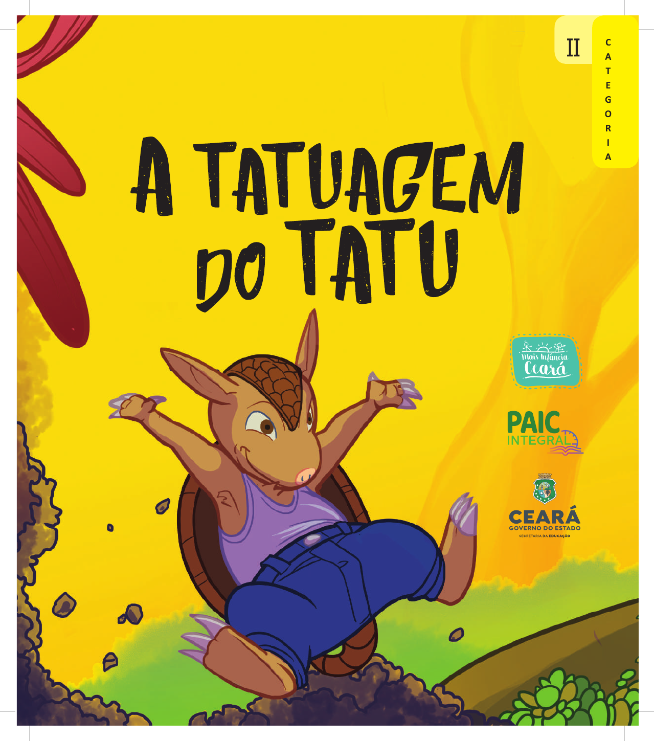 Texto: Frederico Brito Ilustrações: Adams Pinto Fortaleza ● Ceará ● 2022 Texto: Frederico Brito Ilustrações: Adams Pinto Copyright © 2022 Frederico Brito Copyright © 2022 Adams Pinto SEDUC - Secretaria da Educação do Estado do Ceará Av. Gen. Afonso Albuquerque Lima, s/n - Cambeba - Fortaleza - Ceará | CEP: 60.822-325 (Todos os Direitos Reservados / Proibida a comercialização) Dados Internacionais de Catalogação na Publicação (CIP) B862t Brito, Frederico A tatuagem do tatu / Frederico Brito; ilustrações Adams Pinto. - Fortaleza: SEDUC, 2022. 28p.; il. ISBN 978-85-8171-394-6 1. Literaturainfanto juvenil. 2. Tatu. 3. Descontentamento. I. Brito, Frederico. II. Pinto, Adams. III. Título. CDD: 028.5 Coordenação Editorial, Preparação de Originais e Revisão Fernanda Coutinho Revisão Textual Aparecida Bessa Coordenação Gráfica Daniel Dias Design Editorial / Capas Jozias Rodrigues Marisa Marques Catalogação e Normalização Centro de Documentação e Informações Educacionais - SEDUC / CDIE Governador Elmano de Freitas da Costa Vice-Governadora Jade Afonso Romero Secretária da Educação Eliana Nunes Estrela Secretária Executiva de Cooperação com os Municípios Emanuelle Grace Kelly Santos de Oliveira Coordenadora de Cooperação com os Municípios para Desenvolvimento da Aprendizagem na Idade Certa - COPEM Cristiane Cunha Nóbrega Articuladora de Cooperação com os Municípios para Desenvolvimento da Aprendizagem na Idade Certa - COPEM Arinda Cibelle Galvão Lobo Orientador da Célula de Fortalecimento da Alfabetização e Ensino Fundamental - CEFAE Cristiano Rodrigues Rabelo Eixo de Literatura e Formação do Leitor Maria Fabiana Skeff de Paula Miranda Sammya Santos Araújo Antônio Elder Monteiro de Sales Para você, querido leitor e querida leitora, que é especial do seu jeito. 4 O tatu, ultimamente, andava meio sem graça, se sentindo descontente com a sua carapaça. 5 Por ser muito gabola, vaidoso e coisa e tal, matutava na cachola: “Vou mudar meu visual.” 6 Procurou por todo lado, decidido a encontrar, um desenho descolado para o casco enfeitar. 7 Querendo escolher a tatuagem que o agradasse mais, foi atrás das camuflagens dos mais belos animais. 8 9 Espiou bem escondido as manchas da onça-pintada. Nem deu bola ao rugido feroz da felina tatuada. 10 Mais ao longe avistou a plumagem do pavão: — Esse leque é um esplendor, uma ótima opção! 11 Observando com atenção, o tatu se impressionou: — Não é que o camaleão tem tatuagem multicor!? 12 Correu esbaforido e topou com a maritaca, esbanjando seu colorido tatuado na casaca. 13 De lá partiu pra conhecer as “tattoos” da sucuri. — São tão lindas de se ver! Disse ele a sorrir. 14 15 16 Quando o tatu decidiu a tatuagem que ia usar, ao pica-pau ele pediu para seu casco tatuar. 17 Sem perder a compostura, o pica-pau quis explicar: — Sua couraça é muito dura, não consigo ajudar. 18 19 Tendo se desapontado, a taturana o consolou: — Pra que ficar chateado? E depois continuou: 20 — Essas placas simétricas são que nem tatuagem natural, tendo formas geométricas de beleza sem igual. 21 — Não se acha facilmente uma “tattoo” desse padrão, que além de atraente, traz abrigo e proteção. 22 — Veja pelo lado bom E deixe de melancolia! Sua roupagem é um dom, qualquer bicho aprovaria. 23 O tatu desconfiou, imaginou que era pirraça. Mas, no fim, se conformou e aceitou sua carapaça. 24 25 26 Superado o entrevero, o animal pensou melhor. Apreciou com muito esmero seu distinto paletó: – A minha tatuagem é mesmo de arrasar! E então da sua imagem ele passou a se orgulhar. 27 Frederico Brito Meu nome é Frederico Brito e nasci em Fortaleza/CE. Sou autor de livros infantojuvenis, especialista em Leitura, Literatura Infantil e Contação de Histórias, e ainda, compositor de músicas para a infância. Tenho três livros selecionados pela Secretaria da Educação do Ceará para a Coleção PAIC, PROSA E POESIA, A sinfonia da Dona Cutia, Terra da Luz: poesia que seduz e, agora, A Tatuagem do Tatu. Para conhecer mais sobre meu trabalho literário, visite o Instagram@historiasparaainfancia. Adams Pinto Nasci no Ceará e me percebi ilustrador ainda criança, nos primeiros rabiscos despretensiosos nas laterais dos cadernos da escola. Cria dos anos 80, influenciei-me esteticamente pelo colorido dos super-heróis, desenhos animados e intensidade visual daquela década. Cresci, evolui o meu traço, bebi de outras fontes e me graduei em Artes Plásticas pelo CEFET-CE e Design Digital pela FIC. Hoje eu sou um ilustrador, designer, escritor, músico e pai, que tenta expandir o alcance da arte que produz, em busca de atingir uma frequência que chegue até ao coração e à mente das pessoas. O Governo do Estado do Ceará, por meio da Secretaria da Educação, em cooperação com seus 184 municípios, objetivando garantir o direito de acesso ao livro e à leitura literária, publica e distribui às turmas da Educação Infantil e do Ensino Fundamental a coleção (PAIC, PROSA E POESIA). Essa iniciativa reúne textos de autores cearenses selecionados mediante edital público, com o propósito de incentivar a manutenção e o fortalecimento da cultura e da identidade cearense. Certa vez, um tatu, muito vaidoso, queria a todo custo tatuar a sua carapaça. Como ficaria contente se visse no espelho uma bela “tattoo”! Tentou, tentou, mas terminou não conseguindo. Em compensação, acabou valorizando o próprio casco, na verdade, um paletó feito com muito capricho pela natureza. E foi assim que nasceu A tatuagem do tatu. VENDA PROIBIDA