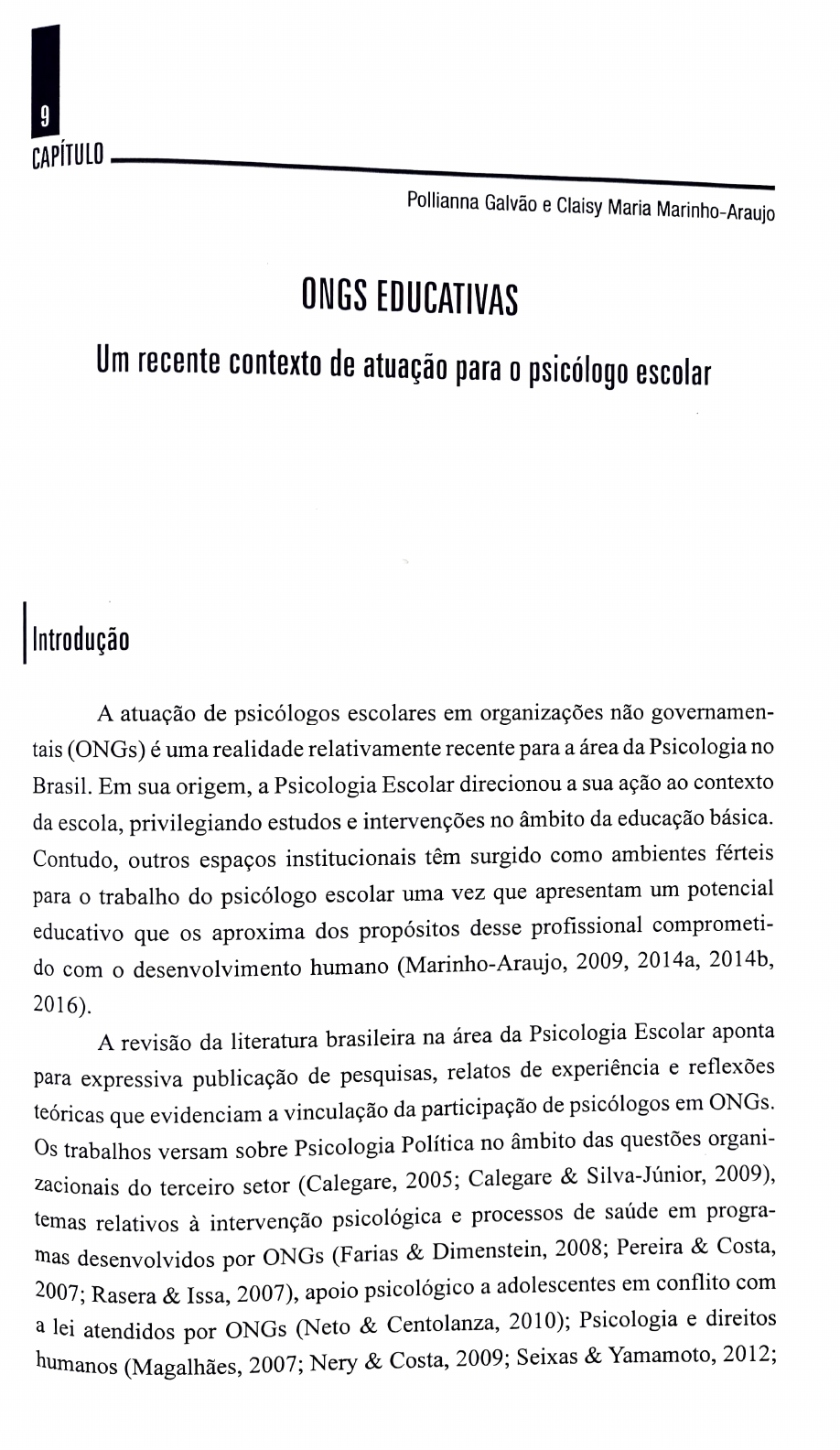 Galvão, P. & Marinho-Araujo, C. M. (2017). Psicologia escolar em ONGs: Desafios