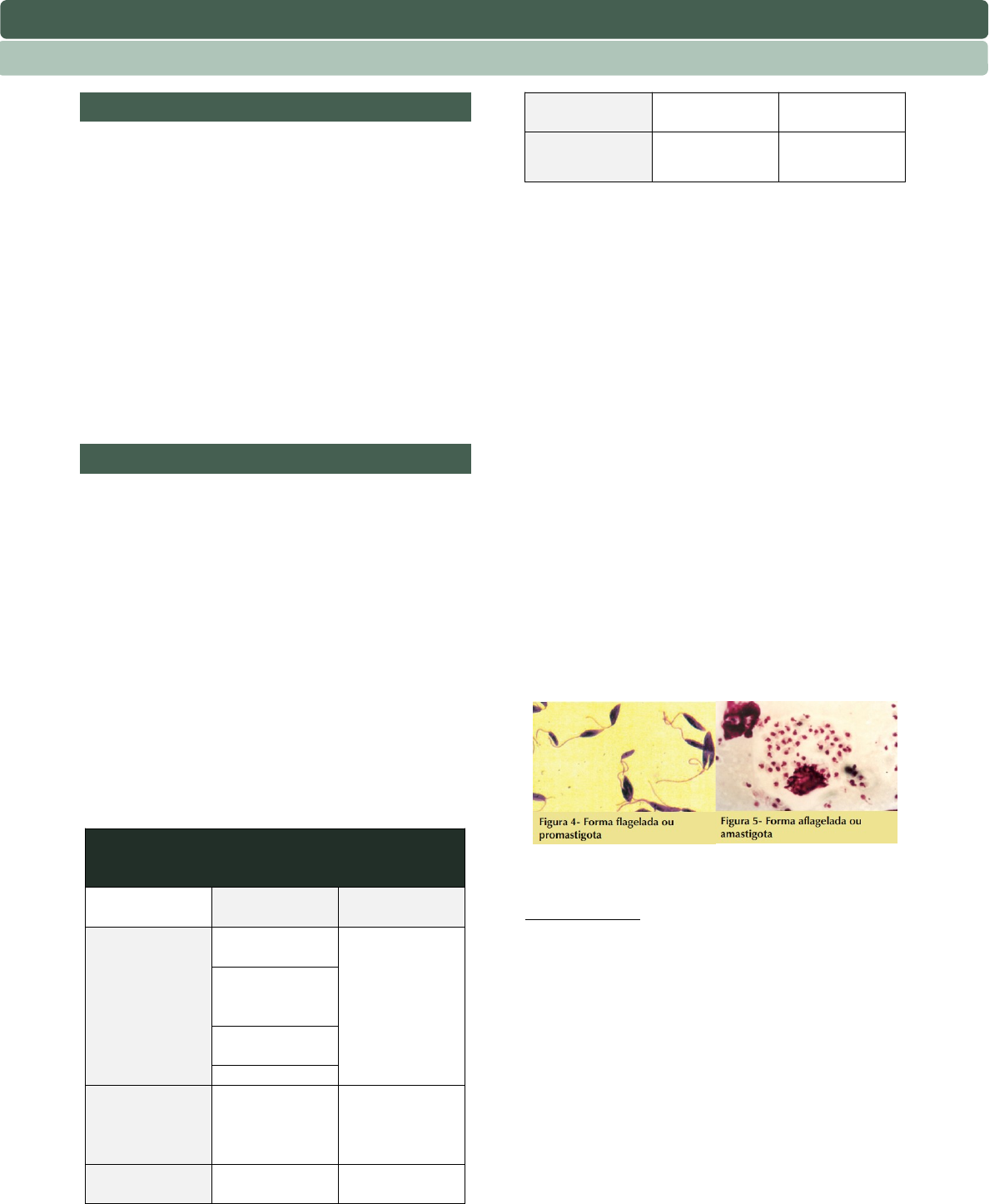 Hepatoesplenomegalias infecciosas Leishmaniose Visceral Definição A leishmaniose visceral (calazar = “febre negra”) é uma doença infecciosa crônica, de acometimento sistêmico, e endêmica de algumas áreas do Brasil. - Também chamada de esplenomegalia tropical, “febre dundun” ou barriga d’água; - É uma zoonose que, se não tratada, pode levar a óbito em até 90% dos casos; - No Brasil, a transmissão da doença vem sendo descrita em municípios de todas as regiões, exceto na região Sul. Agente etiológico e Transmissão · Agente etiológico São protozoários tripanosomatídeos do gênero Leishmania. A infecção é causada por uma das 3 subespécies do complexo Leishmania donovani*. É um parasita intracelular obrigatório das células do sistema fagocítico mononuclear. *Protozoários flagelados (classe Mastigophora) que pertencem à ordem Kinetoplastida, família Trypanosomatidae. Espécies de Leishmania spp. relacionadas por formas clínicas e procedência geográfica Novo mundo Velho mundo Leishmaniose tegumentar L. braziliensis L. major L. amazonensis L. guyanensis L. lainsoni Leishmaniose tegumentar difusa L. amazonensis Leishmaniose mucocutânea L. braziliensis Leishmaniose visceral L. chagasi L. donovani No Brasil: >> Protozoário: Leishmania infantum chagasi >> Flebotomíneo: Lutzomyia spp. (Lutzomyia longipalpis) A principal característica do gênero Leishmania é o dimorfismo, isto é, presença de duas formas evolutivas: (1) Amastigota – forma aflagelada, arredondada, parasito intracelular obrigatório (reproduz-se no citoplasma dos macrófagos/monócitos do hospedeiro); (2) Promastigota – forma flagelada, alongada e móvel (reproduz-se no intestino do vetor). · Reservatórios Reservatórios: animais de outra espécie (não humanos) que permitem a reprodução do parasita e liberam formas infectantes, capazes de infectar um vetor. São 3 reservatórios de destaque da leishmaniose visceral: • Área urbana – cão doméstico (Canis familiaris); • Área silvestre – raposas (Dusicyon vetulus e Cerdocyon thous) marsupiais (Didelphis albiventris). · Vetores Os vetores da LV são insetos flebotomíneos, conhecidos como mosquito palha, asa-dura, tatuquiras, birigui e outros. Estes insetos são pequenos e têm como características a coloração amarelada ou de cor palha e, em posição de repouso, suas asas permanecem eretas e semiabertas. No Brasil, as 2 espécies relacionadas à transmissão são: >> Lutzomyia longipalpis (principal); >> Lutzomyia cruzi (encontrada no Mato Grosso do Sul) A transmissão da LV acontece quando fêmeas infectadas picam cães ou outros animais infectados, e depois picam o homem, transmitindo o protozoário Leishmania chagasi. As fêmeas dos flebotomíneos são hematófagas e sua atividade alimentar acontece principalmente ao entardecer e no período noturno. *Ao final de 1980, verificou-se a adaptação deste vetor aos ambientes urbanos, em periferias de grandes centros, podendo ser encontrados no peridomicílio, em galinheiros, chiqueiro, canil, paiol, e no intradomicílio. Como são os flebotomíneos? São insetos pequenos (1-3 mm), possuem o corpo revestido por pelos de coloração clara (castanho claro). Facilmente reconhecíveis pelo seu comportamento, ao voar em pequenos saltos e pousar com as asas entreabertas Na fase adulta, estão adaptados a diversos ambientes. Porém, na fase larvária, desenvolvem-se em ambientes terrestres úmidos e ricos em matéria orgânica e de baixa incidência luminosa. *Há indícios de que o período de maior transmissão da LV, ocorra durante e logo após a estação chuvosa, quando há um aumento da densidade populacional do inseto. Ciclo da doença (1) O flebótomo contém formas promastigotas infectantes (metacíclicas) L. chagasi no aparelho digestivo. Durante o repasto sanguíneo, este material é regurgitado, permitindo a inoculação dos parasitas na derme do hospedeiro. Na área de inoculação, pode haver a formação de um nódulo cutâneo, úlcera ou não ter nada (maioria dos casos). (2) Na derme, as promastigotas são fagocitadas por macrófagos locais e outros fagócitos mononucleares. (3) No vacúolo fagocítico, as formas promastigotas perdem o flagelo, transformando-se em formas amastigotas. (4) As amastigotas se proliferam por divisão binária. Geram múltiplos protozoários, que se acumulam no citoplasma do macrófago e provocam rompimento celular Ao serem liberados no meio extracelular, infectam novos macrófagos ou monócitos. O protozoário realiza disseminação hematogênica, alcançando órgãos do sistema reticuloendotelial (fígado, baço e medula óssea), onde encontram novos macrófagos, mantendo um ciclo proliferativo celular. (5) Ao picar o homem ou animal infectado, o flebotomíneo ingere monócitos contendo formas amastigotas ativas, que são libertadas no intestino do inseto. As formas promastigotas transformam-se em paramastigotas, que colonizam o esôfago e a faringe do vetor, onde permanecem aderidas ao epitélio pelo flagelo, quando se diferenciam em formas infectantes (promastigotas metacíclicas). (8) Promastigotas metacíclicas invadem retrogradamente o aparelho digestivo proximal (estômago, esôfago e faringe) do mosquito e migram para a probócite. Cerca de 5 dias após ter adquirido o parasita, o mosquito já pode transmiti-lo para um novo hospedeiro. · Período de incubação É bastante variável tanto para o homem como para o cão: • No homem: 10 dias a 24 meses (média entre 2 a 6 meses); • No cão: de 3 meses a vários anos (média de 3 a 7 meses). Epidemiologia O calazar é uma doença endêmica em 88 países da região tropical e subtropical do globo, no “Velho Mundo” (África, Ásia e Europa) e no “Novo Mundo” (América Latina). >> Existem cerca de 360 milhões de pessoas sob risco; >> 500 mil novos casos de LV ocorrem anualmente no globo; >> Nos últimos 5 anos, foram registrados, em média, 1966 casos por ano 