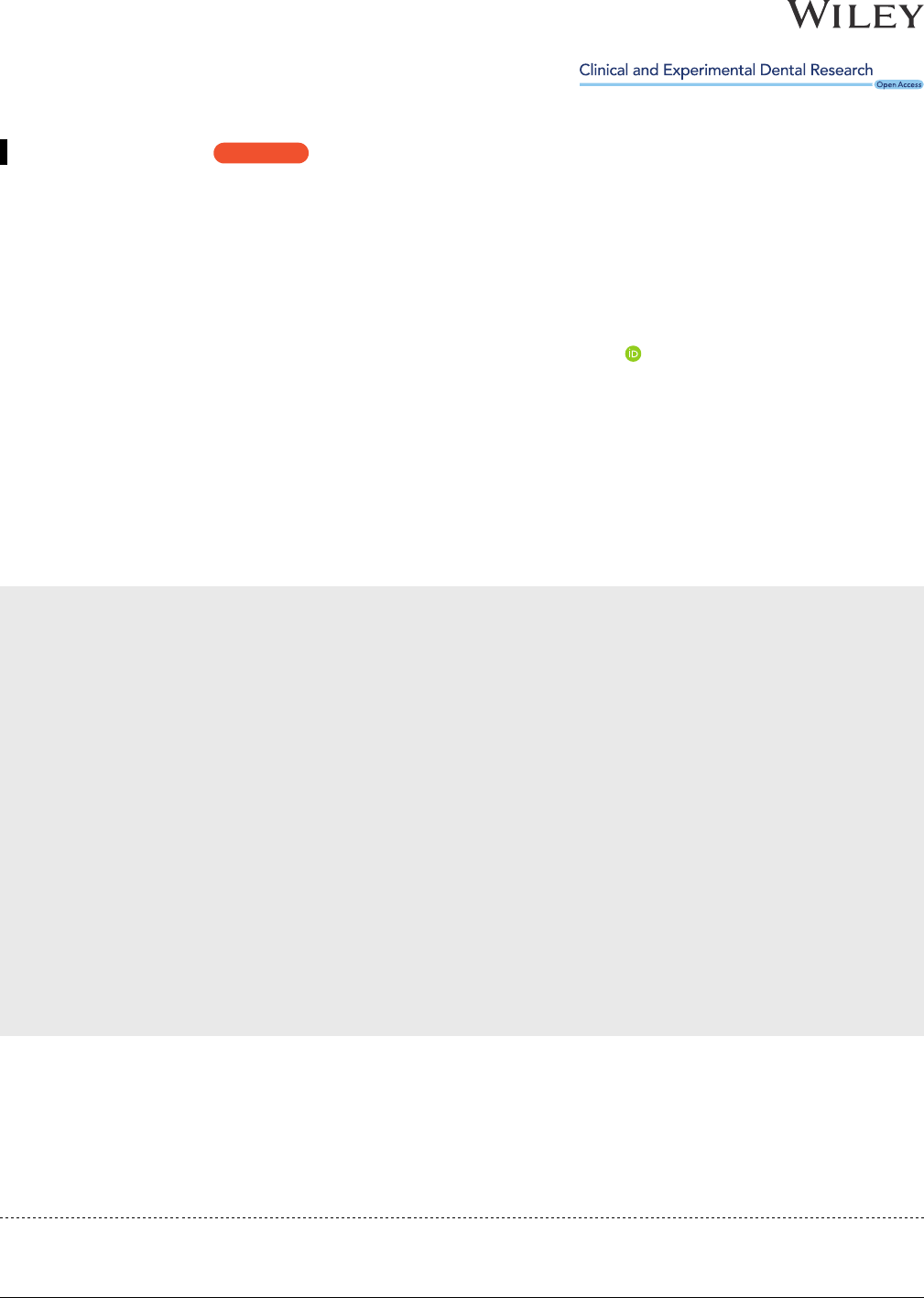 Clinical and Experimental Dental Research ORIGINAL ARTICLE OPEN ACCESS Influence of Different Application Modes of a Universal Adhesive System on the Bond Strength of Bulk‐Fill Composite Resin to Enamel and Dentin in Primary Teeth Ali Nozari1 | Maryam Pakniyat Jahromi1 | Farnaz Haji Abbas Oghli1 | Zahra Jowkar2 | Seyed Ahmadreza Hamidi3 1Department of Pediatric Dentistry, School of Dentistry, Shiraz University of Medical Sciences, Shiraz, Iran | 2Oral and Dental Disease Research Center, Department of Operative Dentistry, School of Dentistry, Shiraz University of Medical Sciences, Shiraz, Iran | 3Department of Operative Dentistry, School of Dentistry, Shiraz University of Medical Sciences, Shiraz, Iran Correspondence: Zahra Jowkar (zahrajowkar66@gmail.com) Received: 16 December 2023 | Revised: 20 May 2024 | Accepted: 29 July 2024 Funding: The authors received no specific funding for this work. Keywords: bulk‐fill composite resin | primary teeth | universal adhesive system ABSTRACT Objectives: The objective of this study was to assess how the application mode of a universal adhesive system affects the microshear bond strength (μSBS) of bulk‐fill and conventional composite resins to enamel and dentin in primary teeth. Methods: A total of 80 caries‐free primary second molars were randomly assigned to eight experimental groups (n= 10) based on the bonding substrate (enamel or dentin), the application mode of the universal adhesive system (etch and rinse [E&R], or self‐etch [SE]), and the type of composite resin used (bulk‐fill or conventional). After bonding the composite resin to enamel or dentin, the μSBS of the bonded composite resins was measured. Results: The mean μSBS value of bulk‐fill composite resin was significantly higher than that of conventional composite resin for both enamel and dentin substrates, regardless of the application mode (pUniversal Adhesive) using the SE approach resulted in lower bond strength values to primary dentin compared to the E&R method (Lenzi, Soares, and de Oliveira Rocha 2017). However, an alternative study demonstrated that the bond strength of two universal adhesive systems (Scotchbond Uni- versal and All‐Bond Universal) to primary tooth dentin was increased by prior acid etching (Kim et al. 2017). In contrast, a study by Nicoloso et al. found no significant difference in bond strength between the SE and E&R approaches (Nicoloso 2016). As a result, there is ongoing debate regarding the impact of application mode on the bond strength of universal adhesives to primary teeth (Lenzi et al. 2013; Nicoloso 2016; Thanaratikul, Santiwong, and Harnirattisai 2016; Kim et al. 2017). To the best of the authors' knowledge, no prior investigation has explored the impact of the application mode of universal ad- hesives on the bond strength of bulk‐fill composite resins in primary teeth. Hence, the objective of this in vitro study was to evaluate how the application mode of a universal adhesive system affects the microshear bond strength (μSBS) between a bulk‐fill composite resin and the enamel and dentin surfaces of primary teeth. The study aimed to test the null hypothesis that there would be no significant differences in μSBS when using different application modes of the universal adhesive system to bond the bulk‐fill composite resin to the enamel and dentin surfaces of primary teeth. 2 | Materials and Methods 2.1 | Tooth Preparation Following approval from the Research and Ethics Committee of Shiraz University of Medical Sciences (Protocol #IR.SUMS.- DENTAL.REC.1401.024), a total of 80 primary second molars, free from caries, cracks, or enamel defects, were obtained. These teeth had been extracted for orthodontic purposes. The parents of the patients were informed about the study's purpose and the use of the extracted teeth, and they provided informed consent by signing relevant forms. All experimental procedures were performed by a trained operator who was unaware of the study conditions. The collected teeth were cleaned using a periodontal curette and then stored in a 0.5% chloramine T solution at a temperature of 4°C. The storage duration did not exceed 1 month before the teeth were utilized for the study. 2.2 | Specimen Preparation The roots and crowns of all specimens were separated and the roots were discarded. Forty of the samples (crowns) were allocated for the assessment of μSBS to enamel, while the remaining 40 were specifically designated for evaluating dentin bond strength. 2 of 11 Clinical and Experimental Dental Research, 2024 Figure 1 displays a schematic diagram illustrating the procedure involved in preparing enamel and dentin specimens. To prepare the enamel specimens, flat enamel surfaces with a depth of 0.5 mm were created at the midbuccal regions of the tooth crowns using a low‐speed cutting machine (Mecatome T201 A, Presi, Grenoble, France). Adequate water cooling was ensured during the preparation process. Subsequently, the prepared specimens were mounted in acrylic resin blocks, with the buccal surfaces facing upward and parallel to the base of the resin blocks. To achieve standardized flat enamel surfaces, the prepared areas were slightly wet‐ground using 320‐grit silicon carbide papers. The presence of dentin on the enamel surfaces was confirmed using a stereoscopic microscope (Carl Zeiss, Oberkochen, Germany). For the dentin specimens, flat midcoronal dentin surfaces were prepared. The occlusal enamel and superficial dentin were re- moved from the samples using a low‐speed cutting machine (Mecatome T201 A, Presi, Grenoble, France) with water‐ cooling. This process was carried out to create dentin speci- mens. The prepared dentin specimens were then mounted in acrylic resin blocks, with the dentin surfaces aligned parallel to the base of the resin blocks. To generate a consistent smear layer on the prepared surfaces of the specimens, 320‐grit silicon carbide papers were used for 1 min. Following th