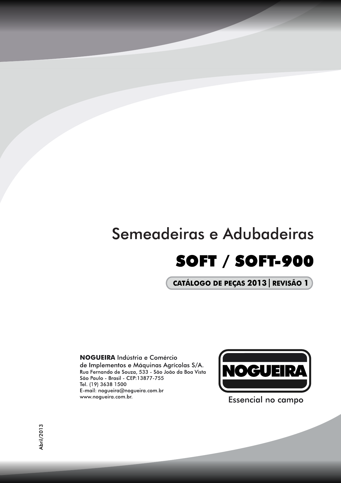 CATÁLOGO DE PEÇAS 1 Neste catálogo estão identifi cadas todas as peças e os conjuntos que compõem as Semeadeiras Adubadeiras modelos SOFT e SOFT-900. É um guia completo de montagem e um instrumento útil para uma efi ciente assistência técnica. É necessário fornecer os seguintes dados: Número de série da máquina, conforme plaqueta de identifi cação fi xada na estrutura da mesma. Código e Denominação das peças, conforme lista de peças deste manual. Quantidade de peças. NOTA - Qualquer dúvida poderá ser solucionada diretamente com o Departamento de Assistência Técnica da Nogueira, fone (19) 3863-3000. À NOGUEIRA S/A reserva-se o direito de efetuar modifi cações no equipamento sempre que necessário, sem que, incorram em obrigações de qualquer espécie. ABREVIATURAS E SIMBOLOGIAS UTILIZADAS CJ ..............................................................................................................................................Conjunto LD ......................................................................................................................................... Lado direito LE ....................................................................................................................................Lado esquerdo A seta colocada no alto das páginas indica para onde está direcionada a frente da máquina (engate ao trator). COMO PEDIR PEÇAS PARA A FÁBRICA CATÁLOGO DE PEÇAS SOFT / SOFT-900 CLICK NA FIGURA ABAIXO PARA ABRIR A PÁGINA CORRESPONDENTE 2 CATÁLOGO DE PEÇAS 3 SOFT / SOFT-900 ITEM CÓDIGO DESCRIÇÃO QTDE SOFT SOFT-900 01 2900329 2900348 Depósito da Semeadeira 01 02 2914807 2914807 Parafuso Francês M10 x 30 DIN 603 - 8.8 ZN 04 03 2900616 2900616 Arruela Lisa 10,5 x 21 x 2 PB 173 ZN 04 03 2910705 2910705 Arruela de Pressão B10 DIN 127 ZN 04 03 2915407 2915407 Porca Sextavada M10 DIN 934 G8 ZN 06 04 6800645 6800645 Estrutura Conjunto SOFT 01 05 6800517 6800517 Blindagem Cj. 01 06 2914908 2914908 Parafuso Sextavado M8 x 16 DIN 933 – 5.6 ZN 02 07 2900618 2900618 Arruela Lisa 8,4 x 17 x 2 PB 173 ZN 04 07 2915405 2915405 Porca Sextavada M8 DIN 934 G8 ZN 02 08 2914922 2914922 Parafuso Sextavado M10 x 40 DIN 931 – 5.6 ZN 01 09 2901715 2901715 Contra Pino 03 10 6800582 6800582 Pino do Hidráulico 02 11 6800183 6800183 Pino do Hidráulico 01 12 6800232 6800232 Arruela 04 13 2900616 2900616 Arruela Lisa 10,5 x 21 x 2 PB 173 ZN 02 1 3 4 6 7 7 3 8 5 9 93 11 10 2 12 2 13 2 2 212 12 CATÁLOGO DE PEÇAS 4 6 5 7 8 9 10 11 12 13 14 44 15 1718 317 4 6 1 6 2 16 4 TRANSMISSÃOSOFT / SOFT-900 ITEM CÓDIGO DESCRIÇÃO QTDE SOFT / SOFT-900 01 2902137 Cardan Agrícola CC 1000/1 01 02 6800520 Rotor Completo 01 03 2914920 Parafuso Sextavado M10 x 30 DIN 933 – 8.8 ZN 04 04 2900614 Arruela Lisa 10,5 x 21 x 2 PB 173 ZN 16 04 2910705 Arruela de Pressão B10 DIN 127 ZN 12 04 2915407 Porca Sextavada M10 DIN 934 G8 ZN 12 05 2914908 Parafuso Sextavado M8 x 16 DIN 933 – 5.6 ZN 02 06 2900618 Arruela Lisa 8,4 x 17 x 2 PB 173 ZN 14 06 2910704 Arruela de Pressão B8 DIN 127 ZN 14 06 2915405 Porca Sextavada M8 DIN 934 G8 ZN 14 07 2914909 Parafuso Sextavado M8 x 20 DIN 933 – 5.6 ZN 04 08 Prato Fixo do Dosador 01 09 6800521 Suporte do Dosador 01 10 2914804 Parafuso francês M8 x 20 DIN 603 – 8.8 ZN 08 11 6800519 Lançador 04 12 2900406 Anel de Retenção 35 x 1,5 DIN 471 01 13 6800532 Rotor Cj. 01 14 2914918 Parafuso Sextavado M10 x 20 – 8.8 ZN 04 15 2905205 Pino Elástico Leve 8 x 45 NBR 8320 01 15 2905236 Pino Elástico Leve 5 x 40 NBR 8320 01 16 6802105 Dosador 01 17 6800523 Lateral de Fixação 02 18 2901109 Caixa de Transmissão CT 7010 (COMPLETA) 01 6800524 (inclui o item 12) CATÁLOGO DE PEÇAS 5 SOFT / SOFT-900 ITEM CÓDIGO DESCRIÇÃO QTDE SOFT / SOFT-900 01 6800594 Agitador Menor 01 02 2915406 Porca Sextavada M8 – autofrenante 01 03 2915043 Parafuso Sextavado M 8 x 45 DIN 931 – 8.8 ZN 01 04 2900614 Arruela Lisa 10,5 x 21 x 2 PB 173 ZN 06 04 2910705 Arruela de Pressão B10 DIN 127 ZN 06 04 2915407 Porca Sextavada M10 DIN 934 G8 ZN 06 05 6800647 Arco Agitador 01 06 2914806 Parafuso francês M10 x 25 DIN 603 – 8.8 ZN 03 07 2915043 Parafuso Sextavado M 8 x 45 DIN 931 – 8.8 ZN 01 08 6800634 Agitador 01 09 2915406 Porca Sextavada M8 DIN 985 G8 ZN autofrenante 01 10 6800636 Kit Agitador Excêntrico 01 11 6800336 Adaptador 01 12 6802015 Agitador cj 01 13 2906142 Retentor 22,2 X 31 X 6 REF 5696 ARCA 01 14 2906415 Rolamento 6003 2RS 01 15 6802014 Tampa 01 16 2900429 Anel de Retenção 17 x 1 – DIN 471 01 17 2910703 Arruela de Pressão B6 DIN 127 ZN 03 18 2914903 Parafuso Sextavado M6 x 16 DIN 933 – 5.6 ZN 03 19 2900446 Chapéu Chinês 01 20 2914919 Parafuso Sextavado M10 x 25 - 8.8 ZN DIN 24017-92 03 21 6800592 Suporte Chapéu Chinês 01 22 6800675 Chapéu Chinês Soft cj. 01 8 6 4 1 2 3 97 5 18 17 1615 14 13 12 11 10 19 22 21 4 20 20 4 CATÁLOGO DE PEÇAS 6 CAIXAS DE TRANSMISSÃO - DIREITASOFT / SOFT-900 4 3 1 1 9 2 6 5 11 12 13 8 2 10 2 7 7 CATÁLOGO DE PEÇAS PECUS SOFT / SOFT-900 7 ITEM CÓDIGO DESCRIÇÃO QTDE ** 2901109 Caixa de Transmissão CT 7010 COMPLETA 01 1 2901142 Carcaça Ref.Inpel 89147 01 2 2901143 Engrenagem Cônica Ref. Inpel 84143-he 01 3 2901144 Engrenagem Cônica Ref. Inpel 84143-hd 01 4 2901432 Eixo Caixa de Transmissao Soft Ref. Inpel 88.188-05 01 5 2901146 Eixo Ref. Inpel 88193-05 01 6 2906301 Rolamento 6005 Folga C-3 Ref. Inpel Rl 23 02 7 2906362 Rolamento 6205 Folga C-3 Ref. Inpel Rl 01 02 8 2906133 Retentor 25 X 47 X 7 Ref. Inpel Rr 32 01 9 2906140 Retentor 30 X 52 X 8 Ref. Inpel Rr 36 01 10 2900408 Anel De Retenção 47 X 1,75 Ref. Inpel Ari 11 02 11 2900403 Anel De Retenção 25 X 1,75 Ref. Inpel Are 25 01 12 2901147 Tampa Ref. Inpel Ta-21 01 13 2901148 Tampa Ref. Inpel Ta-22 01 14 2901149 Tampa Móvel Ref. Inpel Bj-02 01 15 2901150 Junta do Tampão Ref. Inpel Av-13 01 16 2901152 Respiro Ref. Inpel Rp-01 01 CATÁLOGO DE PEÇAS 8 ITEM CÓDIGO DENOMINAÇÃO QTDE *** 6800560 Adesivos SOFT (jogo) 01 *** 680059