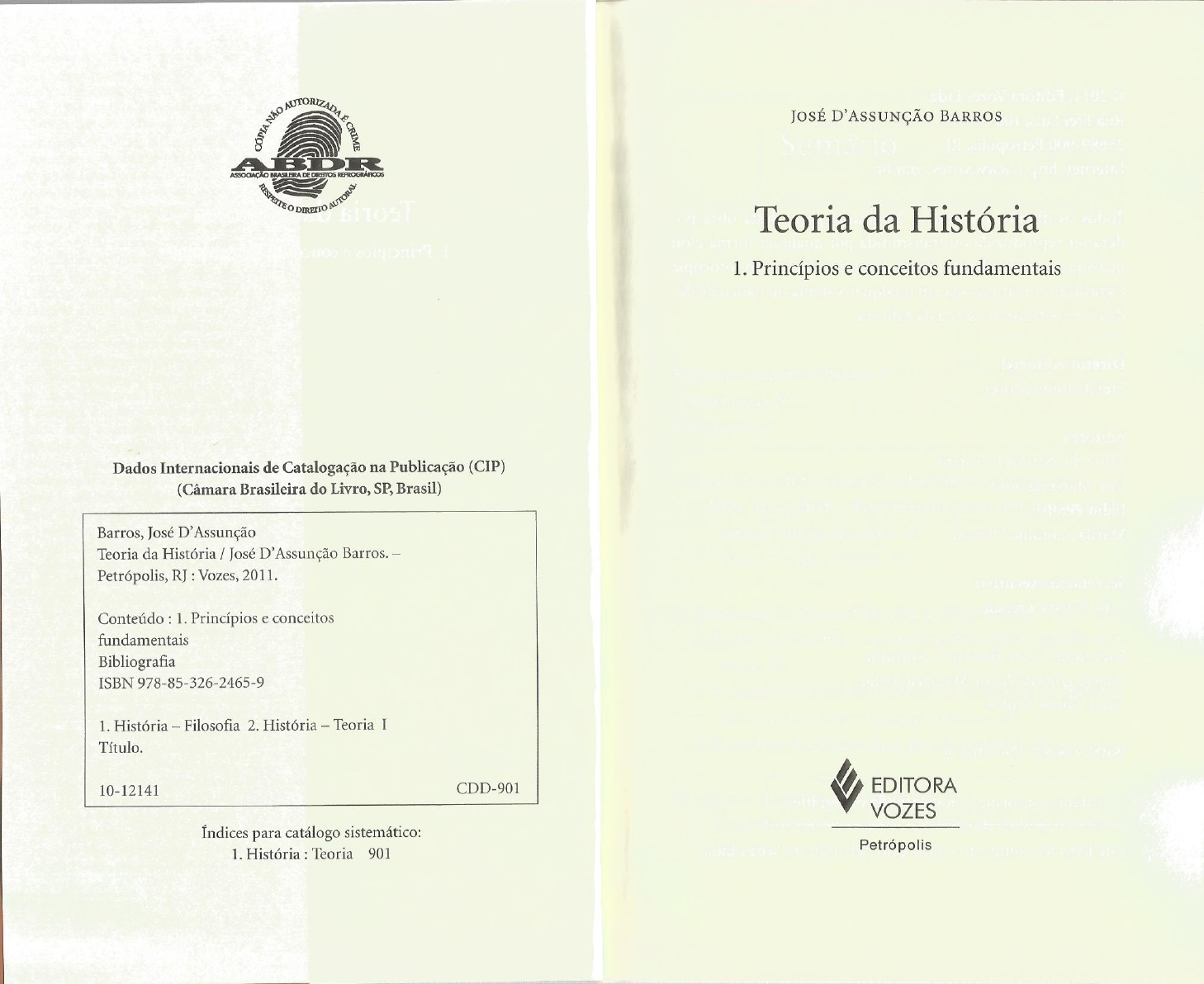 AUTORIZADA JOSÉ BARROS BDR ASSOCIAÇÃO BRASILEIRA DE DIREITO AUTORAL Teoria da História 1. Princípios e conceitos fundamentais Dados Internacionais de Catalogação na Publicação (CIP) (Câmara Brasileira do Livro, SP, Brasil) Barros, José Teoria da História / José D'Assunção Barros. Petrópolis, RJ : Vozes, 2011. Conteúdo : 1. Princípios e conceitos fundamentais Bibliografia ISBN 978-85-326-2465-9 1. História - Filosofia 2. História - Teoria I Título. 10-12141 CDD-901 EDITORA VOZES Índices para catálogo sistemático: Petrópolis 1. História : Teoria 901Apresentação presente volume é o primeiro de uma série dedicada à Teoria da História. Compreendendo que a Teoria da História e a Metodologia da História são as duas dimensões funda- mentais para a formação do historiador e para a sustentação de qualquer pesquisa histórica dentro dos quadros atuais de exigências desse âmbito profissional e do campo disciplinar da historiografia, com esta série de trabalhos pretendemos contribuir para a primeira destas dimensões: a Teoria da História. Este primeiro volume buscará estabelecer os princípios e conceitos fundamentais para seu estudo, e nele discutiremos o que é Teoria, o que é Teoria da História, em que aspec- tos as da história" se diferenciam das "filosofias da de que elementos se constitui a "matriz disciplinar da História" nos dias de hoje. Conceitos como o de "para- "escola "campo histórico" serão discutidos em maior profundidade, preparando o estudo que se desdo- brará nos demais volumes da série. Ao mesmo tempo, dis- cutiremos algumas questões fundamentais para se pensar aTeoria da História hoje. Quais são os limites entre a "liberda- de teórica" e as imposições da "coerência nos atuais quadros do desenvolvimento historiográfico? Como se pode Introdução aplicar o princípio da historicidade à própria Teoria da His- tória? Será a História uma Ciência, e exclusivamente uma Ci- ência, ou o conhecimento historiográfico também deve ser pensado nos termos de uma dimensão estética, discursiva, ou mesmo artística? Os demais volumes da série procurarão discutir questões mais específicas, algumas envolvendo também a própria A Teoria da História constitui um campo de estudos fun- História da Historiografia. Quais os grandes paradigmas damental para a formação do historiador. Não é possível historiográficos que, ontem e hoje, se colocam à disposição desenvolver uma adequada consciência historiográfica, nos dos historiadores? Quais as características essenciais do Po- atuais quadros de expectativas relacionados ao nosso ofício, sitivismo, do Historicismo, do Materialismo Histórico, dos sem saber se utilizar de conceitos e hipóteses, sem compre- modelos historiográficos relativistas? Uma classificação das ender as relações da História com o Tempo, com a Memória produções historiográficas em termos de paradigmas será ou com o Espaço, ou sem conhecer as grandes correntes e pa- suficiente para compreender em toda a complexidade um radigmas teóricos disponibilizados aos historiadores através pensamento historiográfico? No segundo e terceiro volumes da própria história da historiografia. Do mesmo modo, essa discutiremos esses aspectos e, no quarto volume intitulado consciência histórica que se mostra tão necessária não apenas "Acordes historiográficos" -, desenvolveremos uma proposta aos historiadores em formação, mas também aos próprios experimental para pensar a historiografia. leitores de livros de história, é inseparável de uma adequada Estão previstos ainda mais dois volumes, discutindo a reflexão sobre o tipo de conhecimento que se produz com a historiografia, inclusive a mais recente, através dos conceitos História, sobre as relações possíveis desse conhecimento com de "escolas históricas" e "campos sexto volu- alguma base concreta de realidade, sobre as singularidades me retornará ao âmbito dos conceitos operacionais para a da História como um "campo disciplinar" muito específico historiografia, discutindo temas como o Tempo, o Espaço, a que se situa ou se desloca no quadro geral das outras formas Memória, o uso de hipóteses na história-problema. de conhecimento e que com elas trava disputas e diálogos interdisciplinares. Como entender a História, ainda, sem 10reconhecer a sua complexidade, sem vislumbrar o labirinto em nível de coleta de informações e evidências, seja em nível das suas modalidades internas, sem compreender como na de análise de discursos e de séries de informações). Igual- interconexão entre essas várias modalidades trabalham os mente inadequado seria também o contrário: estabelecer historiadores como uma comunidade profissional bastante uma prática de metodologia da história no Curso de Teoria específica? Como apreender, por fim, essa enigmática relação da História sem abordar questões especificamente teóricas, entre a História e a história entre uma forma de conheci- entre as quais poderíamos mencionar o papel dos conceitos mento bem singular que é essa que é produzida pelos histo- na escrita da história, as diversas modalidades internas nas riadores, e o seu próprio objeto de estudos, que corresponde quais se organiza a prática historiográfica, ou ainda a formu- à vivida" que lhes chega através de vestígios trazidos lação de hipóteses como fator importante para mediar, na pelas chamadas "fontes históricas"? Todas essas inúmeras pesquisa, a passagem da teoria à metodologia. De igual ma- questões por excelência fazem parte dos aspec- neira, seria lacunar deixar de se empreender uma discussão tos disciplinares que podem ser referidos como uma Teoria inicial em torno de correntes teóricas e paradigmas como o da História, conforme veremos no decorrer deste livro. Positivismo, o Historicismo ou o Materialismo Histórico na Antes de abordarmos os diversos aspectos pertinentes à disciplina Teoria da 
