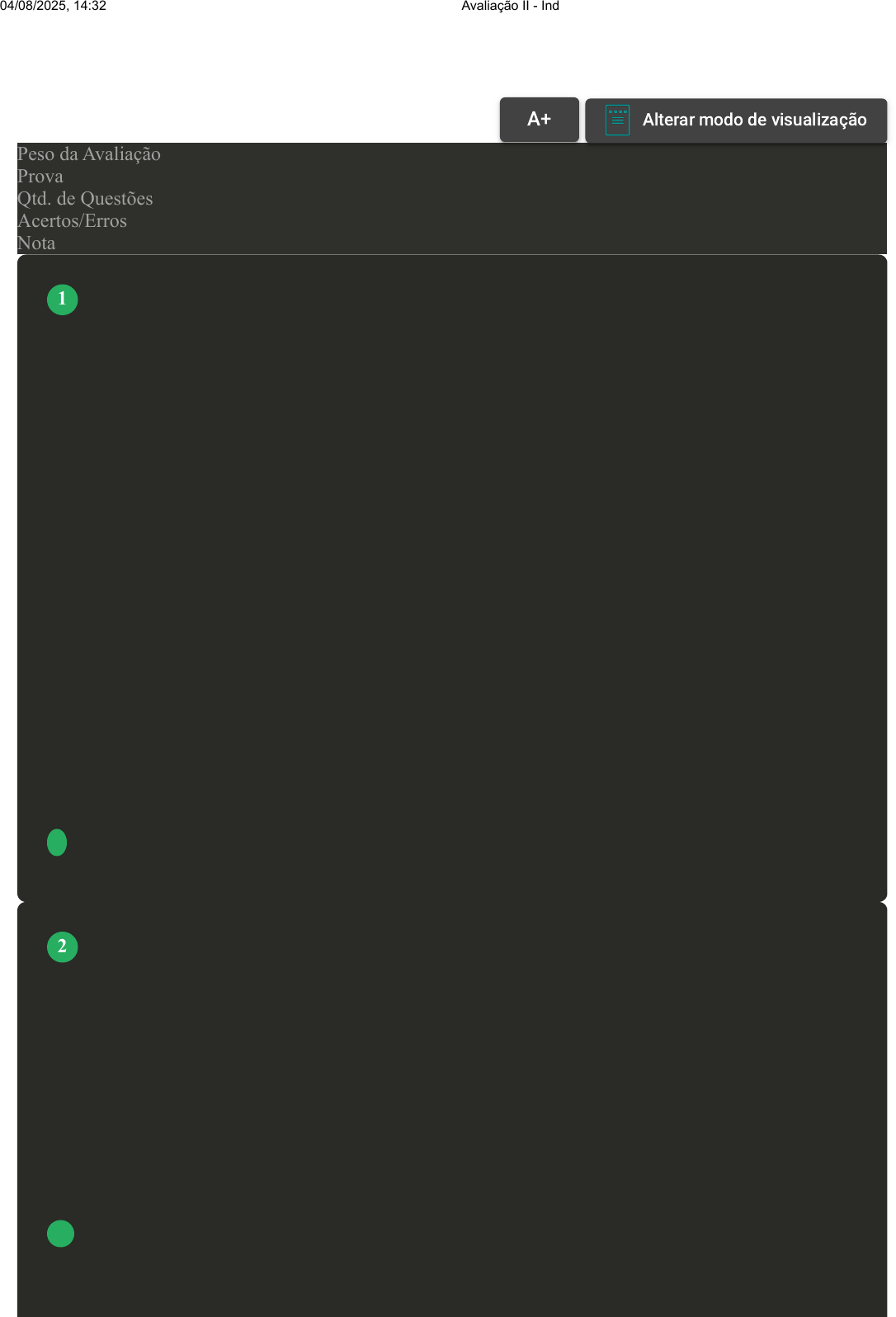 Prova Impressa GABARITO | Avaliação II - Individual (Cod.:1526153) Peso da Avaliação 2,00 Prova 102833368 Qtd. de Questões 10 Acertos/Erros 10/0 Nota 10,00 O Programa de Alimentação do Trabalhador (PAT) tem como objetivo principal a melhoria das condições nutricionais dos trabalhadores visando à promoção de sua saúde e prevenção das doenças profissionais, por meio da concessão de incentivos fiscais. Sua gestão é compartilhada entre o Ministério do Trabalho e Emprego, a Secretaria Especial da Receita Federal do Brasil do Ministério da Fazenda e o Ministério da Saúde. No âmbito do PAT, as parcelas a título de alimentação não possuem natureza salarial, não se incorporam à remuneração para quaisquer efeitos, não se constituem em rendimento tributável do trabalhador, tampouco em base de incidência para os encargos trabalhistas e previdenciários. Fonte: https://www.gov.br/trabalho-e-emprego/pt-br/servicos/empregador/programa-de-alimentacao- do-trabalhador-pat/faq-atualizacao-cgsst_ago23.pdf. Acesso em: 8 jan. 2025. A partir do exposto e sobre o PAT (Programa de Alimentação do Trabalhador), assinale a alternativa correta: A A empresa, ao ser beneficiária do PAT, deverá fornecer obrigatoriamente um vale-alimentação para seus colaboradores. B Os empregadores podem deduzir até 2% das despesas com alimentação no Imposto de Renda. C Com a aderência das empresas ao PAT, a sociedade como um todo acaba sendo prejudicada, devido ao aumento de gastos com saúde. D As empresas ao aderirem ao PAT, automaticamente já recebem incentivos e ganham com o aumento da rotatividade dos colaboradores. E Não só ajuda os trabalhadores a se manterem saudáveis, mas também traz vantagens para as empresas e a sociedade como um todo. A prática de pagar as parcelas salariais de forma unificada aos funcionários, sem especificar a que cada uma se refere na folha de pagamento, tem causado vários problemas às empresas. O judiciário tem se manifestado no sentido de que o pagamento que não estiver discriminado verba por verba, evento por evento, obriga o empregador a pagar novamente o que não foi discriminado. Com base nas informações apresentadas, avalie as asserções a seguir e a relação proposta entre elas: I. O salário complessivo é uma prática ilegal no Direito trabalhista brasileiro. PORQUE II. Essa ilegalidade se deve ao fato de que o salário complessivo impossibilita a distinção clara entre os diferentes componentes da remuneração, como salário-base, horas extras, adicionais e outras vantagens, prejudicando o trabalhador na compreensão de seus direitos. A respeito dessas asserções, assinale a opção correta: A As asserções I e II são verdadeiras, e a II é uma justificativa correta da I. B A asserção I é uma proposição falsa e a II é uma proposição verdadeira. VOLTAR A+ Alterar modo de visualização 1 2 04/08/2025, 14:32 Avaliação II - Individual about:blank 1/6 C As asserções I e II são falsas. D As asserções I e II são verdadeiras, mas a II não é uma justificativa correta da I. E A asserção I é uma proposição verdadeira e a II é uma proposição falsa. O Aviso Prévio pode ser conceituado como a comunicação que uma das partes do contrato de trabalho deve fazer à outra de que pretende rescindir o referido pacto sem justa causa de acordo com o prazo previsto sob pena de pagar indenização. Fonte: MARTINS, S. P. Manual de Direito do Trabalho. 15. ed. São Paulo: Saraiva Educação S.A., 2024. A partir do exposto e sobre o aviso prévio, assinale a alternativa correta: A Se o empregador demite o colaborador com desligamento imediato, ele deverá pagar em rescisão o período do aviso prévio, caracterizando o aviso prévio indenizado. B O tempo mínimo de aviso prévio é de 15 dias, independentemente do tempo de serviço do empregado. C O aviso prévio é devido apenas em contratos de trabalho por prazo indeterminado. D O aviso prévio trabalhado é exclusivo para situações em que o empregador demite o colaborador com desligamento imediato. E Em caso de recusa do empregado em assinar o aviso prévio, a empresa pode enviar o comunicado pelo correio sem aviso de recebimento. Férias são mais do que simples períodos de descanso; são um direito fundamental dos trabalhadores e um componente essencial para o seu bem-estar e produtividade. Regulamentadas pela legislação trabalhista, esse período também representa um momento crucial para a recuperação física, mental e emocional dos empregados. Fonte: REIF, E.; BAULER, M. (Org.). Contabilidade e Legislação Trabalhista. Florianópolis, SC: Arqué, 2024. Com base nas informações apresentadas, analise as afirmativas a seguir sobre as férias: I. As férias podem ser usufruídas em até três períodos, desde que um deles tenha pelo menos 14 dias corridos e os demais não sejam inferiores a cinco dias cada. II. O empregado, para adquirir seu primeiro período aquisitivo de férias, deve laborar no mínimo vinte e quatro meses no exercício da profissão. III. Para conceder as férias ao empregado, é importante que o empregador não ultrapasse 12 meses após o período aquisitivo, sob pena de pagar em dobro a remuneração das férias, além de possíveis multas. IV. O empregado tem direito a férias, conforme determinação legal, após o período aquisitivo de doze meses, independente das faltas injustificáveis realizadas ao longo do ano. É correto o que se afirma em: A I, apenas. B I e III, apenas. C III e IV, apenas. 3 4 04/08/2025, 14:32 Avaliação II - Individual about:blank 2/6 D I, II, III e IV. E I, II e III, apenas. Empregadores e profissionais do Departamento Pessoal sabem o quanto a folha de pagamento é um documento importante. Ela é a culminação de informações como remunerações, bonificações, descontos e outros em uma declaração unificada e oficial. Aos colaboradores, ela oferece os dados necessários para que eles recebam os valores co