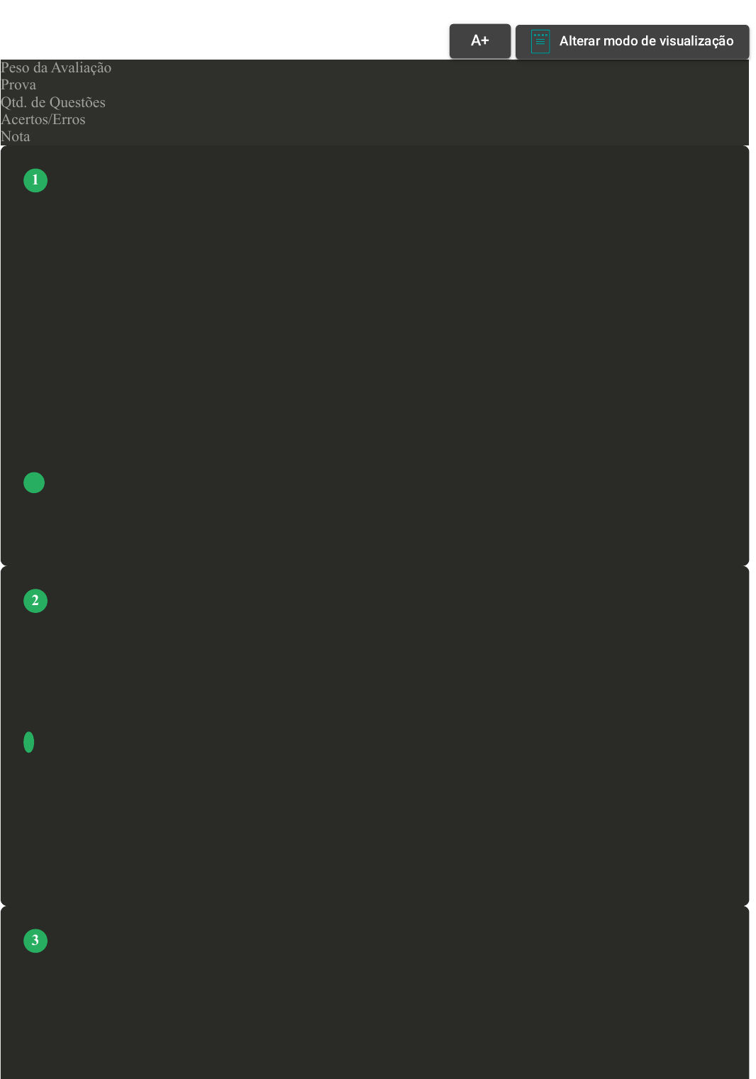 Prova Impressa GABARITO | Avaliação disciplina on-line (Cod.:1522504) Peso da Avaliação 10,00 Prova 103612434 Qtd. de Questões 10 Acertos/Erros 10/0 Nota 10,00 Não somente de ideias vive uma pessoa. As emoções são parte significativa do que é ser humano. E muito do sucesso obtido nos mais diversos âmbitos (pessoal, profissional, estudantil, entre outros) se deve à conseguir lidar com essas emoções. Diante do exposto, classifique V para as sentenças verdadeiras e F para as falsas: ( ) Com treinamento mental constante, é possível dominar completamente as emoções, a partir do momento que surgem até seu desfecho. ( ) Quando somos repentinamente afetados por uma emoção, não conseguimos antever o que pode acontecer, reduzindo assim nosso poderio sobre ela. ( ) O autoconhecimento, a percepção e o entendimento das próprias emoções, ânimos e ponderações são qualidades que definem as pessoas que possuem a intrínseca inteligência emocional. Assinale a alternativa que apresenta a sequência CORRETA: A F - V - F. B V - F - V. C F - V - V. D V - V - F. O desenvolvimento da competência emocional contribui também para melhorar o nosso relacionamento intrapessoal e os relacionamentos interpessoais no contexto do trabalho, da família, escola e demais contextos que convivemos. Nesse sentido, as competências pessoais pressupõem a consciência de si, a autorregulação e a motivação. Sobre a autorregulação, assinale a alternativa CORRETA: A A autorregulação pressupõe que a consciência é imprescindível para a construção do conhecimento, para o saber, e é individual. B A autorregulação é um processo psicológico individual que contribui bastante com o desempenho profissional, já que influencia e agencia as ações. A autorregulação inicia com o policiamento das próprias sensações e afetos, bem como com a análise de ambos. C A autorregulação refere-se ao processo de autoconhecimento, de percepção e de entendimento das próprias emoções, ânimos e ponderações são qualidades que definem as pessoas que possuem a intrínseca inteligência emocional. D A autorregulação se caracteriza pelo interesse e satisfação pela atividade em si, ou seja, o envolvimento é livre e voluntário e não necessita de recompensas ou punições. Na essência, Inteligência Emocional é a autoconsciência de si e a empatia com o outro. Além disso, é importante saber que as emoções são divididas em emoções básicas e emoções que correspondem a essas famílias básicas. Sobre essa diferenciação, associe os itens, utilizando o código a seguir: I- Surpresa. II- Nojo. III- Vergonha. VOLTAR A+ Alterar modo de visualização 1 2 3 ( ) Remorso, humilhação, arrependimento, mortificação e contrição. ( ) Antipatia, aversão, repugnância, repulsa. ( ) Choque, espanto, pasmo, maravilha. Assinale a alternativa que apresenta a sequência CORRETA: A I - II - III. B II - III - I. C III - II - I. D III - I - II. A inteligência emocional vem sendo discutida em inúmeros países, e diversas áreas do conhecimento têm contribuído nos estudos sobre ela. Por isso, ela está se caracterizando como uma temática de interesse multidisciplinar. Sobre as principais áreas que estudam o fenômeno da inteligência emocional, assinale a alternativa CORRETA: A As principais áreas que estudam a temática da inteligência emocional são: Psicologia, Sociologia, Comunicação Social, Administração, Medicina, Biologia e a Educação. B O estudo da inteligência emocional pertence exclusivamente à área da Psicologia. C As principais áreas que estudam a temática da inteligência emocional são: Comunicação Social, Medicina, Biologia e Matemática. D As principais áreas que estudam a temática da inteligência emocional são: Filosofia, Psicologia, Química e Educação. Goleman propõe cinco aptidões que é necessário que as pessoas desenvolvam para ter domínio sobre as emoções e desempenhar sua competência emocional. Diante do exposto, assinale a alternativa CORRETA que apresenta o conceito da aptidão conhecer suas próprias emoções: A É a capacidade de colocar as emoções em prol de uma meta. B É a capacidade de não julgar e de compreender as emoções do outro. C É a capacidade de confortar-se, de livrar das emoções negativas que incapacitam as pessoas frente às situações. D É a capacidade de identificar e controlar os sentimentos no momento em que ocorrem. Existem pessoas que não conseguem se ajustar adequadamente as suas emoções. Com isso, elas passam o tempo todo sendo controladas pelo que sentem. O fato de se entregar às emoções sem tentar tomar as rédeas da situação gera grandes chances de a pessoa acabar em ruínas. Sobre as maneiras de se desenvolver competências pessoais, analise as sentenças a seguir: I- Erros não podem ser aceitos, já que causam um retrocesso no desenvolvimento de competências. II- Faça o máximo possível para consertar as complicações que seus erros causaram. III- Procure ampliar seu campo de visão. IV- Focalize somente nos problemas. Assinale a alternativa CORRETA: A As sentenças I e III estão corretas. 4 5 6 B As sentenças II e IV estão corretas. C As sentenças II e III estão corretas. D As sentenças I e IV estão corretas. Pode-se dizer que a inteligência emocional é muito proveitosa para o crescimento pessoal ou intelectual de uma pessoa. Com o passar do tempo, as pessoas adquirem experiências, vivências que resultam em aprendizados e enriquecimento da inteligência emocional. Diante do exposto, assinale a alternativa CORRETA que apresenta um exercício eficaz para a otimização da inteligência emocional: A A reflexão íntima e interior, mais conhecida como introspecção, contribui para o aumento da ansiedade e do estresse. B A reflexão íntima e interior, mais conhecida como introspecção, ajuda no aperfeiçoamento e na otimização da inteligência emocional. C A reflexão sobre