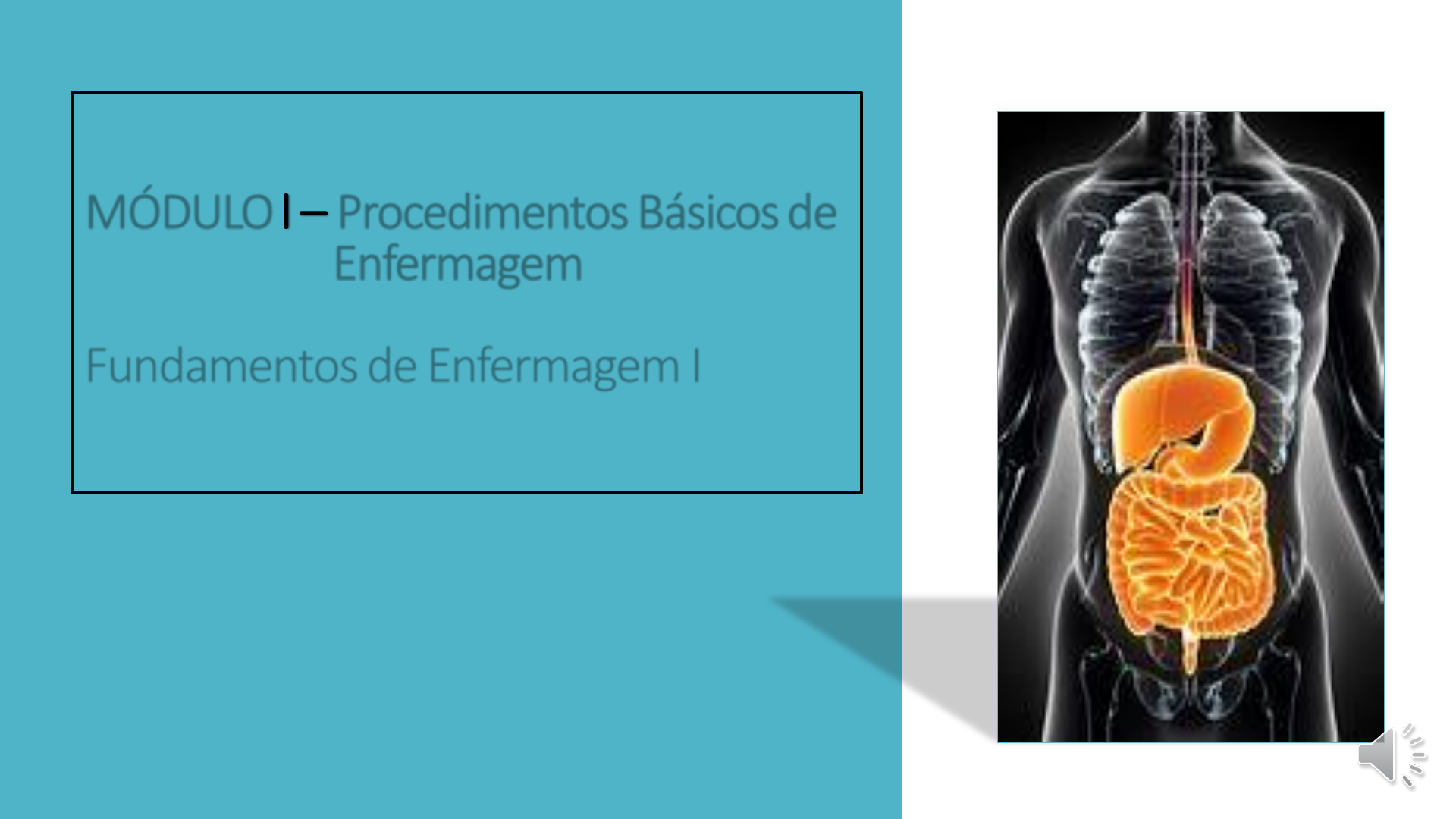 MÓDULO I – Procedimentos Básicos de Enfermagem Fundamentos de Enfermagem I Aula 8 – Sistema Digestório Data: 09/03/2021 Enfermeira docente – Sueli Por Vanusa Azevedo e Lorena Sabbadini Passos a serem seguidos para assistir essa aula • 1º : Assistir a apresentação dos slides até o final. • 2º : Assistir ao vídeo indicado abaixo como complementação da aula: Vídeo: Você sabe como é a feita a digestão? Enfermagem Educacional https://www.youtube.com/watch?v=hKLC16q4IbA • 3º: Realizar anotações dos pontos mais importante em caderno destinado ao Módulo I • 4º: Orientação para a mão na massa https://www.youtube.com/watch?v=hKLC16q4IbA OBJETIVOS DA AULA: Sistema Digestório Apresentar a estrutura do canal alimentar e órgãos anexos Compreender o processo digestório: digestão mecânica e química. Sistema Digestório Finalidade de receber, conduzir e modificar os alimentos de modo que possam ser absorvidos e usados pelo organismo. O Sistema Digestório é dividido em: Canal alimentar: é um tubo oco, muscular que inicia na boca e termina no ânus. (9 metros) Cavidade oral Faringe Esôfago Estômago Intestino delgado Intestino grosso Glândulares Salivares Orgãos anexos: glândulas salivares, o fígado e pâncreas. * Glândulas salivares * Fígado * Pâncreas Canal alimentar e órgãos anexos Função do canal alimentar - conduzir o alimento no seu interior através do movimento denominado PERISTALTISMO . Glândulas salivares Cavidade Intestino delgado Intestino grosso oral Faringe Esôfago duodeno jejuno íleo /ceco/cólon ascendente /transverso/ descendente/ sigmóide/ reto/ânus Estôma go Pâncreas Fígado Vesícula biliar Órgãos do Sistema Digestório CAVIDADE ORAL O alimento é: ✓ provado para determinar seu gosto, temperatura, textura . ✓Inicia a mastigação, os dentes rasgam, amassam e trituram os alimentos. O alimento é reduzido de tamanho, moldado e preparado para deglutição. ✓A saliva é mistura ao alimento. Produzida pelas glândulas salivares É um líquido transparente que umidece o alimento Apresenta uma enzimas que atuam sobre as moléculas de carboidratos (amilase ou ptialina) Língua: é um tecido muscular, que molda o alimento e auxilia a misturar com a saliva. O alimento recebe o nome de bolo alimentar e é conduzido pela língua para a parte posterior da cav. oral realizando a deglutição. DURO PALATO MOLE BOCHECHA Freio lingual Ou Tonsilas Ponta da língua Raiz da língua - parte superior O dorso da língua apresenta aspecto aveludado devido presença das papilas gustativas. 1. Incisivo central 2. Incisivo lateral 3. Canino 4. Primeiro pré molar 5. Segundo pré molar 6. Primeiro molar 7. Segundo molar 8. Terceiro molar FARINGE: órgão muscular que conduz o bolo alimentar ao esôfago ESÔFAGO: órgão muscular (25 cm), que transporta o bolo alimentar para o estômago. Esta localizado na parte medial do tórax. Atravessa o diafragma e termina na parte superior do estômago, na válvula cárdia. A deglutição é automática e o bolo alimentar é impulsionado pelo movimento peristáltico. ESTÔMAGO: é um órgão dilatado do sistema digestório, tem um formato de “J” e está localizado logo abaixo do diafragma e na parte superior do abdome. Produz o suco gástrico que mistura ao bolo alimentar e que agora recebe o nome de quimo. ÁGUA, PEPSINA e o ÁCIDO CLORÍDRICO ATUA SOBRE PROTEINAS MANTÉM O PH DO ESTÔMAGO Válvula cárdia INTESTINO DELGADO: •Porção mais longa do sistema digestório (6m) •Dividido em: ✓Duodeno: Ação do suco pancreático: Produzido no pâncreas, rico em bicarbonato, neutraliza a acidez do quimo Ação da bile: Produzida no fígado e armazenada na bile, atua emulsificando as moléculas de lipídeos. O intestino delgado produz também enzimas que atuam sobre os aminoácidos. ✓Jejuno e íleo, devido as vilosidades na parede, ocorre a absorção de nutrientes. Fígado Vesícula biliar Pâncreas Estômago INTESTINO GROSSO: 1,5m Responsável pela absorção de água e formação da massa fecal divide-se em: Ceco: observa-se uma projeção chamada de apêndice vermiforme Cólon: Cólon ascendente Cólon transverso Cólon descendente Sigmóide Reto: termina em um estreito canal – chamado de canal anal –, o qual se abre para o exterior no ânus, por onde as fezes são eliminadas. Intestino delgadoIntestino delgado Canal alimentar e órgãos anexos Função do canal alimentar - conduzir o alimento no seu interior através do movimento denominado PERISTALTISMO . Glândulas salivares Cavidade Intestino delgado Intestino grosso oral Faringe Esôfago duodeno jejuno íleo /ceco/cólon ascendente /transverso/ descendente/ sigmóide/ reto/ânus Estôma go Pâncreas Fígado Vesícula biliar Processo digestório Glândulas salivares: Fígado: Segundo maior órgão do corpo humano, perdendo apenas para a pele. Coloração marrom avermelhada. Localiza na cavidade abdominal na região do hipocôndrio direto e epigástrica, logo abaixo do diafragma, lateralmente ao estômago, acima do pâncreas e anteriormente à vesícula biliar. Altamente vascularizada. Colédoco: é um ducto que conduz a bile da vesícula biliar até o duodeno Localização: Gl. Parótida: o maior par de glândulas salivares, ficam logo atrás do ângulo mandibular, abaixo e à frente dos ouvidos. Gl sub lingual: abaixo da língua Gl sub mandibular: abaixo da mandíbula Pâncreas: Órgão alongado +/- 15 cm, posicionado de forma horizontal, na parte superior da cavidade abdominal, situado atrás do estômago. Glândula mista, possui funções: 1. EXÓCRINA: produz o suco pancreático – atua na digestão, substância a base do bicarbonato, que neutraliza a acidez do quimo. 2. ENDÓCRINA: é responsável pela produção dos hormônios insulina e glucagon. https://brasilescola.uol.com.br/biologia/insulina-glucagon.htm Digestão ▪É a quebra dos componentes dos alimentos em moléculas menores, passíveis de absorção e posterior utiliz