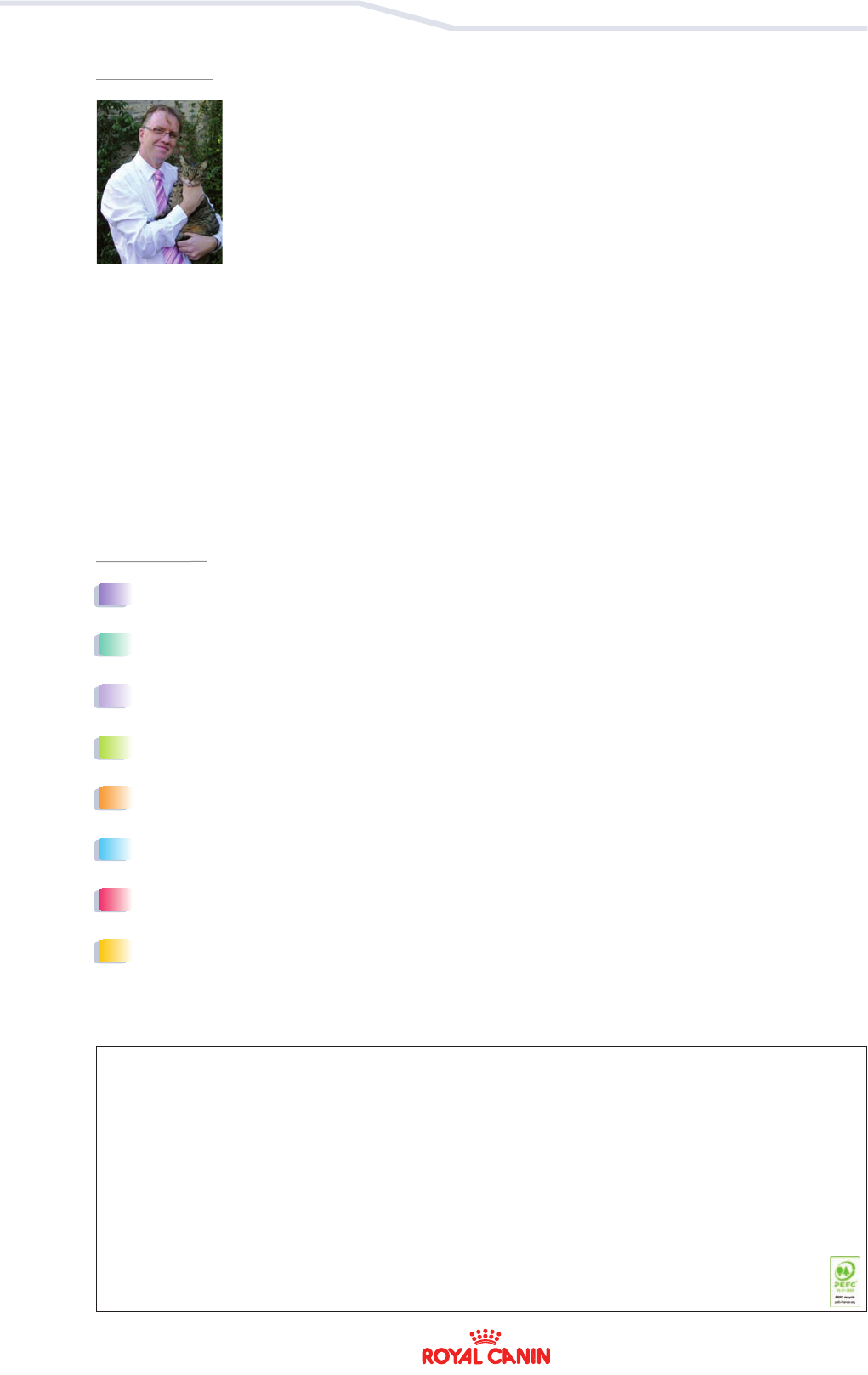 Nutritional considerations for optimal puppy growth . . . . . . . . . . . . . . . . . . . . . . . . . . . . . . . . . . . . . . . . . . . . . . . . . . p. 02 Denise Elliott Parasite control . . . . . . . . . . . . . . . . . . . . . . . . . . . . . . . . . . . . . . . . . . . . . . . . . . . . . . . . . . . . . . . . . . . . . . . . . . . . . . . . . . . . . . . . . . . . . . . . . . . . . . . . . . . . p. 09 Jay Stewart How I approach... Geriatric clinics in practice . . . . . . . . . . . . . . . . . . . . . . . . . . . . . . . . . . . . . . . . . . . . . . . . . . . . . . . . . . . . . p. 15 Mike Davies Better compliance in preventative medicine . . . . . . . . . . . . . . . . . . . . . . . . . . . . . . . . . . . . . . . . . . . . . . . . . . . . . . . . . . . . . . . . . p. 23 Philippe Baralon Vaccination regimes for dogs and cats . . . . . . . . . . . . . . . . . . . . . . . . . . . . . . . . . . . . . . . . . . . . . . . . . . . . . . . . . . . . . . . . . . . . . . . . . p. 29 Jane Sykes Clinical epidemiology - vaccination perspectives . . . . . . . . . . . . . . . . . . . . . . . . . . . . . . . . . . . . . . . . . . . . . . . . . . . . . . . . . . p. 36 Elizabeth Lund Weight control and obesity in companion animals . . . . . . . . . . . . . . . . . . . . . . . . . . . . . . . . . . . . . . . . . . . . . . . . . . . . . . . p. 38 Alexander German Cut-out and keep... Dental plaque control . . . . . . . . . . . . . . . . . . . . . . . . . . . . . . . . . . . . . . . . . . . . . . . . . . . . . . . . . . . . . . . . . . . . p. 47 Jan Bellows The concept of preventative medicine can sometimes be viewed - at least by the uninitiated - as the poor relation amongst healthcare professions: mainstream specialities such as cardiology, neurology and ophthalmology, with their endless pathologies, multiple presentations and com- plex diagnostic instruments, coupled with the thrill of curing a patient, may be considered to have a much more immediate appeal. And it is undeniable that for many centuries both human and animal physicians were preoccupied with reacting to ailments and attempting to subdue them; they had little time to consider how they might get ahead of the game, but gradually the clearest thinkers, those who had the ability to look beyond the immediate disease problem, star- ted to consider how prophylaxis could be better than cure. This eventually led to preventative medicine becoming a science - and indeed a speciality - in its own right, so that now the discipline brings immense and far-reaching benefits both to the individual and the wider community. There are of course many strands to preventative medicine – factors such as diet, vaccination and daily lifestyle all play a part - but knowledge is only one part; delivery, through successful implementation, is the other half of the equation. And as with most things, there are no simple answers or universal solutions; one size does not fit all, whether that is because of geographic, demographic, genetic or individual variations. Anticipation, adaptability and background information are all essential, along with the ability to communicate clearly and offer convincing and constructive advice to owners, for preventative medicine to achieve its ultimate goal. And so the clinician may find that this issue of Veterinary Focus is slightly different from the typical format, but the end result should be the same - better knowledge for the veterinarian and better health for our patients. Ewan McNeill Editor-in-Chief EDITORIAL CONTENTS Veterinary Focus - Vol 22 n°2 - 2012 Find the most recent issues of Veterinary Focus on IVIS website: www.ivis.org, the App. Store (iPad) and Android market. Editorial committee • Franziska Conrad, DVM, Scientific Communications, Royal Canin, Germany • Pauline Devlin, BSc, PhD, Scientific Communications and External Affairs, Royal Canin, UK • Laura Diana, DVM, Dipl. FCV, UBA, Scientific Communications, Royal Canin, Argentina • María Elena Fernández, DVM, Scientific Communications, Royal Canin, Spain • Giulio Giannotti, BSc, Product Manager, Royal Canin, Italy • Hervé Marc, Global Corporate Affairs Manager, Royal Canin, France • Philippe Marniquet, DVM, Dipl. ESSEC, Veterinary Communication Manager, Royal Canin, France • Yann Quéau, DVM, Dipl. ACVN, Research Nutritionist, Royal Canin France Translation control • Imke Engelke, DVM (German) • Noemi Del Castillo, PhD (Spanish) • Giulio Giannotti, BSc (Italian) • Prof. Robert Moraillon, DVM (French) • Matthias Ma, DVM (Chinese) • Atsushi Yamamoto, DVM (Japanese) • Boris Shulyak, PhD (Russian) Deputy publisher: Buena Media Plus CEO: Bernardo Gallitelli Address: 85, avenue Pierre Grenier 92100 Boulogne - France Phone: +33 (0) 1 72 44 62 00 Editor • Ewan McNeill, BVMS, Cert VR, MRCVS Editorial secretaries • Laurent Cathalan lcathalan@buena-media.fr • Olivia Amos Artwork • Youri Xerri Printed in the European Union ISSN 1354-0157 Circulation: 80,000 copies Legal deposit: June 2012 Veterinary Focus is also published in French, German, Chinese, Italian, Polish, Spanish, Japanese & Russian. The licensing arrangements for thera- peutic agents intended for use in small animal species vary greatly worldwide. In the absence of a specific license, con- sideration should be given to issuing an appropriate cautionary warning prior to administration of any such drug. 2 / Veterinary Focus / Vol 22 No 2 / 2012 Introduction Dogs are a unique species in the animal kingdom, not least because of their hugely variable body- weight, from the Chihuahua weighingand serology tests by themselves may not be very valuable (4). Conducting a geriatric screening program is ex- tremely rewarding as new medical problems can be expected to be found in up to 80% of cases exam- ined (3,8), and even in the animals where no new condition is discovered there are always issues to discuss with the owner, such as correcting poor lifestyle factors, including inapp