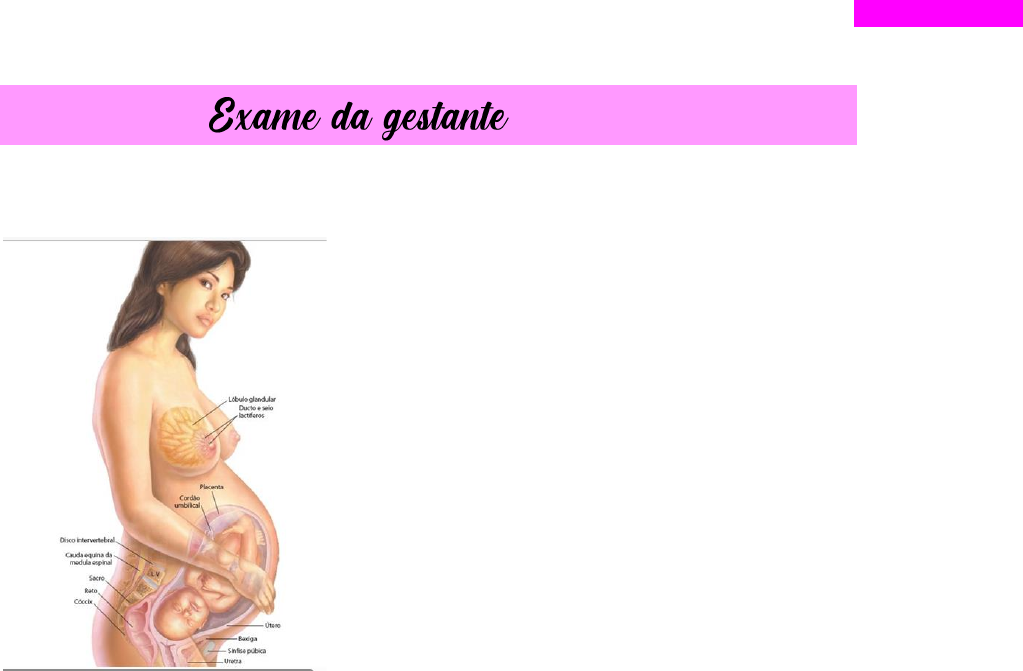 Layslla Amaral, 4° semestre 1 As consultas pré-natais representam uma oportunidade de envolver a gestante adulta nos cuidados médicos de rotina e otimizar os desfechos obstétricos para a mãe e o feto. Em geral, a consulta pré-natal deve revisar os sintomas que preocupem a gestante, avaliar o bem-estar materno e fetal e fornecer orientação antecipatória para as próximas semanas gestacionais antes da consulta seguinte. Embora muitas gestantes compareçam à consulta com um parente ou o parceiro, o examinador também deve se lembrar de entrevistar a paciente com privacidade, porque alguns componentes da anamnese e do rastreamento de saúde podem ser desconhecidos para outras pessoas que estejam presentes na sala para dar apoio à paciente. Esse é particularmente o caso com a história obstétrica pregressa, atitudes em relação à gravidez, uso de substâncias psicoativas, infecções sexualmente transmissíveis e violência doméstica. Durante a consulta inicial, a anamnese é coletada enquanto a paciente ainda está vestida. O pré-natal tem como objetivo garantir o progredir fisiológico da gestação, diminuindo os riscos e a ocorrência de complicações durante esse período e no momento do parto. As consultas têm o intuito de promover a saúde da gestante e da criança e ao mesmo tempo fornecer assistência psicossocial, atividades educativas e preventivas às mulheres que precisarem. A unidade básica de saúde (UBS) deve ser a porta de entrada da gestante no sistema de saúde, garantindo o acompanhamento continuado e longitudinal da mesma durante toda a gravidez. Para que isso seja possível, é necessária a realização do cadastro na unidade de saúde e preenchimento do Cartão da Gestante, preferencialmente no 1º trimestre da gravidez, para que intervenções oportunas possam ser tomadas desde o início do período gestacional, sejam elas preventivas ou terapêuticas. Também é garantido o atendimento da totalidade das puérperas e recém- nascidos cadastrados. As consultas de pré-natal abrangem a anamnese obstétrica, o exame físico ginecológico, a solicitação de exames complementares indicados, os Layslla Amaral, 4° semestre 2 cuidados com a imunização e a oferta de medicamentos necessários (como sulfato ferroso e ácido fólico), além da avaliação do estado nutricional. O programa de Pré-natal deve contar com uma equipe multiprofissional, composta por, no mínimo, um médico ginecologista/obstreta, um enfermeiro e um cirurgião-dentista (pré-natal na gestação de baixo risco), sendo devidamente encaminhada, quando necessário para outras especialidades. • Diagnóstico de gravidez: • Teste rápido de gravidez: pode ser feito na própria UBS, para confirmar o diagnóstico rápido de gravidez, acelerando o processo para confirmação da gravidez e início do pré-natal. • Beta-HCG: é utilizado como diagnóstico confirmatório e precoce da gravidez. Esse hormônio pode ser detectado no sangue periférico cerca de uma semana após a concepção, a partir disso, sua concentração sérica aumenta, atingindo o pico entre 60 a 90 dias durante a gestação. • USG: pode ser solicitado para o diagnóstico de certeza da gravidez, como também, dentre outros vários fatores, para a determinação da idade gestacional embrionária e/ou fetal, o que é de suma importância já que muitas vezes a data da última menstruação (DUM) é relatada incorretamente, impossibilitando o cálculo real da data provável do parto (DPP) e da Idade gestacional (IG). Sinais de presunção da gravidez: • Atraso menstrual; • Manifestações clínicas: náuseas, vômitos matutinos, tonturas, salivação excessiva, mudança de apetite, polaciúria, fadiga e sonolência; • Modificações anatômicas: aumento do volume mamário e da sua hipersensibilidade, com a saída do colostro e o aparecimento dos tubérculos de Montgomery; coloração violácea vulvar, cianose vaginal e cervical, além do aumento do volume abdominal. Layslla Amaral, 4° semestre 3 Sinais de probabilidade da gravidez: • Amolecimento da cérvice uterina e posterior aumento de volume; • Aumento das paredes vaginais e de sua vascularização; • ß-HCG positivo no soro materno a partir do 8º ou 9º dia após a fertilização. Sinais de certeza da gravidez: • Batimentos cardíacos fetais (BCF) presentes, detectados pelo Sonar doppler a partir de 12 semanas e pelo Pinard a partir de 20 semanas de gestação; • Movimentos fetais ativos (MFA) a partir da 18ª ou 20ª semanas; • Ultrassonografia. Após a confirmação da gravidez, a gestante é cadastrada no SisPRENATAL e dará início ao seu pré-natal. ➢ Cálculo da idade gestacional: - Quando a DUM é conhecida: Some o número de dias do intervalo entre a data da consulta e a DUM, e divide o resultado por 7. Exemplo: Data da consulta: 14/02/2020, DUM: 01/11/2019 106/7= 15 semanas e 1 dia - Quando não se sabe o dia certo da DUM, mas recorda o período menstrual: Se foi no início do mês, considera a DUM como dia 5, se foi no meio do mês considera a DUM como dia 15 e se foi no final do mês considera a DUM como dia 25. - Quando não sabe a DUM e o período menstrual: Analisa pela medida da altura uterina e movimentos fetais (que iniciam a partir de 18 semanas) ➢ Cálculo da data provável do parto: - Regra de Nagele: Soma 7 dias ao primeiro dia da DUM e subtrai 3 meses ao mês da DUM. Exemplos: DUM: 13/08/2010 DIA: 13+7=20 MÊS: 08-3= 5 ANO: 2011 DPP: 20/05/2011 DUM: 10/03/2009 DIA: 10+7=17 MÊS: 03+9=12 DPP: 17/12/2009 Layslla Amaral, 4° semestre 4 DUM: 28/01/2012 DIA: 28+7=35 (tira 4 dias) MÊS: 02+09=11 DPP: 04/11/2012 Primeira consulta • Número mínimo de consultas: 6 (médico e enfermagem). • Idade “ideal” para gestação: 18 – 34 anos. 52 ►Na primeira consulta da gestante deverão ser fornecidos: • O Cartão da Gestante, com a identificação preenchida, o número do Cartão Nacional da Saúde, o hospital de refe