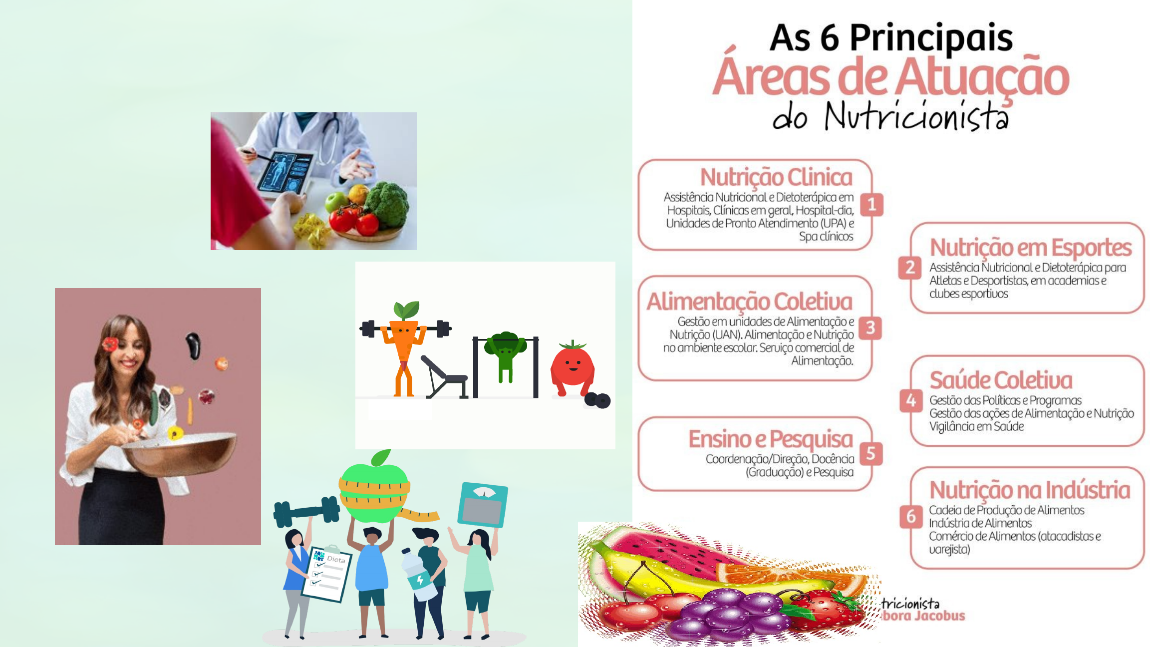 ÁREAS DE ATUAÇÃO DO NUTRICIONISTA 1 Introdução à Resolução 600/2018 Definição Áreas de atuação profissional regulamentadas. Competências Responsabilidades definidas para cada área. Ética Garantia do exercício técnico e legal. 2 Visão Geral das Áreas Saúde Coletiva Alimentação e Nutrição Coletiva Nutrição Clínica Nutrição Esportiva Nutrição em Saúde Pública Indústria de Alimentos Ensino e Pesquisa Gestão em Alimentação e Nutrição 3 Saúde Coletiva Promoção e prevenção Foco em saúde ampla da população. Programas importantes Alimentação escolar Saúde do trabalhador Vigilância alimentar Trabalho em equipe Colaboração multiprofissional para maior eficácia. 4 Alimentação e Nutrição Coletiva Planejamento e avaliação Sistemas de alimentação para grupos diversos. Áreas de aplicação Alimentação escolar Comunidades Saúde coletiva Gestão Unidades de alimentação e nutrição eficientes. 5 Nutrição Clínica Atendimento individual Hospitais, clínicas, unidades básicas. Avaliação nutricional Diagnóstico do estado nutricional. Dietoterapia Prescrição e acompanhamento de dietas. 6 Nutrição Esportiva Planejamento nutricional Focado no desempenho atlético. Recuperação e prevenção Suporte para lesões e melhor recuperação. Avaliação energética Controle do gasto energético e suplementação. 7 Nutrição em Saúde Pública Políticas públicas Programas governamentais contra doenças. Combate a doenças Desnutrição, obesidade, doenças crônicas. Educação alimentar Instrução nutricional nas comunidades. 8 Indústria de Alimentos Desenvolvimento Inovação e criação de produtos alimentícios. Controle de qualidade Segurança e valor nutricional garantidos. Rotulagem Informação clara e precisa para consumidores. 9 Ensino e Pesquisa Formação Preparação de novos nutricionistas. Pesquisa Inovação científica em nutrição. Disseminação Divulgação do conhecimento técnico. 10 image1.png image2.png image3.gif image4.gif image5.jpeg image6.png image7.jpg image8.gif image9.png image10.png image11.png image12.png image13.png image14.png image15.png image16.png image17.png image18.png image19.png