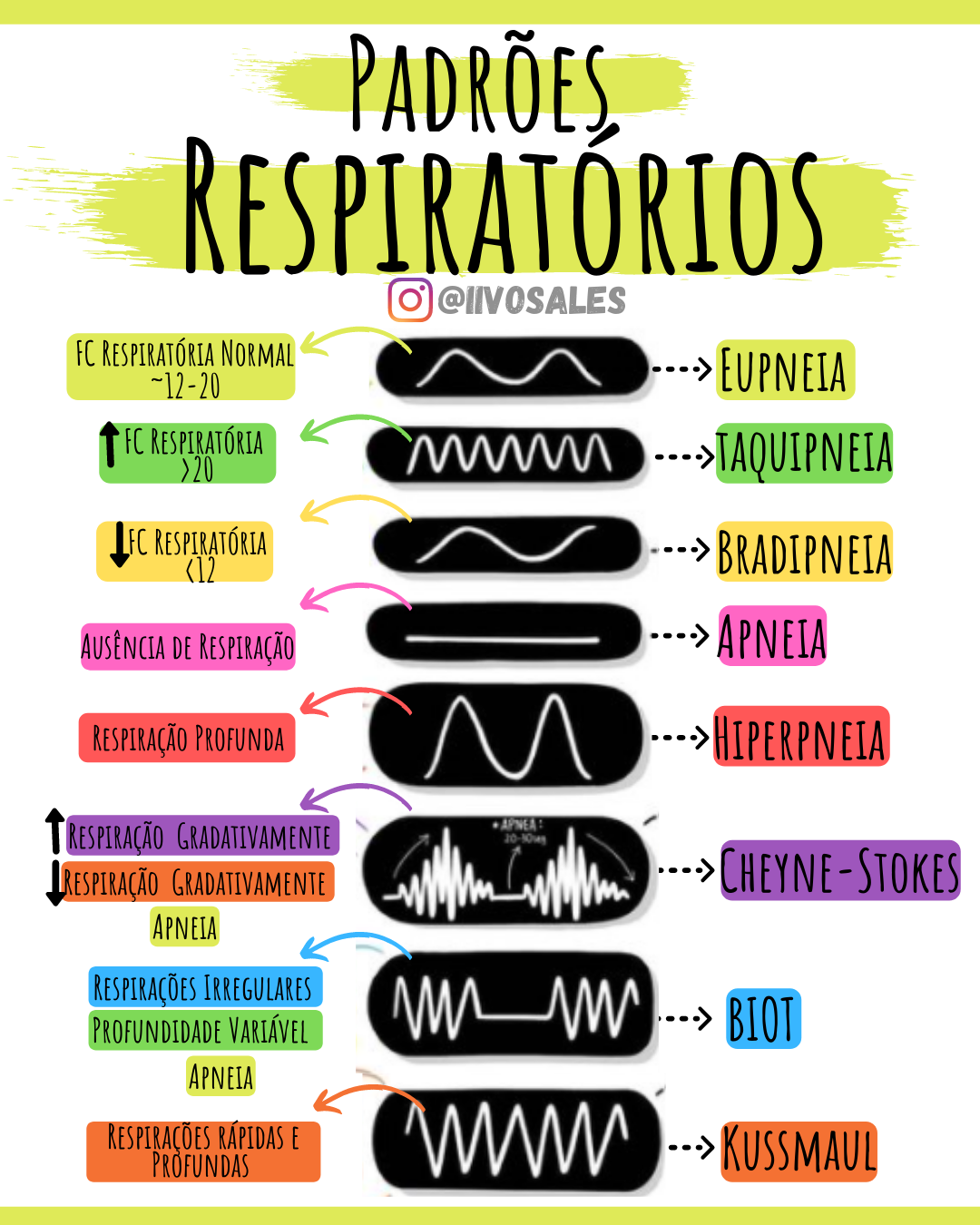 RESPIRATÓRIOS @IIVOSALES FC RESPIRATÓRIA NORMAL EUPNEIA FC RESPIRATÓRIA >20 TAQUIPNEIA FC RESPIRATÓRIA