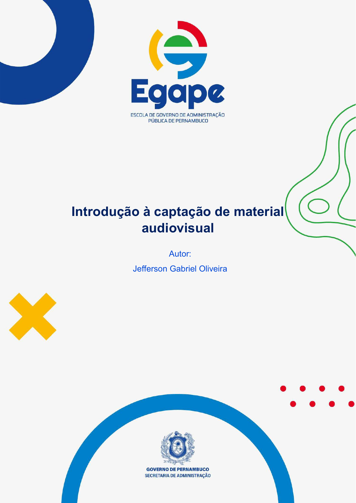 1 Introdução à captação de material audiovisual Autor: Jefferson Gabriel Oliveira O48i Oliveira, Jefferson Gabriel Introdução à captação de material audiovisual / Jefferson Gabriel Oliveira. – Recife : Escola de Governo de Administração Pública de Pernambuco, 2024. 69p. : il. Inclui referências. Inclui currículo do autor. Material produzido pela Escola de Governo de Administração Pública de Pernambuco – EGAPE. 1. MATERIAL AUDIOVISUAL – ESTUDO E ENSINO. 2. EQUIPA- MENTO AUDIOVISUAL – ESTUDO E ENSINO. I. Título. CDU 371.68 CDD 371.335 PeR – BPE 24-116 Material produzido pela Escola de Governo de Administração Pública de Pernambuco – EGAPE Outubro, 2024 (1. ed.) Governadora de Pernambuco Raquel Teixeira Lyra Lucena Vice-governadora de Pernambuco Priscila Krause Branco SECRETARIA DE ADMINISTRAÇÃO Secretária Ana Maraíza Sousa Silva Secretária Executiva de Gestão de Pessoas Luciana Oliveira Pires Núcleo de Educação a Distância - NUEAD Deisiane Gomes Bazante Núcleo de Educação Presencial - NUEDP Maria Elisete Oliveira Autor Jefferson Gabriel Oliveira Revisão de Língua Portuguesa Alécia Guimarães Diagramação Deisiane Gomes Bazante Normalização e catalogação Hugo Carlos Cavalcanti | CRB4 - 2129 EXPEDIENTE SECRETARIA DE EDUCAÇÃO E ESPORTES Secretário Alexandre Alves Schneider EGAPE Diretor Henrique César Freire de Oliveira Gerência de Educação Profissional da Escola de Governo Marilene Cordeiro Barbosa Borges SUMÁRIO INTRODUÇÃO......................................................................................................................................................... 5 1. DOS EQUIPAMENTOS......................................................................................................................................... 6 2. DO SET ............................................................................................................................................................. 40 3. DA CONFIGURAÇÃO DA CÂMERA E MICROFONE ............................................................................................. 43 4. DA GRAVAÇÃO................................................................................................................................................. 56 REFERÊNCIAS ....................................................................................................................................................... 68 SOBRE O AUTOR .................................................................................................................................................. 70 5 INTRODUÇÃO Olá, cursista! A apostila do curso Introdução à Captação de Material Audiovisual, como o próprio nome torna evidente, tem como função inserir o servidor no universo do audiovisual de maneira introdutória nas mais diversas nuances da área, sendo capaz de, após absorção do conteúdo, realizar a identificação, organização e divisão de tarefas de um set de filmagempara as videoaulas, entrevistas, videocasts, dentre outros formatos amplamente utilizados no serviço público administrativo. O aprendizado começa com o estudo dos equipamentos, como câmeras, lentes, formatos de arquivos e análise das configurações, passando por microfones, conjuntos de iluminação até alcançar aspectos demise en scène e técnicas de pré-edição do material. É importante ressaltar, que o conteúdo ainda é passível de aprofundamento em diversos sentidos, sendo essencial a prática constante do aluno e o contato com os equipamentos e seus conceitos para a fixação e evolução. Desse modo, o usuário estará apto a acompanhar as tendências da área, desde atualização de equipamentos a mudanças de formato na exibição dos conteúdos. 6 1. DOS EQUIPAMENTOS A ferramenta base para a captação de material audiovisual é a câmera. Por muito tempo, ela foi algo de caráter quase inacessível para a maioria das pessoas, seja pela complexidade, seja pelo preço. Todavia, atualmente é possível encontrar modelos de câmera acessíveis que já entregam um ótimo desempenho. Por exemplo, uma câmera T3i, modelo básico de DSLR da empresa Canon e, até mesmo considerada ultrapassada, pode ser encontrada por valores de R$ 1.500,00. Com um kit e configuração de set adequados, ela já pode entregar filmagens básicas totalmente funcionais para apresentações, gravação de vídeos e registros fotográficos. Começando, então, do começo: O que seria DSLR? A sigla em inglês significa Digital Single Lens Reflex (Reflexo de Lente Única Digital em tradução livre) e se refere à conversão da imagem da lente para a tela do aparelho através do uso de espelhos. Tais modelos, mesmo os que já datam de algumas décadas atrás, possuem um menu que oferece configurações de imagem que, nas mãos adequadas, ampliam drasticamente as possibilidades de uso de acordo com o ambiente, iluminação, horário, dentre outras condições. 1.1. Do triângulo da exposição E quais seriam essas configurações? Seus nomes são ISO, velocidade do obturador e abertura da lente. Elas são conhecidas como o "exposure triangle" (triângulo da exposição), já que as três se relacionam fortemente umas com as outras para regular a exposição adequada da imagem. Também veremos um pouco a respeito de foco, que é o que define o que vai ser o assunto da imagem. Existem outras, claro, envolvendo fotometria, balanço de branco, zoom e outras características, mas foquemos nas 4 primeirasmencionadas anteriormente. Abaixo, vamos iniciar uma introdução sobre o papel de cada uma delas. I. ISO 7 O ISO na câmera não tem nada a ver com o formato “.iso” que alguns podem já ter se deparado nos computadores. Na fotografia e vídeo, ISO se refere à sensibilidade do sensor da câmera. A partir dele, você pode utilizar tentar extrair diferentes interpretações (e condições) do espaço a ser registrado pela amplifica