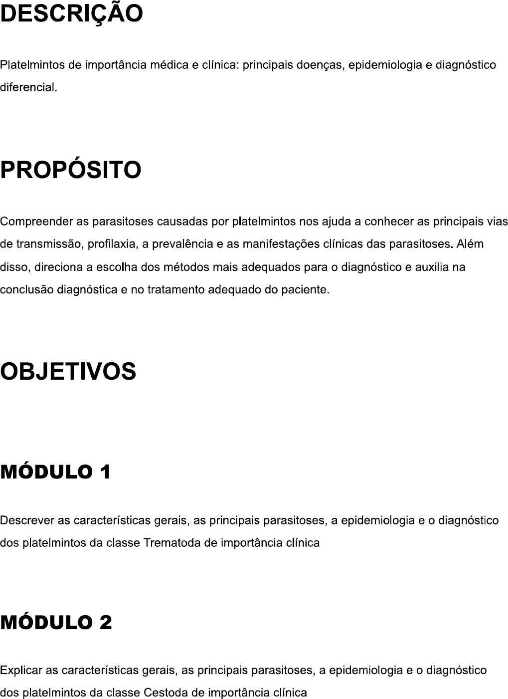 DESCRIÇÃO Platelmintos de importância médica e clínica: principais doenças, epidemiologia e diagnóstico diferencial. PROPÓSITO Compreender as parasitoses causadas por platelmintos nos ajuda a conhecer as principais vias de transmissão, profilaxia, a prevalência e as manifestações clínicas das parasitoses. Além disso, direciona a escolha dos métodos mais adequados para diagnóstico e auxilia na conclusão diagnóstica e no tratamento adequado do paciente. OBJETIVOS MÓDULO 1 Descrever as características gerais, as principais parasitoses, a epidemiologia e o diagnóstico dos platelmintos da classe Trematoda de importância clínica MÓDULO 2 Explicar as características gerais, as principais parasitoses, a epidemiologia e o diagnóstico dos platelmintos da classe Cestoda de importância clínicaINTRODUÇÃO Os platelmintos são organismos extremamente interessantes do ponto de vista evolutivo e biológico. Quando analisamos o desenvolvimento dos animais, percebemos que as adaptações e modificações que vão surgindo ao longo da linha evolutiva possuem uma mudança que servirá para a formação de novas espécies, desenvolvimento de novas características ou até a tão sonhada conquista do ambiente terrestre. Eles são animais invertebrados, podendo ou não serem parasitas. Os platelmintos de vida livre sempre trouxeram muito interesse de estudo pelos cientistas, como as planárias, por exemplo. Esses vermes possuem uma alta capacidade de fragmentação, despertando a curiosidade para estudo de células-tronco e de regeneração tecidual. Além disso, são destaque nos estudos de divisão celular (mitótica), na análise de sua simetria bilateral, isto é, possuem seu lado esquerdo e direito iguais, seu desenvolvimento de sistema nervoso ganglionar e seus famosos ocelos sensitivos (localizadas na cabeça do platelminto, são estruturas sensoriais de percepção do ambiente). Ao analisarmos as características dessas pequenas criaturas, conseguimos perceber quão magnífico é começo da formação de sistemas sensitivos mais desenvolvidos, as formas de reprodução diferenciadas e a capacidade dos turbelários (platelmintos de vida livre) de ocuparem um importante espaço na complexa teia alimentar de habitats aquáticos. Alguns são chamativos e coloridos, nos fazendo duvidar de que tipo de animal estamos realmente observando (Figura 1).Figura 1: Platelminto da classe Turbellaria. Entretanto, muitos animais pertencentes a esse grupo são parasitas e já atormentam seres humanos há muito tempo, por se tratar de doenças de fácil dispersão, principalmente, quando associadas a situações precárias de saúde pública. Frequentemente, registra-se a prevalência de doenças causadas por esses vermes de importância clínica em locais onde o saneamento básico é inadequado ou ausente, falta de higiene e baixa educação em saúde. Dentro desse contexto, torna-se de grande valia estudo dos platelmintos endoparasitas causadores de doenças, com destaque para os parasitas pertencentes das classes Trematoda e Cestoda. PREVALÊNCIA Número total de casos existentes em uma determinada população em um determinado momento temporal. MÓDULO 1 Descrever as características gerais, as principais parasitoses, a epidemiologia e diagnóstico dos platelmintos da classe Trematoda de importância clínicaCLASSE TREMATODA Os vermes achatados, parasitos, são denominados de Neodermatas, táxon que reúne três classes: TÁXON É a unidade taxonómica, essencialmente associada a um sistema de classificação científica. Trematoda Monogea Cestoda ATENÇÃO Neodermatos significa "nova pele", isto é, ao contrário dos Turbellaria, eles possuem uma nova cobertura epidérmica na sua fase adulta. O aparecimento dessa característica garantiu aos parasitas uma melhor seleção das substâncias que entram e saem do seu corpo, e possibilitou uma maior resistência frente a enzimas digestivas presentes no trato gastrointestinal dos seus hospedeiros ou das substâncias liberadas pelo hospedeiro para a destruição de patógenos. Na classe Trematoda, existe um número grande de microrganismos. Dentre eles, há cerca de 18-24 mil espécies, podendo ser endoparasitas (parasitas internos) ou ectoparasitas (parasitas externos). Por esses vermes apresentarem aparelhos bucais adesivos, são altamente especializados na fixação ao corpo do seu hospedeiro, sendo endoparasitas extremamente bem-sucedidos. Sua respiração e troca gasosa é cutânea, por conta disso, sua epiderme permite a troca de gases ao mesmo tempo em que é protegida pelo tegumento sincicial (células com comunicação entre os citoplasmas), permitindo a proteção contra enzimas digestivas presentes no trato gastrointestinal do hospedeiro (Figura 2).Ventosa oral Anel nervoso Faringe Aparato genital masculino Poro genital Ducto ejaculatório Aparato genital feminino Cirro Glândula prostática Vesícula seminal útero Ovário Ootipo Tronco nervoso Canal deferente Ventosa abdominal Testículos anterior Ducto vitelino lateral e longitudinal Intestino Glândula vitelínica Testículos posterior Figura 2: Estrutura interna da Fasciola hepatica. Duas grandes doenças causadas por representantes dessa classe ganham destaque: Esquistossomose: Acomete cerca de 200 milhões de pessoas em todo mundo, atingindo 74 países. Fasciolíase: Atinge 17 milhões de pessoas no mundo e acomete 51 países. Brasil é um país que apresenta alta representatividade de ambas as doenças por se tratar de um país em desenvolvimento, onde ainda é frequente a transmissão de doenças associadas ao saneamento básico precário, à educação em saúde limitada e à higiene básica questionável. Vamos juntos explorar essas duas parasitoses? SCHISTOSOMA SP E ESQUISTOSSOMOSE gênero Schistosoma é composto por aproximadamente 7 espécies já registradas, dentre elas as que atingem Brasil são Schistosoma mansoni (S. mansoni) e Schistosoma sciammarella. Acredita-se 