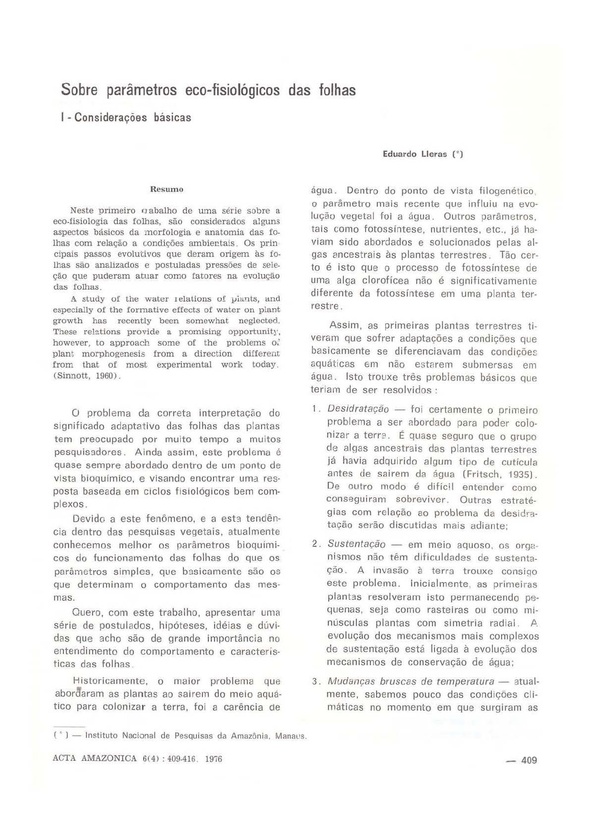 ACTA AMAZONICA 6(4) : 409-416 1976