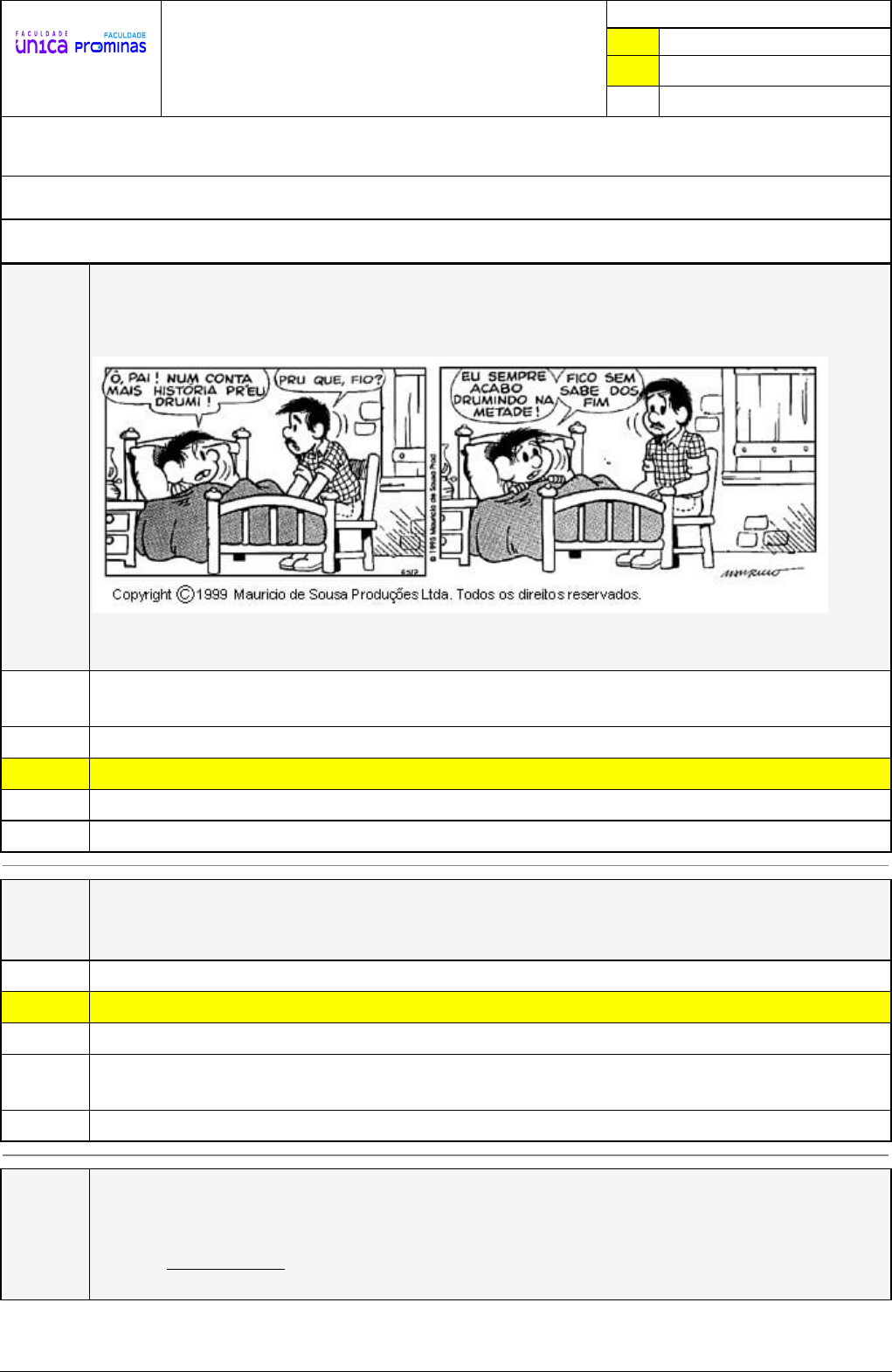 Pincel Atômico - 21/08/2024 09:16:06 1/3 ANA CLÁUDIA MORAIS SOUZA Exercício Caminho do Conhecimento - Etapa 2 (15705) Atividade finalizada em 13/08/2024 15:20:53 (2405503 / 1) LEGENDA Resposta correta na questão # Resposta correta - Questão Anulada X Resposta selecionada pelo Aluno Disciplina: PRÁTICA PEDAGÓGICA INTERDISCIPLINAR: FUNDAMENTOS E METODOLOGIA DE ENSINO DE LÍNGUA PORTUGUESA E MATEMÁTICA [1134885] - Avaliação com 8 questões, com o peso total de 1,67 pontos [capítulos - 1] Turma: Segunda Graduação: Segunda Graduação 6 meses - Licenciatura em Pedagogia - Grupo: FPD-JUN/2024 - SGegu0A030624 [126699] Aluno(a): 91623155 - ANA CLÁUDIA MORAIS SOUZA - Respondeu 8 questões corretas, obtendo um total de 1,67 pontos como nota [353936_391 85] Questão 001 Vivemos em um país onde a diversidade linguística se faz presente, pois o Brasil abriga várias regiões e com variação no dialeto português; na verdade há uma riqueza cultural e linguística que se faz interagir com tudo e com todos. A linguagem utilizada na tirinha apresenta o dialeto caipira, como em “drumi” “fio”. Do ponto de vista linguístico essa fala é considerada errada e não é aceita. sofre uma variação linguística por conta de diferenças de classe social. X sofre uma variação linguística por conta de diferenças de lugar. sofre uma variação linguística por conta de diferenças históricas. é formal, pois pai e filho apresentam certa intimidade. [353938_391 30] Questão 002 A linguística refere à diversidade como um respeito às todas as línguas existentes e promove a preservação daquelas que se encontram em vias de extinção por falta de falantes. Marque a alternativa que se refere à diversidade Linguísticas. variação linguística geográfica. X Todas as alternativas estão corretas. variação linguística social/cultural. A diversidade linguística é uma realidade, por isso precisamos discutir sobre o respeito, a aceitação e a comunicação entre elas. variação linguística histórica [353936_391 86] Questão 003 Brasil, um país colonizado e que ao longo desse processo de colonização não respeitou a identidade dos nativos, sua cultura, sua etnia e por fim sua língua. É um desafio para o Brasil toda essa diversidade; os linguistas brasileiros vêm lutando para evitar a “Diglossia”. Marque a alternativa que melhor explica a palavra que está grifada. Pincel Atômico - 21/08/2024 09:16:06 2/3 Durante o período colonial, não era frequente que a língua do país fosse utilizada com objetivos institucionais, como o ensino, a escrita, a legislação e a religião, enquanto que as línguas autóctones eram mantidas dentro dos grupos familiares mantidas vivas e em circuitos informais.” Diglossia é o termo usado para diferenciar as pessoas que falam uma língua estrangeira. X Situação linguística em que uma comunidade utiliza duas línguas distintas na mesma área geográfica, sendo que cada língua é frequentemente vocacionada para um uso concreto. Situação linguística em que uma comunidade utiliza uma língua na mesma área geográfica, sendo que a outra língua não é aceita para o uso. Nenhuma das alternativas são corretas. [353936_391 31] Questão 004 As primeiras teorias sobre o desenvolvimento da linguagem foram baseadas em: “Teorias Nativistas”. “Teoria do Reforço”. “Teorias Construtivistas”. Todas as alternativas. X “Teorias ambientais” ou Teoria da Aprendizagem. [353936_391 81] Questão 005 Nos primeiros estágios de desenvolvimento, a fala, segundo Vygotsky, pode assumir uma importante função de: A Memória e pensamento para a criança através da fala mediada por conhecimentos recém assimilados. Causadora de dependência progressiva do campo sensorial, que se caracteriza como primeiro contato da criança com o mundo. X De lembrete para a criança da importância da interação social para seu aprendizado e para o estabelecimento de relações Nenhuma das alternativas. Rotulação, pois permite à criança identificar um objeto particular, separá-lo e distingui- lo dos outros. [353938_391 34] Questão 006 A distância entre o que a criança já se sabe e o que se pode saber com alguma assistência é denominada por Vygotsky de: Zona de desenvolvimento potencial. Zona de desenvolvimento real. Zona de desenvolvimento exponencial. X Zona de desenvolvimento proximal. Zona de desenvolvimento ideal. [353936_391 84] Questão 007 Após a leitura da tirinha, é possível perceber uma diferença entre o modo de falar do Chico Bento e de sua professora. Dessa forma, sobre o registro utilizado por ambos, assinale a alternativa INCORRETA: Pincel Atômico - 21/08/2024 09:16:06 3/3 Há um preconceito linguístico por parte da professora em não aceitar a linguagem coloquial utilizada por Chico Bento. X A professora deve realmente corrigir o Chico Bento, pois sua fala é incompreensível, como em “Quar são minhas nota?”. Maurício de Sousa critica através da tirinha, as pessoas que defendem apenas o uso do português padrão como bom, correto e eficiente, em detrimento de qualquer outra forma, como o português não padrão, considerado errado, feio e sem valor. Chico Bento não domina a modalidade padrão da língua portuguesa e, por isso, não entende o que sua professora quis dizer com “Isso é lá português que se fale?”. A professora usa a expressão “fino no português”, para referir-se à norma padrão, considerada a variedade de prestígio, aceita pela sociedade e ensinada nas escolas. [353936_391 79] Questão 008 Relacione os conceitos de língua (I) e linguagem (II) às definições a seguir. ( ) Forma de expressão que uniu o pensamento do significado e o significante. ( ) Sistema de comunicação de uma comunidade linguística. ( ) Expressão do pensamento pela escrita ou outros sinais. ( ) Faculdade que permite ao homem se comunicar com o mundo. Assinale a alternativa que corresponde à sequência correta d