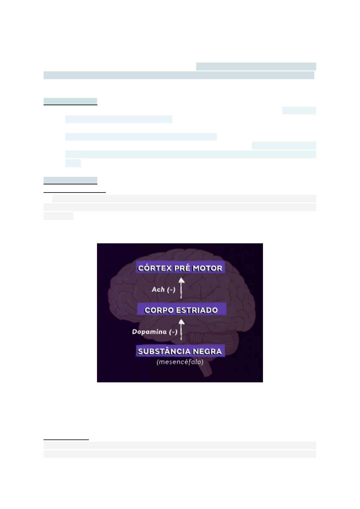 feixe nigroestriatal. O corpo estriado, por sua vez, atua inibindo o córtex pré-motor,