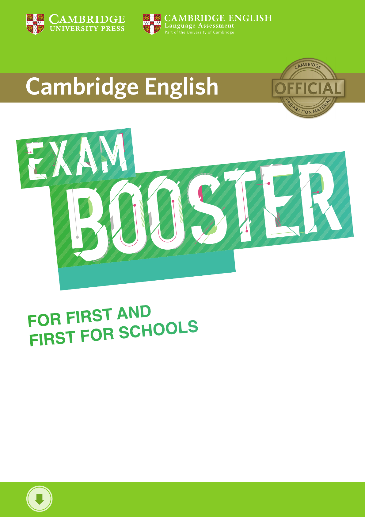 WITHOUT ANSWER KEY Helen Chilton, Sheila Dignen, Mark Fountain and Frances Treloar FOR FIRST AND FIRST FOR SCHOOLS with Audio CEFR Cambridge English Scale Cambridge English Exam B2 160–179 Cambridge English: First and First for Schools B1 140–159 Cambridge English: Preliminary and Preliminary for Schools A2 120–139 Cambridge English: Key and Key for Schools FOR FIRST AND FIRST FOR SCHOOLS Focus on essential exam practice with the Exam Booster for First and First for Schools. Maximise potential with dedicated exam task practice for class or home study. Use with or without a coursebook to develop a deeper understanding of the exam and boost test takers’ con� dence. Suitable for Cambridge English: First or Cambridge English: First for Schools 54 Exam tasks practise each part of the exam three times Exam facts provide practical information about each task Exam tips provide useful advice on how to approach each task Get it right! boxes highlight typical candidate errors in the exam Think about it tasks check understanding of each exam part FO R FIRST AND FIRST FO R SCHO O LS C hilton, D ignen, Fountain and Treloar 9781316503522 97 8- X- XX X- XX XX X- X • A ut ho r • T itl e C M Y K Pa nt oe ne X XX Peter May First SECOND EDITION TRAINER CEFR level: Cambridge English exam: C2 Cambridge English: Proficiency (CPE) C1 Cambridge English: Advanced (CAE) B2 Cambridge English: First (FCE) Cambridge English: First (FCE) for Schools B1 Cambridge English: Preliminary (PET) Cambridge English: Preliminary (PET) for Schools A2 Cambridge English: Key (KET) Cambridge English: Key (KET) for Schools M ay S E C O N D E D IT IO N wi th Audio SIX PRACTICE TESTS WITH ANSWERS First TR A IN E R SIX P R A C TIC E TE STS W ITH A N SW E R S SECOND EDITION First TRAINER SIX PRACTICE TESTS WITH ANSWERS First Trainer is the perfect exam preparation companion for the revised Cambridge English: First (FCE), also known as First Certifi cate in English. It combines exam practice with easy-to-follow expert guidance, and exam tips designed to guarantee exam success. The fi rst two tests are fully guided, with tips and advice on how to tackle each paper Additional grammar, vocabulary and writing practice activities help students avoid typical mistakes made by real exam candidates in Cambridge English: First Answer key includes clear explanations and model answers for the Writing paper Audio for the listening and speaking test activities is available online for download ‘Without answers’ version also available, plus Audio CDs with the listening and speaking test activities for both versions WITH ANSWERS AUTHENTIC EXAMINATION PAPERS 97 81 31 65 03 52 2 FI R ST F O R S C H O O LS 2 S TU D EN T’ S B O O K W IT H A N SW ER S W IT H A U D IO C V R C M Y K 2for Schools FIRST with Audio W ITH ANSW ERS FIRST for Schools EX A M IN ATIO N PA PERS This 2nd collection of examination papers for the revised Cambridge English: First for Schools, also known as First Certifi cate in English (FCE) for Schools provides all the exam practice you need. It contains: • four offi cial examination papers that provide authentic exam practice • a helpful overview of the Cambridge English: First for Schools exam to familiarise you with its format • attractive visual material to help you practise for the paired Speaking test • photocopiable answer sheets so you can practise transferring your answers • a clear explanation of marking and grading, illustrated by authentic sample answers • recording scripts and answer keys • frameworks to help you prepare for the Speaking test • downloadable audio containing the recorded material for the Listening paper. Also available: Separate Audio CDs (Recorded material for the Listening paper) Student’s Book without answers Student’s Book with answers Online versions as Cambridge English: First for Schools Tests 5–8 on 2for Schools FIRST WITH ANSWERS 2 FIRST CERTIFICATE IN ENGLISH ISBN 978 1 107 67209 3 CEFR level: Cambridge English exam: C2 Cambridge English: Proficiency (CPE) C1 Cambridge English: Advanced (CAE) B2 Cambridge English: First (FCE) Cambridge English: First (FCE) for Schools B1 Cambridge English: Preliminary (PET) Cambridge English: Preliminary (PET) for Schools A2 Cambridge English: Key (KET) Cambridge English: Key (KET) for Schools .org.ukGo digital! Go 9781316503522cvr.indd 1 03/06/2016 12:57 WITH ANSWERS AUTHENTIC EXAMINATION PAPERS 97 81 31 65 03 56 0 FI R ST 2 S TU D EN T’ S B O O K W IT H A N SW ER S W IT H A U D IO C V R C M Y K W ITH ANSW ERS FIRST EX A M IN ATIO N PA PERS FIRST 2This 2nd collection of examination papers for the revised Cambridge English: First, also known as First Certifi cate in English (FCE) provides all the exam practice you need. It contains: • four offi cial examination papers that provide authentic exam practice • a helpful overview of the Cambridge English: First exam to familiarise you with its format • attractive visual material to help you practise for the paired Speaking test • photocopiable answer sheets so you can practise transferring your answers • a clear explanation of marking and grading, illustrated by authentic sample answers • recording scripts and answer keys • frameworks to help you prepare for the Speaking test • downloadable audio containing the recorded material for the Listening paper. Also available: Separate Audio CDs (Recorded material for the Listening paper) Student’s Book without answers Student’s Book with answers Online versions as Cambridge English: First Tests 5–8 on 2 FIRST 2 WITH ANSWERS FIRST CERTIFICATE IN ENGLISH ISBN 978 1 107 66331 2 CEFR level: Cambridge English exam: C2 Cambridge English: Proficiency (CPE) C1 Cambridge English: Advanced (CAE) B2 Cambridge English: First (FCE) Cambridge English: First (FCE) for Schools B1 Cambridge English: Preliminary (PET) Cambridge English: Preliminary (PET) for Schools A2 Cambridge English: Key (KET) Cambridge English: Key (KET) for Sc