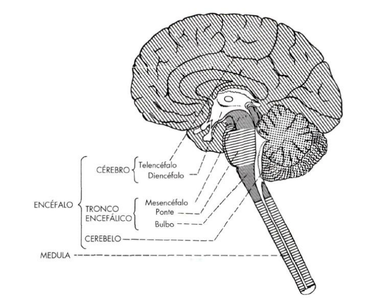 Sistema Nervoso O sistema nervoso anatomicamente é dividido em: • Sistema nervoso central: Porção do sistema nervoso que compreende todo o encéfalo e toda medula espinhal • Sistema nervoso periférico: Porção do sistema nervoso que compreende os nervos, gânglios e as terminações nervosas do sistema nervoso. O SNC se localiza no interior do esqueleto axial (Cavidade craniana e canal vertebral) e vai compreender estruturas como o Encéfalo e a Medula Espinhal. O encéfalo é a parte do sistema nervoso o qual compreende estruturas como o Cérebro, Cerebelo e Tronco encefálico. A medula se localiza dentro do canal vertebral. Já o SNP compreende tudo aquilo que são os nervos, cordões esbranquiçados que unem o SNC aos órgãos periféricos, integrando em todo ele as terminações nervosas e os 12 pares de nervos cranianos que podem ser sensitivos, motores ou mistos e os 31 pares de nervos espinhais ou raquidianos. Sistema Nervoso Central Medula Porção caudal do neuroeixo (Soma do encéfalo mais a medula), possuindo uma forma cilíndrica e com um ligeiro achatamento. Está localizada dentro do canal medular da coluna vertebral, seus limites são: • Superior: Forame magno do occipital • Inferior: Com a primeira ou segunda vertebra lombar (ou cone medular) Possui duas intumescências (dilatações) sendo uma cervical (C5-T1), que dá origem ao plexo braquial, e uma lombar (L1-S3), que dá origem ao plexo lombar e sacral. Essas dilatações ocorrem devido a maior quantidade de neurônios motores e interneurônios e estão associadas a inervação dos membros onde há necessidade de controle motor mais refinado. Possuem meninges que são envoltórios protetores, a medula possui 3 meninges de fora para dentro são: • Dura-Máter: Sendo a mais externa e resistente, formada por fibras colágenas, forma um tubo que se estende do forame magno até a vértebra S2. Entre a dura-máter e o osso temos um espaço chamado de epidural ou extradural por onde passa gordura e o plexo venoso cerebral • Aracnoide: Camada média, encostada na dura-máter, é uma camada fina, translúcida e avascular, se liga a pia-máter através de trabéculas aracnoides (Semelhantes a teias de aranha), entre a aracnoide e a dura-máter encontramos o espaço subdural (Em condições normais é um espaço vitual, em condições patológicas pode ser preenchido por sangue hematoma-subdural) • Pia-Máter: Camada mais interna, delgada e intimamente ligada ao tecido nervoso. Confere brilho intenso a superfície e é insinuada em sulcos e depressões (lesões aqui provocam hérnia de tecido nervoso). Entre as meninges, pia-máter e aracnoide encontramos um espaço chamado de Subaracnoídeo, que é preenchido por Liquor (líquido cérebro-espinal). A medula também é composta por ligamentos chamados de Denticulados ou Denteados, que encontramos em 21 pares e dispostos no plano coronal ao longo da mesma. Da medula saem 33 pares de nervos espinais, dos quais apenas 31 são funcionais e os 2 últimos são muito finos. Sendo eles: • Cervicais: 8 Pares • Torácicos: 12 Pares • Lombares: 5 Pares • Sacrais: 5 Pares • Coccígeos: 3 Pares Possuímos nervos unissegmentares, cujas fibras nascem de só um segmento medular como os intercostais e nervos formados pela mistura de fibras de vários segmentos, os plexos, que são chamados de nervos plurissegmetares. Todos os nervos espinais são mistos, isto é, carregam fibras motoras e sensitivas. Os plexos de origem espinal são: • Cervical: C3 e C5 formam o nervo frênico que inerva o diafragma. • Braquial: C5, C6, C7, C8, T1 (Pequena contribuição de C4 e T2) • Lombossacral: L1 a S3. Um nervo espinal é formado de cada lado da medula, onde filamentos radiculares anteriores e posteriores deixam a medula. Os filamentos logo em seguida se unem constituindo uma raiz ventral, anterior ou motora e uma raiz dorsal, posterior ou sensitiva (Essa última contém o gânglio espinal ou sensitivo.) Em corte transversal encontramos as substâncias branca e cinzenta. A branca de localização periférica é constituída de fibras mielínicas ascendentes e descendentes, sendo a cor branca devido a mielina. Se destacam na substância branca: • Sulcos longitudinais - Fissura mediana anterior (8) - Sulco mediano posterior (9) - Sulco intermédio posterior - Sulco lateral anterior (Y) - Sulco lateral posterior (X) • Funículos ou cordões - Funículo anterior. (4) - Funículo posterior. (6) - Funículo lateral. (5) Já a substância cinzenta que são aglomerados de corpos neuronais tem localização central e se apresenta em forma de H, em cada hemimedula encontamos: • Colunas ou cornos - Anterior (2): De onde saem as radículas ventrais ou anteriores (Motoras) - Posterior (1): De onde saem as radículas dorsais ou posteriores (Sensitivas) Unindo as duas barras de substância cinzenta temos o que chamamos de comissura cinzenta (3). No centro encontramos o Canal Central (10) resquício da luz do tubo neural Encéfalo Parte do sistema nervoso central localizada no interior do crânio, protegido por meninges e banhado pelo liquor. É dividido em: • Telencéfalo • Diencéfalo • Tronco encefálico (Mesencéfalo, ponte e bulbo) • Cerebelo Tronco Encefálico O tronco encefálico é contínuo com a medula espinal e é composto pelo bulbo, ponte e mesencéfalo. Posteriormente ao tronco encefálico se encontra o cerebelo, superiormente encontramos o diencéfalo, formado pelo tálamo, hipotálamo e epitálamo e apoiado no diencéfalo encontramos o telencéfalo. Bulbo Contínuo com a parte superior da medula espinal, forma a parte inferior do tronco encefálico, se iniciando na altura do forame magno e se estende até a margem inferior da ponte. Sua substância branca contém todos os tratos sensitivos e motores que se projetam entre a medula e outras partes do encéfalo, parte da substância branca formam protusões na parte anterior do bulbo chamadas Pirâmides Bulbares