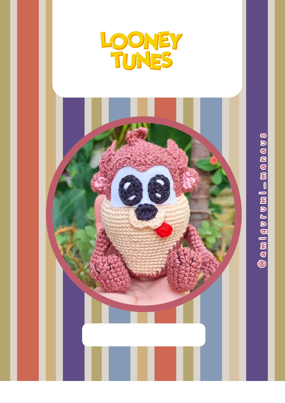 Baby Taz mania @ a m ig u r u m i_ m a n a u s @ a m ig u r u m i_ m a n a u s Receita de Amigurumi Digital por Danea Dorneles PROIBIDA A VENDA E COMPARTILHAMENTOS DESTA RECEITA PROIBIDA A VENDA E COMPARTILHAMENTOS DESTA RECEITA cessão de uso.......................................................3 fotos .......................................................................4 sobre a personagem...........................................5 materiais e legenda de pontos......................6 cabeça e corpo....................................................7 Detalhes..................................................................8 mãozinhas............................................................10 pernas....................................................................11 montagem..............................................................13 fotos finais.........................................................15 agradecimentos.................................................16 2 sumáriosumário PROIBIDA A VENDA E COMPARTILHAMENTOS DESTA RECEITA 3 ... Você não pode fazer o que quiser com ela, assim a sua cessão permite a venda do produto final, em pequena escala, constando os créditos para @amigurumi_manaus. Não é permitido o compartilhamento por qualquer meio, seja físico (impressão em papel) ou digital (e-mail, mensagens, redes sociais incluindo reprodução da mesma no YouTube ou plataformas similares ), seja de forma gratuita ou onerosa (venda). Não é permitida a alteração da receita e a venda como se fosse de sua autoria. De acordo com os termos de cessão, essa receita é pra uso pessoal e intransferível, por essa razão, para evitar compartilhamento, algumas páginas possuem marca d'água com o nome completo e o CPF do(a) comprador(a). O CPF poderá ser substituído pelo e-mail. ... Você não pode fazer o que quiser com ela, assim a sua cessão permite a venda do produto final, em pequena escala, constando os créditos para @amigurumi_manaus. Não é permitido o compartilhamento por qualquer meio, seja físico (impressão em papel) ou digital (e-mail, mensagens, redes sociais incluindo reprodução da mesma no YouTube ou plataformas similares ), seja de forma gratuita ou onerosa (venda). Não é permitida a alteração da receita e a venda como se fosse de sua autoria. De acordo com os termos de cessão, essa receita é pra uso pessoal e intransferível, por essa razão, para evitar compartilhamento, algumas páginas possuem marca d'água com o nome completo e o CPF do(a) comprador(a). O CPF poderá ser substituído pelo e-mail. VOCÊ NÃO COMPROU A PROPRIEDADE DEstA RECEITA, MAS UMA CESSÃO DE USO, ENTÃO... cessão de usocessão de uso PROIBIDA A VENDA E COMPARTILHAMENTOS DESTA RECEITA 4 fotosfotos PROIBIDA A VENDA E COMPARTILHAMENTOS DESTA RECEITA 5 Taz-Mania é um personagem icônico dos Looney Tunes, inspirado no verdadeiro diabo-da-tasmânia, um marsupial australiano conhecido por seu comportamento feroz e voraz. No universo animado, Taz é um ser caótico e hiperativo, famoso por sua fome insaciável e sua habilidade de girar como um tornado enquanto solta grunhidos incompreensíveis. Ele ganhou sua própria série animada nos anos 90, chamada *Taz-Mania*, onde interagia com sua família e outros personagens excêntricos. 😊 Taz-Mania é um personagem icônico dos Looney Tunes, inspirado no verdadeiro diabo-da-tasmânia, um marsupial australiano conhecido por seu comportamento feroz e voraz. No universo animado, Taz é um ser caótico e hiperativo, famoso por sua fome insaciável e sua habilidade de girar como um tornado enquanto solta grunhidos incompreensíveis. Ele ganhou sua própria série animada nos anos 90, chamada *Taz-Mania*, onde interagia com sua família e outros personagens excêntricos. 😊 taz maniataz mania PROIBIDA A VENDA E COMPARTILHAMENTOS DESTA RECEITA 6 Materiais Fio amigurumi: preto porcelana cacau branco vermelho círculo Doçura Agulha 2,5mm; Enchimento, alfinetes, marcador de carreira; Cola para tecido; feltro branco; olhos oval com trava de segurança 15mm (opcional); linha de costura preta; Materiais Fio amigurumi: preto porcelana cacau branco vermelho círculo Doçura Agulha 2,5mm; Enchimento, alfinetes, marcador de carreira; Cola para tecido; feltro branco; olhos oval com trava de segurança 15mm (opcional); linha de costura preta; usando o fio e agulha sugeridas o amigurumi deve ficar com aproximadamente 12cm Legenda de pontos: Am = anel mágico Carr = carreira Corr = correntinha Pb = ponto baixo Pbx = ponto baixíssimo Pp = ponto pipoca Pa= ponto alto Paa= ponto alto alongado. Mpa = meio ponto alto. Aum = aumento Legenda de pontos: Am = anel mágico Carr = carreira Corr = correntinha Pb = ponto baixo Pbx = ponto baixíssimo Pp = ponto pipoca Pa= ponto alto Paa= ponto alto alongado. Mpa = meio ponto alto. Aum = aumento Aummpa = aumento de meio ponto alto AumPa = aumento de ponto alto AumPaa = aumento de ponto alto alongado Dim= diminuição Dimmpa = diminuição de meio ponto alto BLO = pegando somente a alça de trás FLO = pegando somente a alça da frente Aummpa = aumento de meio ponto alto AumPa = aumento de ponto alto AumPaa = aumento de ponto alto alongado Dim= diminuição Dimmpa = diminuição de meio ponto alto BLO = pegando somente a alça de trás FLO = pegando somente a alça da frente nivel de dificuldade: médio Material e legendaMaterial e legenda PROIBIDA A VENDA E COMPARTILHAMENTOS DESTA RECEITA 7 Cabeça Comece com cacau. 1- 6pb no am. (6) 2- 6aum. (12) 3- 1pb, 1aum 6x. (18) 4- 1pb, 1aum, (2pb, 1aum 5x), 1pb. (24) 5- 3pb, 1aum 6x. (30) 6- 4pb, 1aum 6x. (36) 7- 5pb, 1aum 6x. (42) 8- 42pb. (42) 9- 6pb, 1aum 6x. (48) 10- 17- 48pb (8 voltas). (48) A partir daqui iremos mesclar a cor cacau (C) e porcelana (P) 18- C: 11pb, P: 1aum, (1pb, 1aum 3x), 11pb, 1aum, (1pb, 1aum 3x), C:12pb. (56) 19- C: 12pb, P: 1aum, (2pb, 1aum 3x), 12pb, 1aum, (2pb, 1aum 3x), C:12pb. (64) 20- 24- C: 12pb P: 40pb, C: 12pb. (4 vol