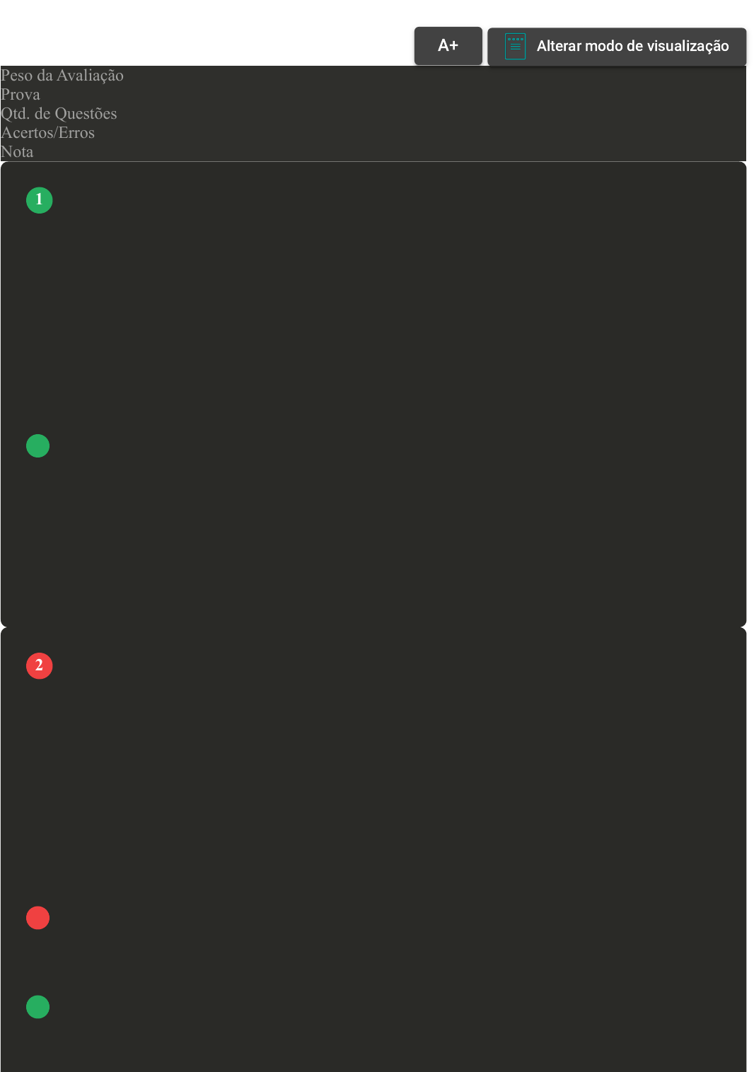 Prova Impressa GABARITO | Avaliação I - Individual (Cod.:766302) Peso da Avaliação 1,50 Prova 55866395 Qtd. de Questões 10 Acertos/Erros 3/7 Nota 3,00 A pele possui diversas funções que contribuem para a sobrevivência dos seres humanos como, por exemplo, a proteção imunológica e manutenção da homeostase. Além disso, a pele possui uma excelente capacidade de percepção. Quanto a essa capacidade, classifique V para as sentenças verdadeiras e F para as falsas: ( ) Os receptores neurais não são capazes de auxiliar em algumas percepções, como respostas inflamatórias, por exemplo. ( ) Respostas como a palidez cutânea não indicam distúrbios sistêmicos no organismo. ( ) Os receptores neurais percebem sensações externas como pressão, tato, calor, frio e dor. ( ) Na pele estão instalados receptores neurais para perceberem sensações do meio externo. Assinale a alternativa que apresenta a sequência CORRETA: A F - F - V - V. B F - V - F - V. C V - F - F - F. D V - F - V - F. A anatomia é a área que estuda o corpo e suas partes. A anatomia está dividida em áreas como a anatomia macroscópica, microscópica e do desenvolvimento. A anatomia macroscópica está dividida em regional, sistêmica e de superfície. Quanto à anatomia de superfície, analise as sentenças a seguir: I- Estuda a maneira como as estruturas internas se relacionam, comunicam e desenvolvem. II- Para alguns autores, esta área é conhecida como a anatomia palpatória. III- Estuda e busca compreender um sistema em particular e as estruturas que o compõem. IV- Na prática profissional, os profissionais fazem uso desta área utilizando o toque. Assinale a alternativa CORRETA: A As sentenças I e III estão corretas. B As sentenças II, III e IV estão corretas. C As sentenças II e III estão corretas. D As sentenças I, II e IV estão corretas. VOLTAR A+ Alterar modo de visualização 1 2 A epiderme é a camada mais externa da pele e é formada por diferentes tipos de células distribuídas em estratos. Cerca de 90% das células epidérmicas são queratinócitos que produzem queratina. Outro tipo de célula importante na epiderme são os melanócitos. Sobre os estratos que compõem a epiderme, classifique V para as sentenças verdadeiras e F para as falsas: ( ) O estrato córneo é o mais externo constituído de camadas de células mortas representadas por sacos membranosos planos. ( ) O estrato basal é a camada mais profunda e possui células-tronco com alta atividade mitótica. ( ) O estrato granuloso é o mais externo constituído de camadas de células mortas representadas por sacos membranosos planos. ( ) O estrato espinoso é formado por queratinócitos translúcidos e mortos que passam por apoptose geneticamente programada. Assinale a alternativa que apresenta a sequência CORRETA: A V - V - F - F. B F - V - V - F. C V - F - F - V. D F - F - V - V. A palavra Anatomia tem origem grega e possui o significado de algo como "cortar em partes". Uma das subdivisões da anatomia é a Anatomia macroscópica. Sobre a Anatomia macroscópica, assinale a alternativa CORRETA: A Estuda as grandes partes do corpo visíveis a olho nu. B Estuda somente as estruturas pertencentes ao mesmo sistema. C Estuda somente a maneira como as estruturas internas se relacionam. D Estuda as partes integrantes dos tecidos. Por muito tempo, o termo tecido foi interpretado de maneira equivocada como pele ou tegumento. O corpo humano é composto por uma variedade de tipos de células que estão agrupadas de acordo com a função. Esses grupos de células são denominados tecidos. Quanto aos quatro tipos básicos de tecidos, classifique V para as sentenças verdadeiras e F para as falsas: ( ) A classificação de um tecido é independente de sua característica morfológica. ( ) São classificados como tecido epitelial, conjuntivo, muscular e tecido nervoso. Revisar Conteúdo do Livro 3 Revisar Conteúdo do Livro 4 Revisar Conteúdo do Livro 5 ( ) As células agrupam-se em tecidos, estes por replicação transformam-se em órgãos. ( ) O agrupamento de diferentes tipos de tecidos formam uma célula. Assinale a alternativa que apresenta a sequência CORRETA: A F - V - V - F. B V - V - F - F. C V - V - V - F. D V - F - F - V. A pele é um conjunto de células isoladas ou de células e uma matriz extracelular (MEC). A MEC na pele também é denominada de rede, pois é composta de componentes principais solúveis e insolúveis. A MEC ajuda a ligar as células umas as outras e a um reservatório de hormônios que controlam a expressão genética. Considerando esse contexto, avalie as asserções a seguir e a relação proposta entre elas: I- A MEC tem um papel dinâmico na modulação do comportamento celular através da interação com receptores específicos ou não específicos. PORQUE II- A MEC possui dois componentes principais: os proteoglicanos insolúveis e as fibras de colágeno aderidas à matriz. Assinale a alternativa CORRETA: A As asserções I e II são proposições verdadeiras, e a II é uma justificativa da I. B A asserção I é uma proposição verdadeira, e a II é uma proposição falsa. C As asserções I e II são proposições falsas. D As asserções I e II são proposições verdadeiras, mas a II não é uma justificativa da I. O corpo humano é composto por uma variedade de diferentes tipos de células que estão agrupadas de acordo com a forma e a função específica. Do ponto de vista fisiológico, as células são organizadas e distribuídas em grupos denominados tecidos. São quatro tipos básicos de tecidos classificados como tecido epitelial, conjuntivo, muscular e tecido nervoso. Considerando esse contexto, avalie as asserções a seguir e a relação proposta entre elas: I- As células compõem as menores unidades estruturais e funcionais dos seres vivos. PORQUE Revisar Conteúdo do Livro 6 Revisar Conteúdo do Livro 7 II- Agrupam-se no formato de tecidos e estes, por sua vez, devido a sua replic