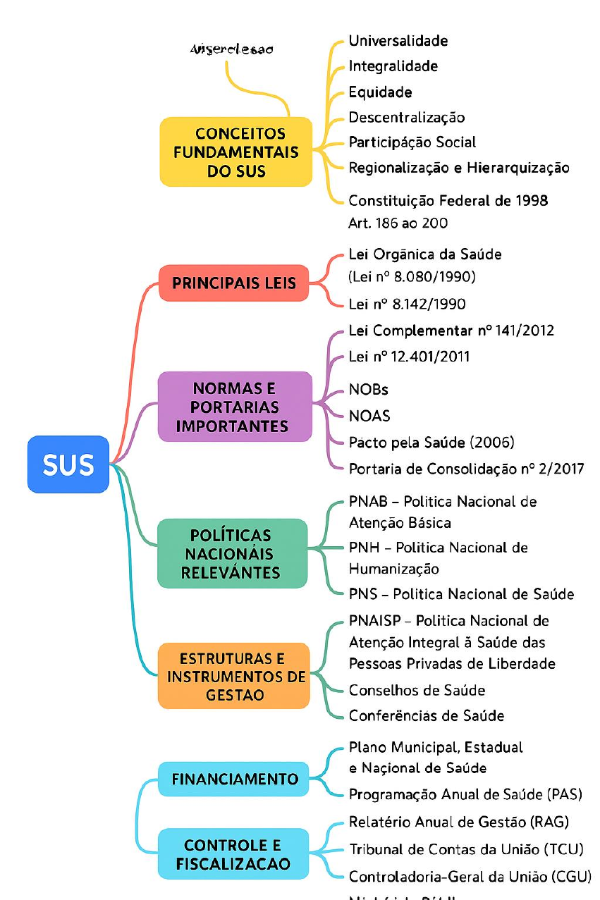 Universalidade Integralidade Equidade Descentralização CONCEITOS Participáção Social FUNDAMENTAIS DO SUS Regionalização e Hierarquização Constituição Federal de 1998 Art. 186 ao 200 Lei Orgãnica da Saúde PRINCIPAIS LEIS (Lei n° 8.080/1990) Lei n° 8.142/1990 Lei Complementar n° 141/2012 Lei n° 12.401/2011 NORMAS E NOBs PORTARIAS NOAS IMPORTANTES Pacto pela Saúde (2006) SUS Portaria de Consolidação n° 2/2017 PNAB Politica Nacional de Atenção Básica POLÍTICAS NACIONÁIS PNH - Politica Nacional de RELEVÁNTES Humanização PNS - Politica Nacional de Saúde PNAISP - Politica Nacional de Atenção Integral à Saúde das ESTRUTURAS E Pessoas Privadas de Liberdade INSTRUMENTOS DE GESTAO Conselhos de Saúde de Saúde Plano Municipal, Estadual e de Saúde FINANCIAMENTO Programação Anual de Saúde (PAS) Relatério Anual de Gestão (RAG) CONTROLE E Tribunal de Contas da União (TCU) FISCALIZACAO Controladoria-Geral da União (CGU)