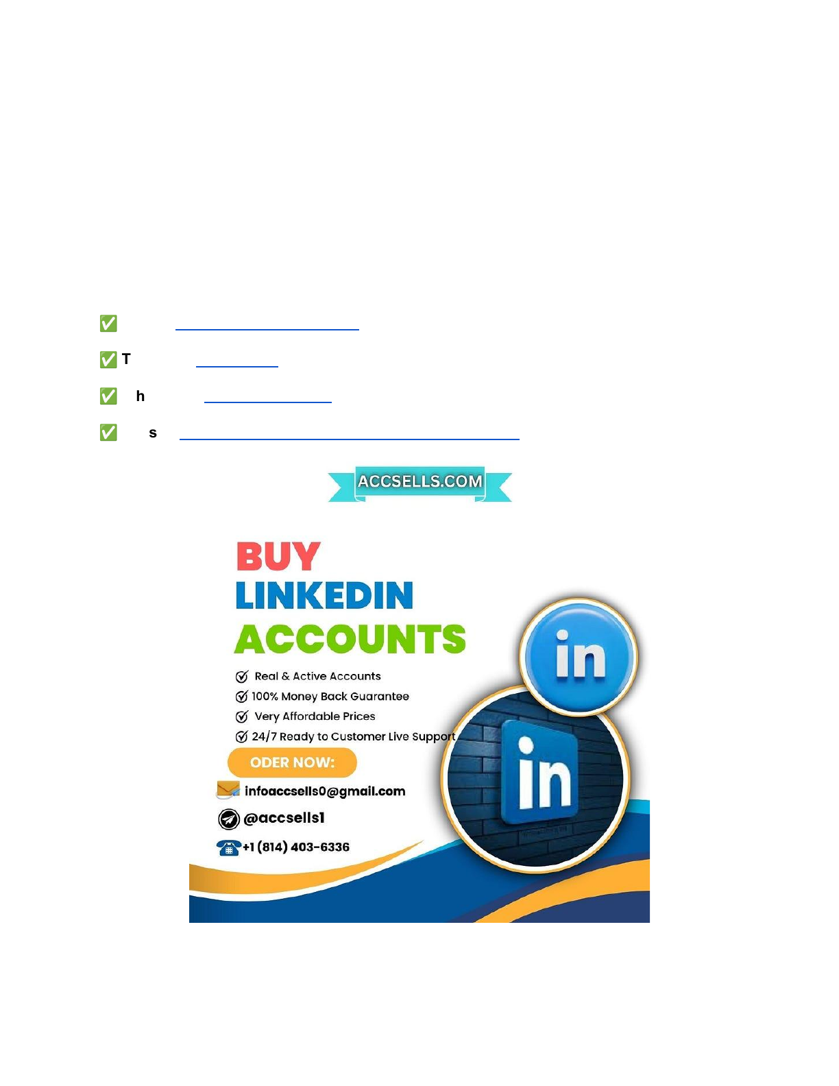 Where to Buy LinkedIn Accounts? [16 Best Sites] If You want to more information just contact now 24 Hours Reply/ Contact : – ✅ E-mail: infoaccsells0@gmail.com ✅ Telegram: @accsells1 ✅ WhatsApp: +1 (814) 403–6336 ✅Websits:https://accsells.com/product/buy-linkedin-accounts/ Building a strong professional network and making your mark on LinkedIn can feel like a slow climb. You might spend countless hours trying to connect with the right people, hoping to catch mailto:infoaccsells0@gmail.com https://t.me/accsells1 https://api.whatsapp.com/send?phone=18144036336 https://accsells.com/product/buy-linkedin-accounts/ their eye. A robust network, however, isn’t just about showing off; it’s a vital tool for moving your career forward and finding great business opportunities. It opens doors you didn’t even know existed. This is where the idea of buying LinkedIn accounts comes in. It offers a fresh way to speed up how fast your network grows. Understanding this approach can unlock new benefits, but it’s important to know the steps and think about ethical matters carefully. It’s a strategy that needs clear thought and careful planning. Why Buy LinkedIn Accounts? Strategic Advantages Acquiring pre-established LinkedIn accounts can help you get around the slow, step-by-step process of organic network growth. Think of it as hitting the fast-forward button for your online presence. This method lets you quickly build a more substantial base, making your profile appear more influential from the start. Expand Your Professional Network Rapidly A small network often means limited reach. When you only have a few connections, your posts and profile don’t get seen by many people. This can make it hard to get your message out or find new leads. Overcoming Network Size Limitations Having a small number of connections on LinkedIn can really hold you back. It limits who sees your posts and who you can directly message. Expanding your network quickly by buying accounts helps you break through these common barriers. Suddenly, your content reaches more eyes, and your profile gains a wider audience. Access to Targeted Industries and Roles One big plus to buying accounts is picking ones that already connect with specific industries or job roles. You can look for accounts that already have connections in tech, marketing, finance, or any other field you target. This lets you connect directly with the right people, bypassing the need to build those specific ties from scratch. It saves you time and effort in your search. Enhance Lead Generation and Sales Outreach A larger, more relevant network directly improves the quality of your leads and how many turn into sales. More connections mean more people seeing what you offer. This increased visibility makes your brand or services much more likely to be noticed by potential customers. Increasing Visibility for Your Brand/Services https://accsells.com/product/buy-linkedin-accounts/ https://accsells.com/product/buy-linkedin-accounts/ More connections mean more eyeballs on your content and profile. When you have a bigger network, your updates and articles get shared with a wider audience. This exposure boosts your brand’s presence and helps potential clients discover your services more easily. It’s like having a bigger billboard in a crowded digital space. Streamlining Prospecting Efforts Purchased accounts can make your prospecting efforts much smoother. With a ready-made network, you can launch outreach campaigns with greater speed and focus. You spend less time finding prospects and more time actually engaging with them. This cuts down on the effort needed to connect with many potential leads at once. Boost Credibility and Social Proof A larger follower count and more connections build immediate trust and make you look like an expert. People naturally view profiles with many connections as more reputable. This perception of popularity often leads to greater authority in your field. The Psychology of Social Proof Online People tend to trust what others find popular. If a LinkedIn profile has many connections and endorsements, others often assume it’s valuable and credible. This effect, known as social proof, plays a big part in how users judge online authority. It suggests that if many others trust you, so should they. Building Trust with Potential Clients/Partners A strong LinkedIn presence definitely influences who clients or partners choose to work with. When your profile looks active and well-connected, it signals reliability and influence. This helps to build trust before you even have a direct conversation. A credible online image can certainly tip the scales in your favor when important decisions are made. Where to Safely Buy LinkedIn Accounts Finding a reliable source is key when you decide to buy LinkedIn accounts. You need to do your homework to avoid problems. Look closely for clear signs of trustworthy sellers and know what hints at a bad deal. Identifying Reputable Providers Always do your research before buying. Be wary of sellers who make big promises with little detail. Trustworthy sources are open about their practices and what they offer. Key Features of Trustworthy Sellers Good sellers often show clear policies and provide solid customer support. They usually have positive reviews from past buyers. Look for transparent details about the accounts they sell, such as their age or activity levels. They will also offer clear explanations of how their service works. Red Flags to Watch Out For Watch out for common tricks that can lead to big problems, like your account getting suspended. Be careful with sellers offering prices that seem too good to be true. Lack of clear contact information or vague descriptions of accounts are also bad signs. Avoid anyone who pressures you into a quick sale without giving you time to review their offers. Understanding Account Quality and Types Not all accounts are created equal when you buy them. It’s i