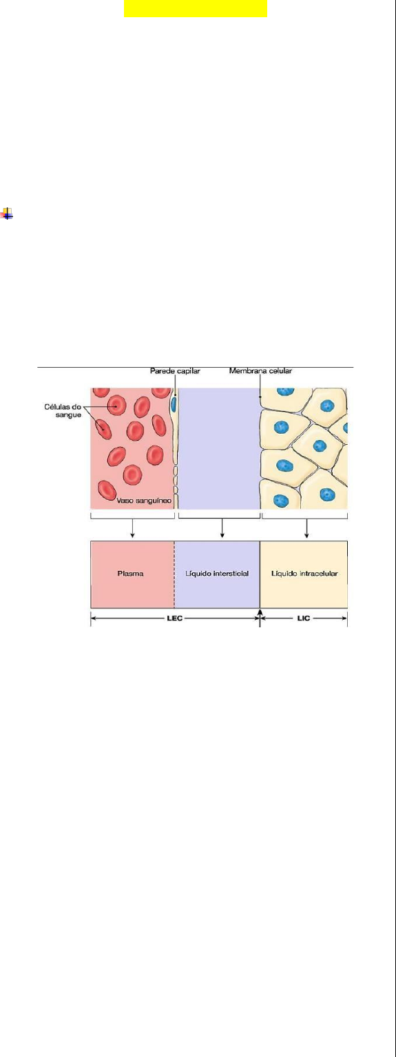 PACIENTE CRÍTICO Caso clínico 1: Paciente apresenta fraqueza, mal-estar, câimbras, vômitos intensos e diarreia, e no eletrocardiograma depressão do segmento ST e da onda T e aumento do intervalo QT e da onda U. Condição clínica Hipopotassemia. A de K+ empurra a onda T para baixo e como a onda U é um 1/3 do tamanho da onda T, é aí que ela aparece. DISTÚRBIOS HIDROELETROLÍTICOS Para manutenção da homeostase corporal, faz-se necessário um equilíbrio entre o volume de água e eletrólitos nos 3 compartimentos corporais: líquido intracelular (LIC), intersticial e intravascular (plasma), esses dois últimos são classificados como líquido extracelular (LEC). No LIC existem concentrações iônicas diferentes do LEC. O LIC é rico em íons de K+, e este precisa ser mantido dentro da célula. Quando ocorre a despolarização celular, ocorre entrada de Na+ e saída de K+. Não pode ocorrer excesso de extravasamento de K+ intracelular, a ponto dele alcançar a circulação sistêmico, pois hipercalemia é extremamente perigoso para saúde do paciente. Em casos onde ocorre muita lesão de membrana (caiu de uma grande altura, atropelamento, sofreu acidentes contusos, grande queimado) há muito extravasamento de potássio. E não será possível jogar esse K+ de maneira adequada para dentro da célula. Ou seja, os níveis de K+ no sangue ficarão elevados (hipercalemia) e este é um grande fator de risco para PCR. Isso é muito comum, em por exemplo, um paciente que foi atropelado, aparentemente não teve nenhuma fratura, ele levanta, anda, ajuda as pessoas e do nada ele cai em PCR (devido a lesão de membrana). No meio extracelular, o íon mais abundante é o Na+. Existem outros compartimentos que integram o líquido extracelular, que são os líquidos transcelulares (LTC), são eles: cavidades (pericárdica, peritoneal e pleural) e líquidos intraocular e sinoviais. Essa informação é importante pois, se esses líquidos forem aumentados, ocorrerão problemas, ex.: derrame peritoneal (ascite), derrame pericárdico extremamente pronunciado (tamponamento cardíaco). Distribuição dos Líquidos no Corpo: 66% (LIC); 33% (LEC) sangue + interstício; 1% (LTC) cavidades, intraocular e sinoviais. A células ósseas são as que possuem menos LIC e as musculares são as que mais possuem. Os músculos são hiperhidratados, por isso as mulheres têm maior tendência a desidratação quando comparadas aos homens, visto que, via de regra, as mulheres possuem massa muscular reduzida quando comparada aos homens. Caso Clínico 2: Ao avaliar um paciente, o enfermeiro suspeita de um quadro de hipervolemia relacionada ao volume extravascular (LEC – sem plasma) aumentado quando observa a presença de: A) hipotensão ortostática. B) distensão venosa jugular. C) diminuição da pressão de pulso. D) ascite. CONTROLE HIDROELETROLÍTICO O equilíbrio entre o volume plasmático de água e eletrólitos é essencial para o funcionamento de diversas funções orgânicas, tais como contração muscular, bom desempenho do Sistema Nervoso Central (SNC), adequada função cardíaca e renal. Todo esse equilíbrio é mediado pelo: Hipotálamo: centro responsável pelo controle da osmolaridade plasmática (≅ 280-300 mOsm/Kg). O hipotálamo possui osmoreceptores (especializados em ler como está a osmolaridade do plasma). Ao detectar qualquer alteração na osmolaridade, ele envia um sinal para neuro-hipófise. A osmolaridade do sangue pode aumentar, por exemplo, na ingestão de alimentos muito salgados ou pela perda de água pelo suor. Neuro-hipófise: secreta ADH (hormônio antidiurético) para atuar nos ductos coletores renais, promovendo maior permeabilidade e permitindo que maior quantidade de água seja reabsorvida. É como se ele inserisse aquaporinas nos ductos coletores (porção final do néfron), que são canais de água através das membranas celulares. Quanto mais aquaporina dentro do ducto coletor, maior será a saída de água do ultrafiltrado de volta para o sangue (maior concentração e menor produção de urina). A liberação de ADH também ativa a glândula suprarrenal que secreta aldosterona. Rins, fígado e pulmões: Renina, Angiotensionogênio e ECA (Sistema renina, angiotensina e aldosterona - SRAA). Esse sistema será responsável por uma série de mecanismo para que se consiga manter o líquido dentro do corpo. O SRAA ativa a liberação de aldosterona pela suprarrenal. Suprarrenal: secreta aldosterona. Que aumenta a reabsorção de Na+ (e de água) nos rins e a excreção de potássio. Paratireoide e Tireoide: a paratireoide antagoniza a tireoide para secretar hormônios que vão fazer a regulação dos íons Ca+ (principalmente) e fosfato. O hormônio paratireoideano (PTH = paratormônio) é liberado pela paratireoide e tem como principal função a manutenção de cálcio e fosfato no sangue (ele tira cálcio dos ossos). Já a tireoide libera o hormônio calcitonina, que é responsável pela diminuição dos níveis de cálcio e fosfato no sangue (ela tira o cálcio do sangue e devolve para os ossos). Átrios: libera o hormônio PNA (peptídeo natriurético atrial). Ao distender demais as fibras atriais (pré-carga aumentada) para chegada de sangue, esse simples esgarçar dos miócitos faz com que haja liberação de PNA e com que ele ganhe a corrente sanguínea, chegue nos rins e aumente a excreção de Na+ (e, consequentemente, água) pela urina. Natriurético liberação de sódio pela urina. Resolvendo a questão da hipervolemia. Sede: o mecanismo da sede é regulado pelo córtex cerebral. Em casos de muita desidratação, em que o indivíduo quer beber muita água, ao ingerir uma quantidade considerável de água, a sede cessa e ele se sente saciado. Esse mecanismo faz uma leitura instantânea, que o córtex cerebral faz e envia a mensagem de “chega de água”. Os distúrbios hidroeletrolíticos (DH) ocorrem quando essas compensações orgânicas são superadas por eles,
