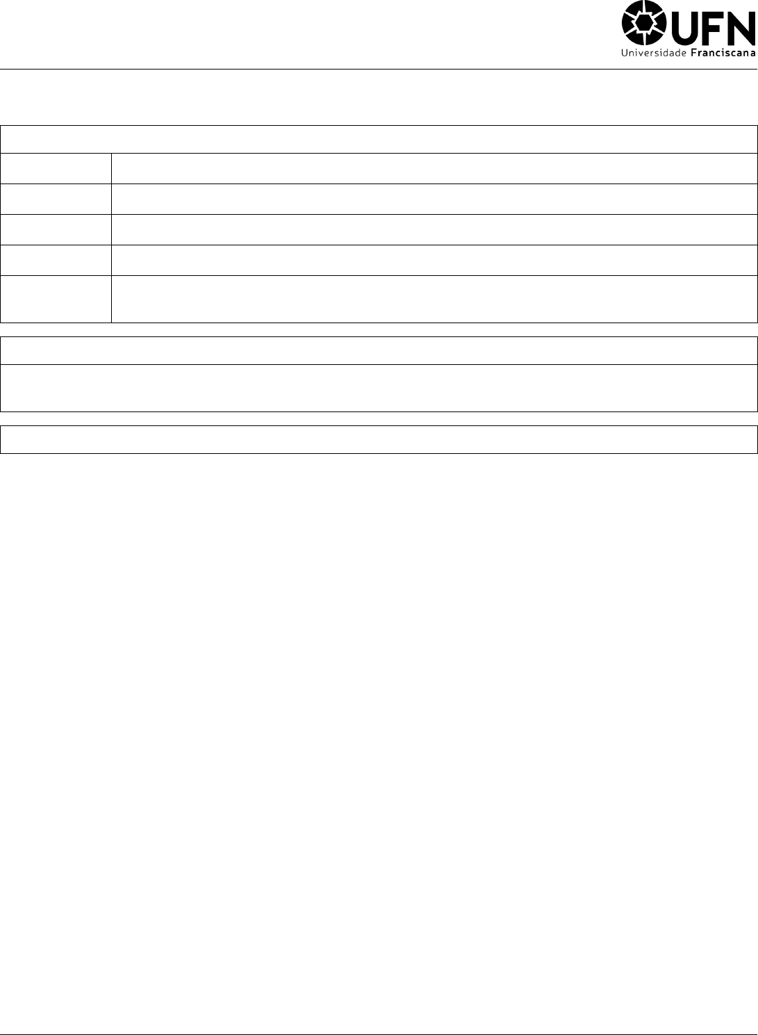 Universidade Franciscana - UFN Secretaria Acadêmica - SEAC Rua dos Andradas, 1614 - Santa Maria - RS - Brasil Cep. 97010-032 - www.ufn.edu.br Plano de ensino 1) Identificação Curso G04U5 Medicina Carga horária 220h Disciplina Processos de Agressão e Defesa Semestre letivo 2025/2 - Graduação Professor Marcos Roberto dos Santos - Juliana Fleck - Ana Paula Chiapinotto Ceretta - Francielle Liz Monteiro - Matheus Dellaméa Baldissera - Diulie Valente de Souza 2) Objetivos Conhecer os principais microrganismos agressores como bactérias, vírus, fungos e parasitas de interesse médico, bem como seus aspectos morfobiológicos, clínicos, epidemiológicos 3) Conteúdo Programático Conjunto I - Sede - Rua dos Andradas, 1614 - Fone: (55) 3220.1200 - CEP: 97010-032 - Santa Maria / RS - Brasil. Conjunto II - Rua Silva Jardim, 1323 - Fone: (55) 3026.6971 - CEP: 97010-491 - Santa Maria / RS - Brasil. Conjunto III - Rua Silva Jardim, 1175 - Fone: (55) 3025.9000 - CEP: 97010-491 - Santa Maria / RS - Brasil. Conjunto IV - Rua Joana D'arc, 456 - Fone: (55) 3026.6994 - CEP: 97060-360 - Santa Maria / RS - Brasil. Página 1 de 8 Unidade 1 - Bacteriologia básica 1.1) Estrutura da célula bacteriana 1.2) Fármacos antimicrobianos: mecanismo de ação e resistência 1.3) Fisiologia e metabolismo bacteriano 1.4) Crescimento e genética de bactérias 1.5) Classificação das bactérias de importância médica 1.6) Flora normal 1.7) Patogênese 1.8) Diagnóstico laboratorial 1.9) Fármacos antimicrobianos: mecanismo de ação e resistência 1.10) Esterilização, desinfecção e assepsia Unidade 2 - Principais grupos bacterianos 2.1) Enterobactérias e principais Bacilos não fermentadores 2.2) Principais cocos gram positivos 2.3 ) Gênero Mycobacterium Unidade 3 - Taxonomia e ecologia de fungos filamentosos microscópicos e leveduriformes 3.1) Histórico e Propriedades gerais dos fungos 3.2) Taxonomia: Zigomicetos, Ascomicetos, Basidiomicetos e Deuteromicetos 3.3) Características dos principais gêneros de leveduras com interesse do ponto de vista médico: Candida, Cryptococcus, Malassezia e Trichosporon, etc. 3.4) Antifúngicos Unidade 4 - Importância dos fungos microscópicos 4.1) Classificação das micoses. 4.2) Manifestações patológicas das micoses, superficiais, subcutâneas, profundas e oportunistas. Unidade 5 - Diagnóstico laboratorial das micoses 5.1) Coleta de micológico 5.2) Isolamento e identificação microscópica de fungos 5.3) Diagnóstico imunológico e por biologia molecular nas infecções fúngicas 5.4) Testes de susceptibilidade Unidade 6- Métodos e técnicas utilizadas em exame parasitológico de fezes, sangue, tecidos e secreções 6.1) Coleta e conservação de material para exame parasitológico 6.2) Métodos para detectar cistos e protozoários 6.3) Métodos para detecção de larvas de Helmintos 6.4) Hemoscopia para a pesquisa de parasitos Unidade 7- Generalidades sobre parasitismo 7.1) Relações Ecológicas e ciclo parasitários 7.2) Conceito de parasitismo 7.3) Classificação dos parasitos Unidade 8- Mecanismos da relação parasito-hospedeiro 8.1) Relação parasito-hospedeiro 8.2) Mecanismos da transmissão 8.3) Parasitismo e Processos patológicos 8.4) Parasitismo e Sistema imunológico Unidade 9 - Biologia das protozooses intestinais e extra intestinais de interesse clínico 9.1) Amebas parasitas do homem 9.2) Flagelados parasitos do sangue e tecidos: Trypanosoma cruzi 9.3) Gênero Leishmania 9.4) Flagelados das vias digestivas e geniturinárias: Trichomonas Viginallis e Giardia lamblia 9.5) Plasmódios e a malária 9.6) Toxoplasma gondii 9.7) Balantidium coli Unidade 10- Biologia das parasitoses intestinais de interesse clínico causadas por nematelmintos Conjunto I - Sede - Rua dos Andradas, 1614 - Fone: (55) 3220.1200 - CEP: 97010-032 - Santa Maria / RS - Brasil. Conjunto II - Rua Silva Jardim, 1323 - Fone: (55) 3026.6971 - CEP: 97010-491 - Santa Maria / RS - Brasil. Conjunto III - Rua Silva Jardim, 1175 - Fone: (55) 3025.9000 - CEP: 97010-491 - Santa Maria / RS - Brasil. Conjunto IV - Rua Joana D'arc, 456 - Fone: (55) 3026.6994 - CEP: 97060-360 - Santa Maria / RS - Brasil. Página 2 de 8 10.1) Ascaris lumbricoides 10.2) Enterobius vermicularis 10.3) Strongyloides stercoralis 10.4) Ancilostomídeos 10.5) Larva Migrans 10.6) Trichuris trichiura 10.7) Wuchereria bancrofti Unidade 11- Biologia das parasitoses intestinais causadas por platelmintos 11.1) Taenia solium 11.2) Taenia saginata 11.3) Hymenolepis nana 11.4) Echinococus granulosus 11.5) Schistosoma mansoni 11.6) Fasciola Hepatica Unidade 12- Parasitoses emergentes 12.1) Angiostrongylus costaricencis 12.2) Syngamus laringeus 12.3) Cyclospora cayetanensis 12.4) Babesia sp. 12.5) Lagochilascaris sp. 12.6) Microsporideos 12.7) Isospora belli 12.8) Sarcocystis sp. 12.9) Cryptosporidium sp. Unidade 13- Entomologia médica 13.1) Insetos Hematófagos 13.2) Ectoparistas 13.3) Moscas 13.4) Ácaros e carrapatos Unidade 14- Introdução à Virologia: 14.1) Propriedades Gerais dos Vírus 14.2) Estrutura viral e taxonomia 14.3) Biossíntese viral 14.4) Patogênese das infecções virais 14.5) Resposta do hospedeiro às viroses 14.5) Métodos diagnósticos em virologia utilizados na pesquisa e na assistência 14.6) Vacinas 14.7) Antivirais Unidade 15- Principais viroses humanas: 15.1) Viroses entéricas 15.2) Viroses respiratórias 15.3) Viroses congênitas 15.4) Arboviroses 15.5) Virus da Imunodeficiência Humana 15.6) Hepatites virais 15.7) Viroses dermotrópicas 15.8) Viroses oncogênicas 15.9) Viroses do Sistema Nervoso Central 15.10) Viroses multissistêmicas Unidade 16 - Sistema imunológico 16.1) Órgãos linfoides primários e secundários 16.2) Células do sistema imune 16.3) Imunidade Inata 16.4) Imunidade Adaptativa Conjunto I - Sede - Rua dos Andradas, 1614 - Fone: (55) 3220.1200 - CEP: 97010-032 - Santa Maria / RS - Brasil. Conjunto II - Rua Silva Jardim, 1323 - Fone: (55) 3026.6971 - CEP: 97010-491 - Sant