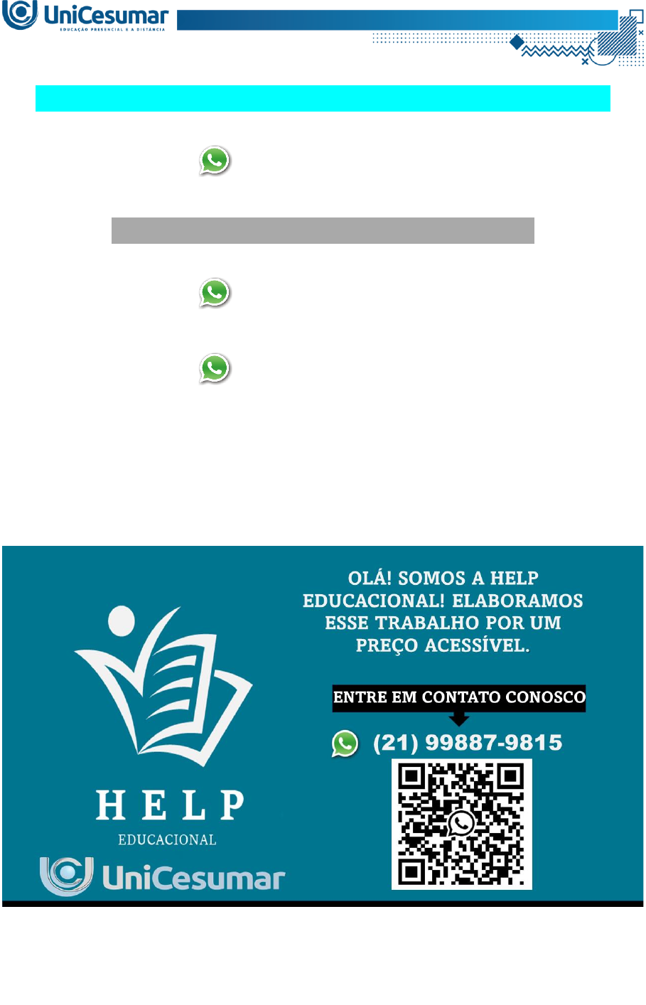 ATIVIDADE 1 – MATEMÁTICA FINANCEIRA - 53_2025 (21) 99887-9815 ASSESSORIA NOS SEUS TRABALHOS (21) 99887-9815 (21) 99887-9815 A empresa Capital Mais Soluções Empresariais Ltda., que atua no segmento de consultoria empresarial, precisou realizar um empréstimo emergencial de R$ 800.000,00, com prazo de 21 dias, para cumprir obrigações contratuais com um novo parceiro estratégico. O banco aprovou a operação com uma taxa de juros de 2,5% ao mês, entretanto, o banco possibilita que a empresa escolha se pagará juros simples ou composto nessa transa- ção. Com base na situação hipotética, realize os cálculos necessários e apresente sua recomendação fundamentada sobre qual regime de juros deve ser escolhido pela empresa Obs.: lembre-se de utilizar taxa proporcional para juros simples e taxa equiva- lente para juros compostos OLÁ! SOMOS A HELP EDUCACIONAL! ELABORAMOS ESSE TRABALHO POR UM PREÇO ACESSÍVEL. ENTRE EM CONTATO CONOSCO (21) 99887-9815