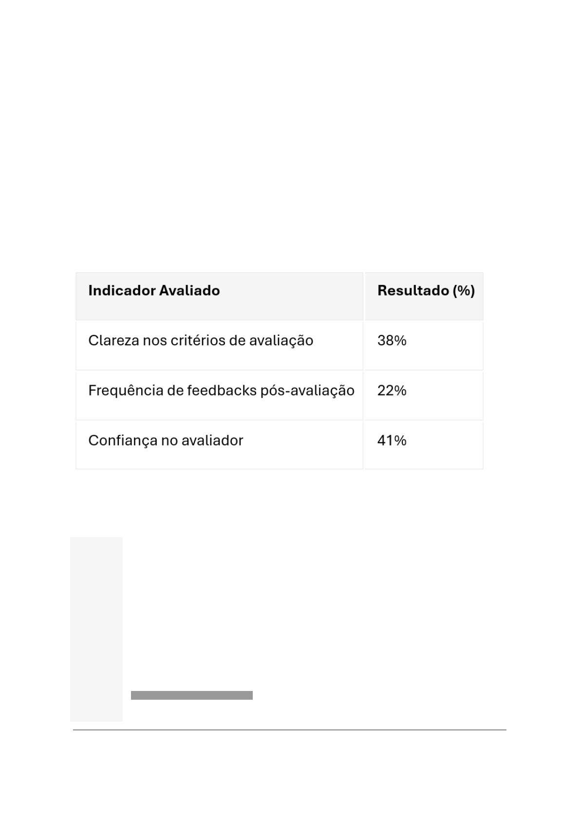 Questão 1/10 - Avaliação de Desempenho Ler em voz alta A empresa “Construmax”, do setor de engenharia civil, utiliza há anos a avaliação 90º como principal ferramenta de gestão de desempenho. O processo é conduzido anualmente, com base em formulários padronizados preenchidos exclusivamente pelos gestores diretos. Recentemente, a área de Recursos Humanos realizou uma pesquisa interna para avaliar a percepção dos colaboradores sobre o processo. Os resultados indicaram que muitos funcionários se sentem inseguros quanto aos critérios utilizados e relataram que raramente recebem devolutivas após a avaliação. Além disso, alguns gestores admitiram não se sentirem preparados para avaliar de forma justa e objetiva. A seguir, os principais resultados da pesquisa: Com base no caso apresentado, a principal fragilidade da avaliação 90º, conforme aplicada na Construmax, é: A A ausência de critérios técnicos para avaliação de desempenho. B A exclusão da área de Recursos Humanos do processo de avaliação. C A utilização de formulários padronizados, que impedem a personalização da avaliação. D A centralização da avaliação no gestor direto, sem preparo adequado e sem feedback. Você assinalou essa alternativa (D) Questão 2/10 - Avaliação de Desempenho Ler em voz alta A empresa “GlobalTech”, multinacional do setor de tecnologia, decidiu adotar a Avaliação 450º para os cargos de liderança sênior. A decisão foi motivada por inconsistências nos resultados da Avaliação 360º, que, embora rica em múltiplas perspectivas, apresentava dificuldades na consolidação e interpretação dos dados. Para resolver esse problema, a empresa contratou uma consultoria externa especializada em gestão de desempenho. O papel da consultoria foi analisar os dados coletados de diferentes fontes (pares, subordinados, superiores, clientes e autoavaliação), identificar padrões e propor planos de desenvolvimento personalizados para cada líder. Após dois ciclos de aplicação, os resultados foram expressivos: Com base no caso apresentado, a principal contribuição da Avaliação 450º em relação à 360º é: A A substituição da autoavaliação por uma análise exclusivamente técnica. B A inclusão de um consultor externo para interpretar os dados e propor ações de desenvolvimento. Você assinalou essa alternativa (B) C A eliminação de feedbacks de clientes e fornecedores, focando apenas no ambiente interno. D A centralização do processo de avaliação na área de Recursos Humanos. Questão 3/10 - Avaliação de Desempenho Ler em voz alta A empresa LogiTrans Brasil, do setor de transporte e logística, implementou recentemente um sistema de avaliação de desempenho baseado no método de escalas gráficas. O formulário utilizado incluía fatores como pontualidade, produtividade, cooperação e iniciativa, com cinco níveis de avaliação: excelente, bom, regular, fraco e insatisfatório. Durante a análise dos resultados, o setor de Recursos Humanos identificou que os avaliadores estavam utilizando o mesmo padrão de pontuação para todos os colaboradores, independentemente de suas diferenças de desempenho. Além disso, observou-se que os avaliadores tendiam a atribuir notas mais altas para colaboradores com quem tinham maior afinidade, mesmo quando os resultados objetivos não justificavam tais avaliações. A gerente de RH, preocupada com a confiabilidade do processo, propôs a inclusão de exemplos comportamentais específicos para cada nível da escala e a realização de treinamentos para os avaliadores, com o objetivo de reduzir a subjetividade e o efeito halo. Com base no caso apresentado, a principal medida para aumentar a confiabilidade do método de escalas gráficas é: A substituir o método por um sistema de avaliação 360 graus, eliminando a influência dos gestores. B aplicar a avaliação com maior frequência, para diluir os efeitos da subjetividade. C reduzir o número de fatores avaliados para facilitar o preenchimento do formulário. D incluir descrições comportamentais claras e treinar os avaliadores para aplicação padronizada. Você assinalou essa alternativa (D) Questão 4/10 - Avaliação de Desempenho Ler em voz alta A empresa IntegraRH está revisando seus processos de gestão de pessoas para garantir maior integração entre as práticas de Recursos Humanos. O diagnóstico revelou que os dados da avaliação de desempenho não estavam sendo utilizados para subsidiar decisões de treinamento, promoções ou movimentações internas. A seguir, o RH elaborou uma proposta de integração entre os processos: A proposta foi apresentada à diretoria, que solicitou uma análise crítica sobre os impactos dessa integração. A proposta do RH é adequada porque: Você não pontuou essa questão A Centraliza todas as decisões em avaliações subjetivas, reduzindo a burocracia. Você assinalou essa alternativa (A) B Utiliza os dados da avaliação de desempenho para fortalecer decisões estratégicas e promover o desenvolvimento humano. C Elimina a necessidade de avaliações formais, priorizando a observação direta dos gestores. D Prioriza apenas os resultados financeiros, desconsiderando aspectos comportamentais. Questão 5/10 - Avaliação de Desempenho Ler em voz alta A empresa BioNutri Alimentos, em processo de expansão, decidiu implementar um sistema de avaliação de desempenho para seus colaboradores da área de produção. O setor de Recursos Humanos optou pelo uso do método de escalas gráficas, por ser considerado acessível e de fácil aplicação. O formulário adotado incluía fatores como produtividade, disciplina, cooperação e iniciativa. Cada fator era avaliado em uma escala de cinco níveis, com descrições genéricas como “ótimo”, “bom”, “regular”, “fraco” e “insatisfatório”. Após o primeiro ciclo de aplicação, os resultados indicaram que a maioria dos colaboradores foi avaliada com