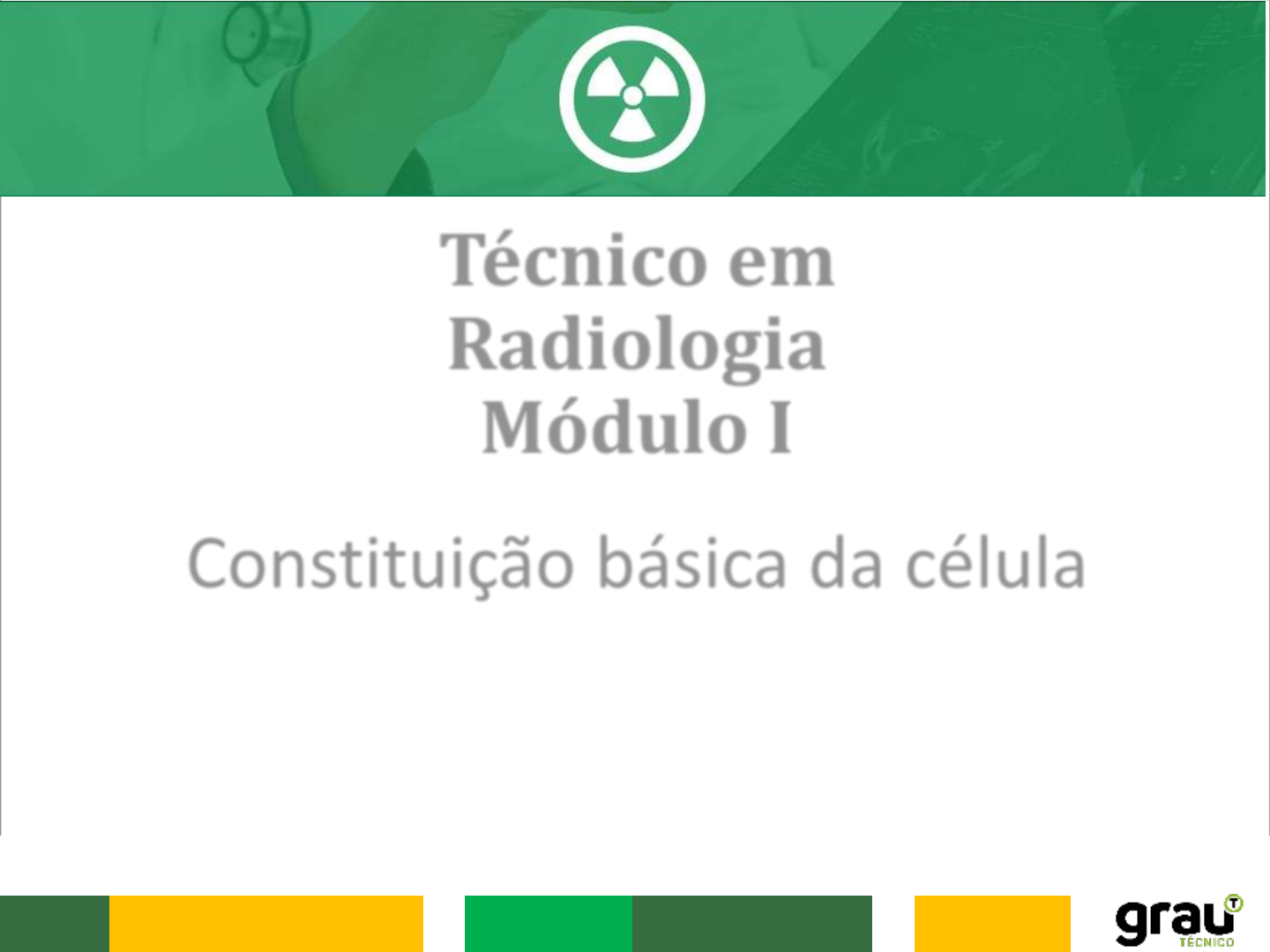 Técnico em Radiologia Módulo I Constituição básica da célula Professora Aline Delani Dúvidas da última aula • Qual a preocupação sobre o efeito radioativo em técnicos em radiologia? A exposição contínua e não protegida à radiação ionizante pode levar ao desenvolvimento de diversas doenças ocupacionais, algumas das quais incluem: catarata, doenças cardiovasculares e câncer, além disso problemas neurológicos como distúrbios cognitivos e alterações comportamentais. - Norma Regulamentadora 32 (NR 32) e o Plano de Proteção Radiológica são exemplos de documentos oficiais que estabelecem normas de segurança para a área. • Quais são os tipos de radiação utilizados no tratamento de doenças? Fontes de cobalto-60 liberam fótons sob forma de raios γ https://almeidaematos.com.br/quem-trabalha-com-raio-x-pode-desenvolver-doenca-do- trabalho/#:~:text=Trabalhadores%20que%20operam%20equipamentos%20de,prote%C3%A7%C3%A3o%20para%20trabalhadores%20dessa%20%C3%A1rea. Ácidos Nucléicos Proteínas lipídeos Carboidrat os Doenças genéticas Anemias perniciosa s Aterosclero se Diabetes Mellitus Bioquímica Medicina OMS define saúde “Completo bem estar físico, mental e social e não meramente a ausência de doença e enfermidade” A saúde pode ser considerada como aquela situação na qual todas, as milhares de reações intra e extra celulares que ocorre no organismo, estão ocorrendo em velocidades compatíveis com a sua sobrevida máxima, no estado fisiológico Constituição Básica da célula O organismo humano é uma estrutura muito complexa, cuja menor unidade com funções próprias é a célula. Núcleo (eucarióticas) de grande importância no estudo da Radiobiologia, visto que nele está contido o material genético do ser humano. Composição bioquímica 98% da massa corporal Composição do corpo humano 75% Água 13% Proteínas 6% Ácidos Nucléicos 3% Carboidratos 2% Sais Minerais 1% Outros Componentes químicos dos seres C – Carbono: moléculas orgânicas H – Hidrogênio: moléculas orgânicas, água O – Oxigênio: moléculas orgânicas, água N – Nitrogênio: ATP, bases nitrogenadas, proteínas P – Fósforo: ATP, DNA, RNA S – Enxofre: algumas proteínas/enzimas Constituição Básica da célula Embora as células sejam muito diferentes na aparência, tanto externa quanto interna, certas estruturas são comuns às células animais e vegetais. Assim, elas são envolvidas por uma membrana citoplasmática e contêm, na maioria dos casos, um núcleo facilmente identificável. O corpo humano tem aproximadamente 50 a 100 trilhões de células. Célula • As células são as menores unidades vivas do corpo e realizam todas as funções necessárias para sustentar a vida. Cada célula pode: • obter nutrientes e outras substâncias essenciais dos fluidos corporais circunvizinhos; • utilizar os nutrientes para produzir as moléculas de que necessita para sobreviver; • eliminar seus resíduos; • manter seu formato e integridade; • multiplicar -se. Organelas celulares As células humanas têm três partes principais: a membrana plasmática, o citoplasma e o núcleo. A membrana plasmática é a delimitação externa. A parte interna da membrana é o citoplasma, que compõe a maior parte da célula, contém a maioria das organelas celulares e envolve o núcleo. O núcleo controla as atividades celulares e fica próximo ao centro da célula. Membrana Plasmática Essa camada fina e flexível define a extensão da célula, separando dois dos principais compartimentos aquosos do organismo: o fluido intracelular, que se encontra dentro das células, e o fluido extracelular, que fica do lado de fora e entre as células. A função da membrana, além de proteger e estabelecer os limites físicos da célula está associado ao fato de que todos os nutrientes, secreções e rejeitos precisam passar por esta barreira. A membrana tem aproximadamente 7,5 nm de espessura, é composta primariamente de fosfolipídios (20 a 30%) e proteínas (50 a 70%). Ao contrário das paredes das células de muitos vegetais, que é feita em 98% de celulose, a membrana celular precisa de constante renovação química. Por meio de uma substância denominada de pectina, que é uma mistura de polissacarídeos, as células se acoplam às vizinhas, por meio da membrana celular. Citoplasma • O citoplasma, literalmente “material que forma células”, faz parte da célula que fica dentro da membrana plasmática e fora do núcleo. A maior parte das atividades celulares é realizada no citoplasma, que consiste em: citosol, organelas. ◉ O citosol ou matriz citoplasmática é a substância gelatinosa, que contém um fluido dentro do qual ficam suspensos os outros elementos citoplasmáticos, e consiste de água, íons e muitas enzimas. ◉ Algumas dessas enzimas iniciam a degradação de nutrientes (açúcares, aminoácidos e lipídios) que são a matéria-prima e fonte de energia para a atividade celular. Ribossomos Para Fora Retículo endoplasmático rugoso O retículo endoplasmático rugoso (RE rugoso) consiste principalmente de cavidades interconectadas chamadas cisternas. O RE rugoso é bem desenvolvido nas células glandulares que secretam uma grande quantidade de proteínas glandulares (células mucosas, por exemplo). Os ribossomos produzem proteínas para a função celular e extracelular. Complexo de Golgi O complexo de Golgi seleciona, processa e embala as proteínas e membranas produzidas pelo RE rugoso. Lisossomos Os lisossomos são sacos esféricos, revestidos por membranas que contêm vários tipos de enzimas digestórias. Essas enzimas, chamadas hidrolases ácidas, podem digerir praticamente todos os tipos de grandes moléculas biológicas. Mitocôndrias • As mitocôndrias produzem a energia para realizar a função celular. • É envolvida por duas membranas: a membrana externa, que é lisa, e a membrana interna, que se invagina formando cristas em forma de p