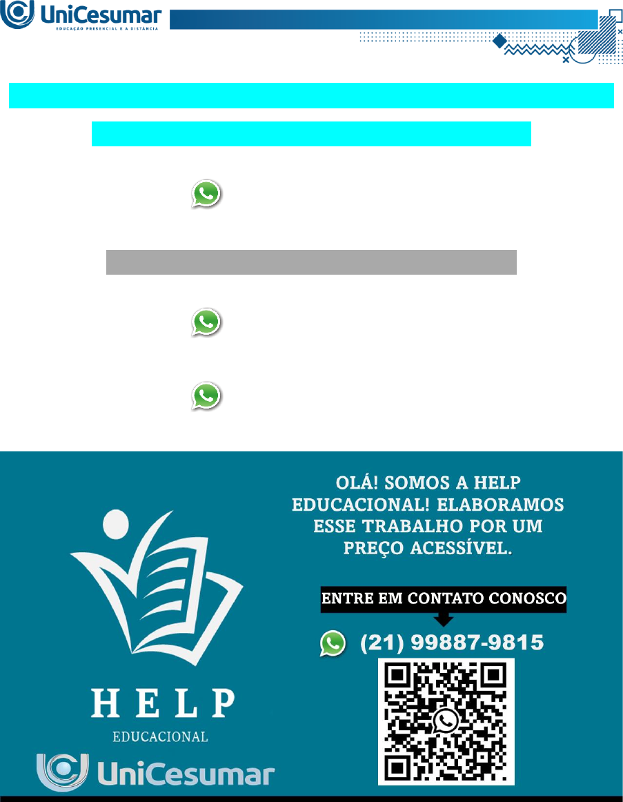 MAPA – ECOS - TÉCNICAS DE MAQUIAGEM, VISAGISMO E EMBELEZAMENTO PESSOAL - 53_2025 (21) 99887-9815 ASSESSORIA NOS SEUS TRABALHOS (21) 99887-9815 (21) 99887-9815 Olá aluno (a), espero que esteja bem. Brm vindos (as) ao MAPA de Técnicas de Maquiagem, Visa- gismo e Embelezamento Pessoal. Com esta atividade MAPA, da disciplina Técnicas de Maquiagem, Visagismo e Embelezamento Pes- soal, nosso objetivo é contribuir com sua formação na área da beleza, desenvolvendo habilidades essenciais para compreender e gerenciar os serviços voltados à saúde e à estética. Esperamos que, ao realizar esta atividade, você amplie seus conhecimentos e fortaleça sua atuação profissional. Um dos pontos fundamentais para o profissional da beleza é compreender a importância dos proto- colos de higienização e desinfecção — tanto de equipamentos, móveis, utensílios e produtos de maquiagem quanto dos pincéis, da própria higiene pessoal e do uso correto dos Equipamentos de Proteção Individual (EPIs). Além disso, a limpeza, higienização e esterilização de materiais e superfícies devem ser rigorosa- mente seguidas para garantir a segurança na área da saúde e evitar qualquer risco de contamina- ção. Nesse contexto, os EPIs assumem um papel indispensável. MORAIS, Lucimara Ferreira. Técnica de Maquiagem, Visagismo e Embelezamento Pessoal. Ma- ringá: Unicesumar, 2024. ETAPA 01 - ANÁLISE DO CASO Vamos analisar a seguinte situação: Juntamente com a limpeza, higienização e esterilização de utensílios, móveis e artigos de beleza, os Equipamentos de Proteção Individual (EPIs) são fundamentais para garantir a segurança na área da saúde e da estética, prevenindo qualquer tipo de contaminação. Para ilustrar essa prática, imagine que uma cliente chegue à sua clínica solicitando uma maquiagem para uma festa de casamento que acontecerá à noite. Você se prepara para o atendimento utilizando todos os EPIs necessários, realiza a maquiagem com dedicação em aproximadamente uma hora, e a cliente sai muito satisfeita com o resultado. Finalizado o atendimento, você segue corretamente o protocolo de limpeza e higienização dos pincéis utilizados, assegurando a biossegurança do ambiente e deixando o espaço adequado para o próximo atendimento. ETAPA 02 - QUESTÕES Com base nas informações descritas acima, responda as questões a seguir: 1) Você, enquanto futuro (a) Esteticista, deverá citar abaixo os EPIs e os itens descartáveis de ma- quiagem de uso individual para cada cliente que devemos utilizar na área da beleza para atender nossos clientes com mais segurança. 2) Descreva o protocolo de limpeza para os pincéis de maquiagem. 3) Ainda é necessário a limpeza das cubetas, paletas, espátulas, macas, cadeiras e bancadas, entre outros artigos não críticos usados no campo da maquiagem. Dessa forma, descreva o processo de limpeza destes artigos não críticos conforme apontado pelo livro didático. Orientações para desenvolver sua atividade MAPA: 1. Leia o livro da disciplina; 2. Assista as aulas conceituais e ao vivo; 3. Assista ao vídeo de orientação para a realização da atividade. Link de acesso: https://youtu.be/Xwh-Y-3ewqU (copiar e colar no navegador de internet); 4. Baixe o "Modelo de entrega do MAPA", disponível no ambiente Studeo na pasta “Material da Disci- plina” e preencha corretamente todos os campos solicitados; 5. Anexe seu modelo de entrega do MAPA respondido no espaço específico da atividade MAPA; 6. Lembre-se de clicar em “Finalizar” para efetivar sua participação; 7. Evite plágio de informações, neste caso, insira a referência utilizada para consulta das respostas. 8. Atividades com imagens da internet ou compartilhadas entre alunos sofrerão penalizações. *Essa atividade faz parte da composição de notas para a média na disciplina. Sua realização é muito importante. **Em caso de dúvidas, entre em contato com seu professor mediador. Bons estudos! OLÁ! SOMOS A HELP EDUCACIONAL! ELABORAMOS ESSE TRABALHO POR UM PREÇO ACESSÍVEL. ENTRE EM CONTATO CONOSCO (21) 99887-9815