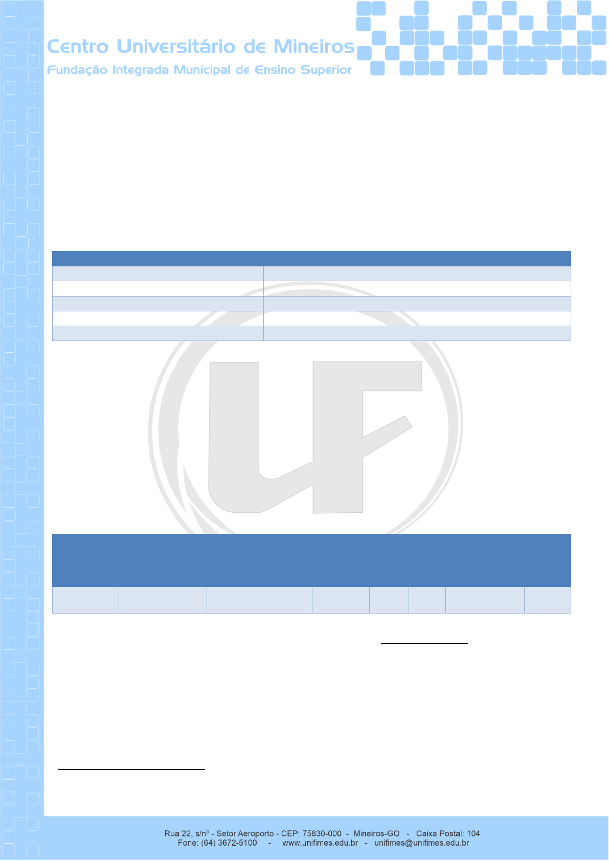 1 de 25 FUNDAÇÃO INTEGRADA MUNICIPAL DE ENSINO SUPERIOR - FIMES CENTRO UNIVERSITÁRIO DE MINEIROS - UNIFIMES VESTIBULAR PARA O CURSO DE MEDICINA PARA INGRESSO NO SEGUNDO SEMESTRE LETIVO DE 2025 EDITAL Nº 04/2025 O Centro Universitário de Mineiros – UNIFIMES, através de sua Reitora e da Comissão Permanente de Processo Seletivo, torna público a todos os interessados que, no período e local indicados neste edital, estarão abertas as inscrições para o Concurso Vestibular para o Curso de Graduação em Medicina da UNIFIMES, para ingresso no 2º semestre letivo de 2025, com vagas para o Campus sede de Mineiros-GO. O vestibular será realizado segundo as regras aqui dispostas, as quais a Instituição se obriga a cumprir e os candidatos, ao se inscreverem, declaram conhecer plenamente as normas e com elas concordar. O vestibular será executado obedecendo ao cronograma a seguir: CRONOGRAMA DE EXECUÇÃO Inscrições 12/03 a 22/05/2025 Último dia para pagamento da inscrição 23/05/2025 Prova 15/06/2025 Resultado 11/07/2025 Matrícula 1ª Chamada 14 e 15/07/2025 1 – DAS DISPOSIÇÕES GERAIS 1.1 O Concurso Vestibular de que trata este edital será realizado em uma única fase, com 2 processos de seleção, por provas presenciais ou por indicação das notas do EXAME NACIONAL DO ENSINO MÉDIO – ENEM nas edições de 2020, 2021, 2022, 2023 ou 2024. Ambos os processos têm a finalidade de selecionar e classificar os candidatos para ingresso no 2º semestre letivo de 2025, no curso de graduação em Medicina do Centro Universitário de Mineiros - UNIFIMES. 1.2 Este Processo Seletivo destina-se a candidatos que tenham concluído o Ensino Médio ou equivalente, ou que irão concluir em data anterior a data da matrícula. 1.3 Todos os horários referenciados neste edital têm por base o horário oficial de Brasília. 2 – DAS VAGAS 2.1 Serão oferecidas 60 (sessenta) vagas para o curso de Medicina, em período integral, assim distribuídas: Curso Vagas exclusivas para ingresso pelo Vestibular Prova Presencial Vagas exclusivas para ingresso pelo Vestibular Nota do Enem Semestre de Ingresso Duração Turno Reconhecimento /Autorização Valor Mensal1 Medicina - Bacharelado 50 10 2º semestre de 2025 6 anos Integral Resolução CEE nº 15/2021 R$ 7.572,00 2.2 O curso de Medicina da UNIFIMES é desenvolvido e mediado a partir das Metodologias Ativas em todos os períodos. 2.3 O período integral compreende aulas de Segunda a Sexta, das 7h às 12h10 e das 13:30h às 18h40. Podendo ter aulas no período noturno e aos sábados quando houver necessidade. 2.4 Os horários de aulas, bem como o tempo mínimo de conclusão de curso, são estabelecidos conforme a matriz curricular do curso de Medicina, respeitada as Diretrizes Curriculares Nacionais. 2.5 O Curso de Medicina do Centro Universitário de Mineiros – UNIFIMES, funciona no campus sede, situada à Rua 22, s/nº, Setor Aeroporto, Mineiros-GO, ou em qualquer uma das Unidades da UNIFIMES, dependendo da demanda estrutural do curso. 1 Valor referente ao ano de 2025 e sujeito a reajuste pelo índice de correção monetária do INPC (Índice Nacional de Preços do Consumidor), acumulado durante o período de 12 meses. 2 de 25 2.6 O sistema de matrícula é semestral e corresponde à 1ª mensalidade, cujo valor é integral, sem desconto de pontualidade. A partir da 2ª mensalidade o aluno devidamente matriculado no curso de Medicina que efetuar os pagamentos até a data do vencimento tem desconto de pontualidade conforme legislação vigente. 3 – DAS INSCRIÇÕES 3.1 As inscrições para o Concurso Vestibular para ingresso no 2º semestre letivo de 2025 serão feitas exclusivamente pela Internet, através do Portal da Fundação Vunesp (www.vunesp.com.br), das 10 horas do dia 12 de março, até às 23:59 horas do dia 22 de maio de 2025, mediante o preenchimento da ficha de inscrição, podendo o candidato optar por uma das formas de ingresso, sendo por provas presenciais ou usando as notas do ENEM das edições de 2020 a 2024. 3.2 O candidato que desejar concorrer a ambas a formas de ingresso deverá fazer duas inscrições, sendo uma para cada modalidade. 3.3 A emissão do boleto bancário deverá ser feita após o preenchimento da ficha de inscrição, na área do candidato, no item “PAGAMENTO” e em seguida “GERAR BOLETO”. O valor da taxa de inscrição é de acordo com a modalidade de ingresso: 3.3.1 INGRESSO USANDO AS NOTAS DO ENEM 2020 A 2024: R$ 320,00 (Trezentos e vinte reais); 3.3.2 INGRESSO POR PROVAS PRESENCIAIS: R$ 450,00 (Quatrocentos e cinquenta reais). 3.4 Não serão aceitas inscrições por e-mail, via postal, telefone ou por qualquer outro meio não especificado no item anterior. 3.5 O pagamento da taxa deverá ser efetuado exclusivamente por meio do boleto bancário emitido no ato da inscrição, impreterivelmente até 23/05/2025. Não serão concedidas isenções de taxa de inscrição e/ou dilatações de prazo de vencimento. 3.6 A não compensação de cheque utilizado para pagamento da taxa de inscrição implicará no cancelamento da mesma e a consequente eliminação do candidato do presente Concurso Vestibular. 3.7 Não haverá, sob nenhuma hipótese, devolução da taxa de inscrição e ela terá validade exclusiva para o Concurso Vestibular de que trata este edital. 3.8 Candidatos com deficiência ou com mobilidade reduzida, que necessitarem de atendimento específico para a realização das provas presenciais, deverão, além de se inscrever pela internet e declarar a sua necessidade na ficha de inscrição, encaminhar à Fundação VUNESP, conforme previsto no item 3.8.7, até 23/05/2025, laudo emitido por especialista, devidamente preenchido, assinado e carimbado pelo médico, que descreva com precisão, a espécie e o grau ou nível de deficiência, com expressa referência ao código correspondente da Classificação Internacional de Doenças – CID, bem como as condições necessárias para a realiza