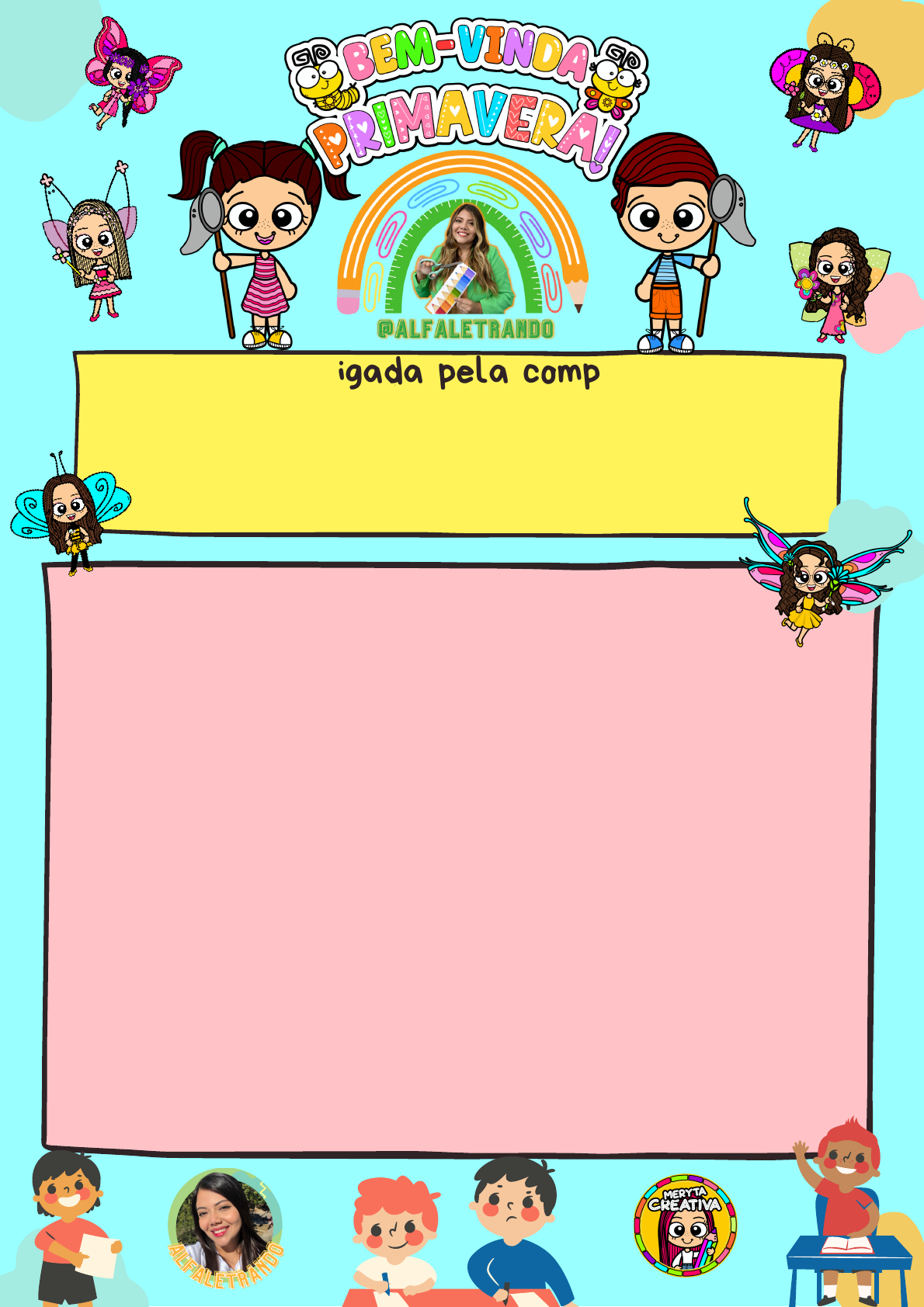 Obrigada pela compra! Espero que use com muita criatividade o seu arquivo e se quiser pode me marcar nas redes sociais para que eu reposte você! O compartilhamento é proibido! TERMOS DE USO DESSE MATERIAL Você está recebendo o KIT PRIMAVERA ALFALETRANDO! Este material foi elaborado por @alfaletrando ( Prof.º Andressa Marchioti) A utilização deste material é apenas para USO PESSOAL exclusivo da pessoa que adquiriu o arquivo, por isso é proibido o seu compartilhamento! Qualquer venda ilegal deste produto será penalizada, pois o arauivo é patenteado como um e-book da Autora Andressa Marchioti! O QUE NÃO PODE: - Não pode vender ou revender este material; Não pode postar ou distribuir em nenhum site na internet; - Não pode distribuir em grupos de Facebook, WhatsApp ou Telegram; - Não pode arquivar publicamente em drives ou outros semelhantes de forma pública para que outras pessoas possam ter acesso. DIREITOS DE IMAGENS: NÃO É PERMITIDO Qualquer uso comercial desse material. - MATERIAL PROTEGIDO PELOS DIREITOS AUTORAIS CONFORME A LEI Nº 9.610, DE 19 DE FEVEREIRO DE 1998. EVITE PROBLEMAS JURÍDICOS Todos os direitos de imagens são de seus autores especificados abaixo: L E IL Ã O D E J A R D IM C E C ÍL IA M E IR E L E S N O M E : T U R M A : T U R M A : @ A LF A LE TR A N D O L E IL Ã O D E J A R D IM C E C ÍL IA M E IR E L E S N O M E : T U R M A : T U R M A : @ A LF A LE TR A N D O Q U E M M E C O M P R A U M JA R D IM C O M F L O R E S ? @ A LF A LE TR A N D O B O R B O L E T A S D E M U IT A S C O R E S , @ A LF A LE TR A N D O L A V A D E IR A S E P A S S A R IN H O S , @ A LF A LE TR A N D O O V O S V E R D E S E A Z U IS N O S N IN H O S ? @ A LF A LE TR A N D O Q U E M M E C O M P R A E S T E C A R A C O L ? @ A LF A LE TR A N D O Q U E M M E C O M P R A U M R A IO D E S O L ? @ A LF A LE TR A N D O U M L A G A R T O E N T R E O M U R O E A H E R A , @ A LF A LE TR A N D O U M A E S T Á T U A D A P R IM A V ER A ? @ A LF A LE TR A N D O Q U EM M E C O M P R A E S T E FO R M IG U EI R O ? @ A LF A LE TR A N D O E ES T E S A P O , Q U E É JA R D IN EI R O ? @ A LF A LE TR A N D O E A C IG A R R A E S U A C A N Ç Ã O ? @ A LF A LE TR A N D O E O G R IL IN H O D EN T R O D O C H Ã O ? Es te é o m eu L ei lã o! @ A LF A LE TR A N D O