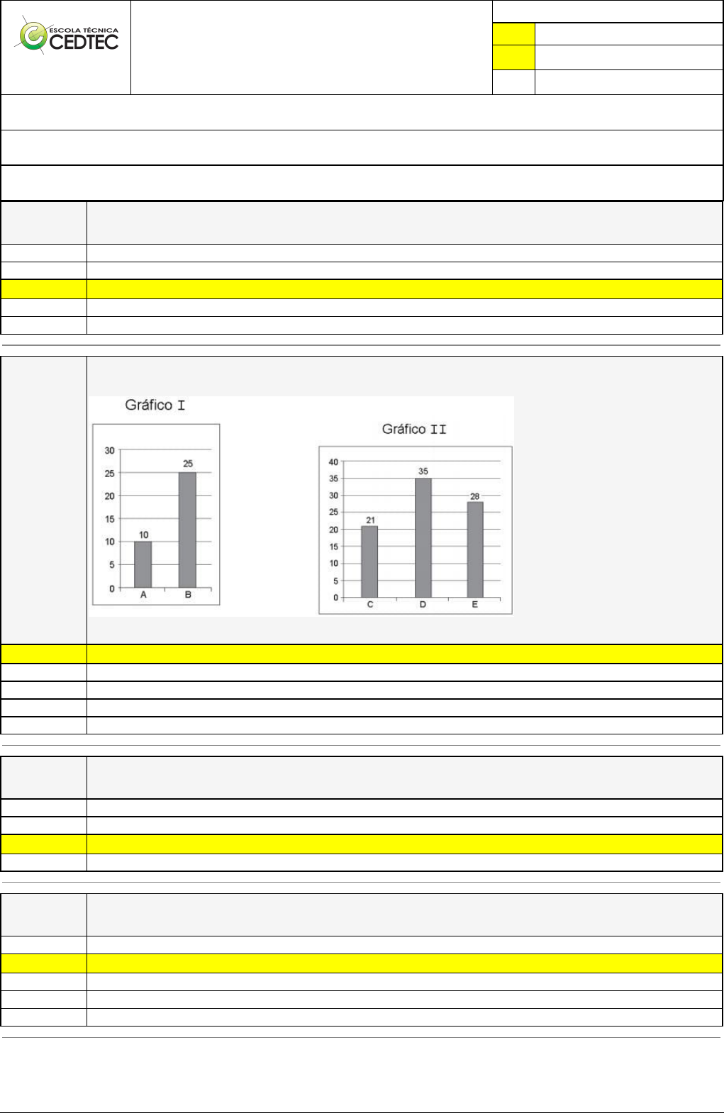 Pincel Atômico - 12/09/2025 20:16:54 1/5 LUCAS RAIDER MARTINS RAMOS Avaliação Online (SALA EAD) - Todos Capitulos/Referencias Atividade finalizada em 17/06/2025 19:41:17 (4374116 / 1) LEGENDA Resposta correta na questão # Resposta correta - Questão Anulada X Resposta selecionada pelo Aluno Disciplina: ESTATÍSTICA [1043740] - Avaliação com 20 questões, com o peso total de 30,00 pontos [capítulos - Todos] Turma: Curso Técnico: Segurança do Trabalho - Grupo: FEVEREIRO/24 PRES - N.SEG.TRAB.Fev.24A [115042] Aluno(a): 91578380 - LUCAS RAIDER MARTINS RAMOS - Respondeu 18 questões corretas, obtendo um total de 27,00 pontos como nota [350046_6037] Questão 001 Um aluno prestou vestibular em apenas duas Universidades. Suponha que, em uma delas, a probabilidade de que ele seja aprovado é de 30%, enquanto na outra, pelo fato de a prova ter sido mais fácil, a probabilidade de sua aprovação sobe para 40%. Nessas condições, a probabilidade deque esse aluno seja aprovado em pelo menos uma dessas Universidades é de: 68% 52% X 58% 70% 60% [350046_3392] Questão 002 O supervisor de uma agência bancária obteve dois gráficos que mostravam o número de atendimentos realizados por funcionários. O Gráfico I mostra o número de atendimentos realizados pelos funcionários A e B, durante 2 horas e meia, e o Gráfico II mostra o número de atendimentos realizados pelos funcionários C, D e E, durante 3 horas e meia. Observando os dois gráficos, o supervisor desses funcionários calculou o número de atendimentos, por hora, que cada um deles executou. O número de atendimentos, por hora, que o funcionário B realizou a mais que o funcionário C é: X 4 3 5 7 10 [350046_3339] Questão 003 Uma bola será retirada de uma sacola contendo 5 bolas verdes e 7 bolas amarelas. Qual a probabilidade desta bola ser verde? 1/3 7/12 X 5/12 1/2 [350046_60399] Questão 004 Assinale a expressão que representa o conceito de Variável: Dado numérico, sendo considerado a matéria-prima sobre o qual devemos aplicar os métodos estáticos. X Conjunto de resultados possíveis de um fenômeno. Coleta, organização, descrição dos dados, cálculo e interpretação de coeficientes associados a incertezas. Conjunto total de elementos portadores de, pelo menos uma característica comum. É a medida da incerteza, métodos que se fundamentam da probabilidade. Pincel Atômico - 12/09/2025 20:16:54 2/5 [350046_9766] Questão 005 Uma rede de supermercados resolveu fazer uma pesquisa para saber qual horário as pessoas mais gostavam de ir ao supermercado. Foram entrevistadas 2000 pessoas e o resultado está no gráfico abaixo. Durante qual horário a maioria das pessoas entrevistadas preferem ir ao supermercado? 23h às 24h. 20h às 23h. 12h às 16h. 16h às 20h. X 8h às 12h. [350046_6039] Questão 006 Jogamos dois dados comuns. Qual a probabilidade de que o total de pontos seja igual a 10? 1/11 1/6 X 1/12 1/10 2/23 [350046_1564] Questão 007 A tabela abaixo indica a quantidade mensal de carros vendidos pela Concessionária Z. Quantidade mensal de carros vendidos pela Concessionária Z. (2º semestre de 2007) Meses Número de Carros Julho 400 Agosto 300 Setembro 550 Outubro 550 Novembro 600 Dezembro 800 Total 3.200 Qual é a frequência relativa do mês de dezembro? 21% 35% 32% 43% X 25% [350047_133200] Questão 008 Um vendedor de uma loja de roupas recebe mensalmente, como salário, uma parte fixa mais uma parte variável (comissão), calculada a partir de cada real por ele vendido. O gráfico seguinte mostra algumas possibilidades de recebimento de salário (y) em função das vendas mensais (x). Com base nessa situação hipotética e no gráfico, é correto afirmar que, a cada real vendido pelo profissional de vendas, ele recebe a quantia de: R$ 0,08 R$ 0,20 Pincel Atômico - 12/09/2025 20:16:54 3/5 X R$ 0,04 R$ 0,06 [350047_133247] Questão 009 Assinale a alternativa que faz a comparação correta entre os termos determinados abaixo: () Amplitude é a diferença entre o maior e o menor valor do conjunto de dados, ignora como os dados estão distribuídos. () Coeficiente de variação é uma medida de dispersão que tem como objetivo a avaliação de um conjunto de dados, analisando o quanto eles estão dispersos. () Desvio padrão dá a noção de como os valores de determinado conjunto estão dispersos em relação a sua média aritmética, informa a distância média em que os valores de determinado conjunto de dados estão em relação à média desse conjunto. () Variância mostra a dispersão dos dados em relação à média de um conjunto, o valor do coeficiente de variação é representado em porcentagem e, portanto, pode ser comparado. V V F F F V F V V F F V X V F V F [350047_6053] Questão 010 O Departamento de Comércio Exterior de um Banco possui 30 funcionários com a seguinte distribuição salarial em reais. . 10 com salário de R$2.000 . 12 com salário de R$3.600 . 5 com salário de R$4.000 . 3 com salário de R$6.000 Quantos funcionários que recebem R$3.600,00 devem ser demitidos para que a mediana desta distribuição de salários seja de R$2.800,00? 10 X 11 7 9 8 [350047_133190] Questão 011 Assinale a alternativa que representa o tipo correto de amostragem para a situação abaixo: “Lista de todos os vendedores (que atuam em todas as lojas da rede). Selecionei aleatoriamente N vendedores” Amostragem por Agrupamento X Amostragem Aleatória Amostragem Sistemática Amostragem Proporcional [350047_1572] Questão 012 Qual a temperatura modal medida observando os dados abaixo: Temperaturas Frequência 0º C 4 1º C 9 2º C 12 3º C 6 1ºC 0ºC 3ºC 4ºC X 2ºC [350047_3440] Questão 013 Num determinado local, o litro de combustível, composto de 75% de gasolina e 25% de álcool, é comercializado ao preço de R$ 2,05, sendo o litro de álcool comercializado ao preço de R$ 1,00. Se os preços são mantidos proporcionais, o preço do litro de gasolina é: R$ 2,20 X R$ 2,40 R$ 2,15 R$ 2,42 R$ 2,