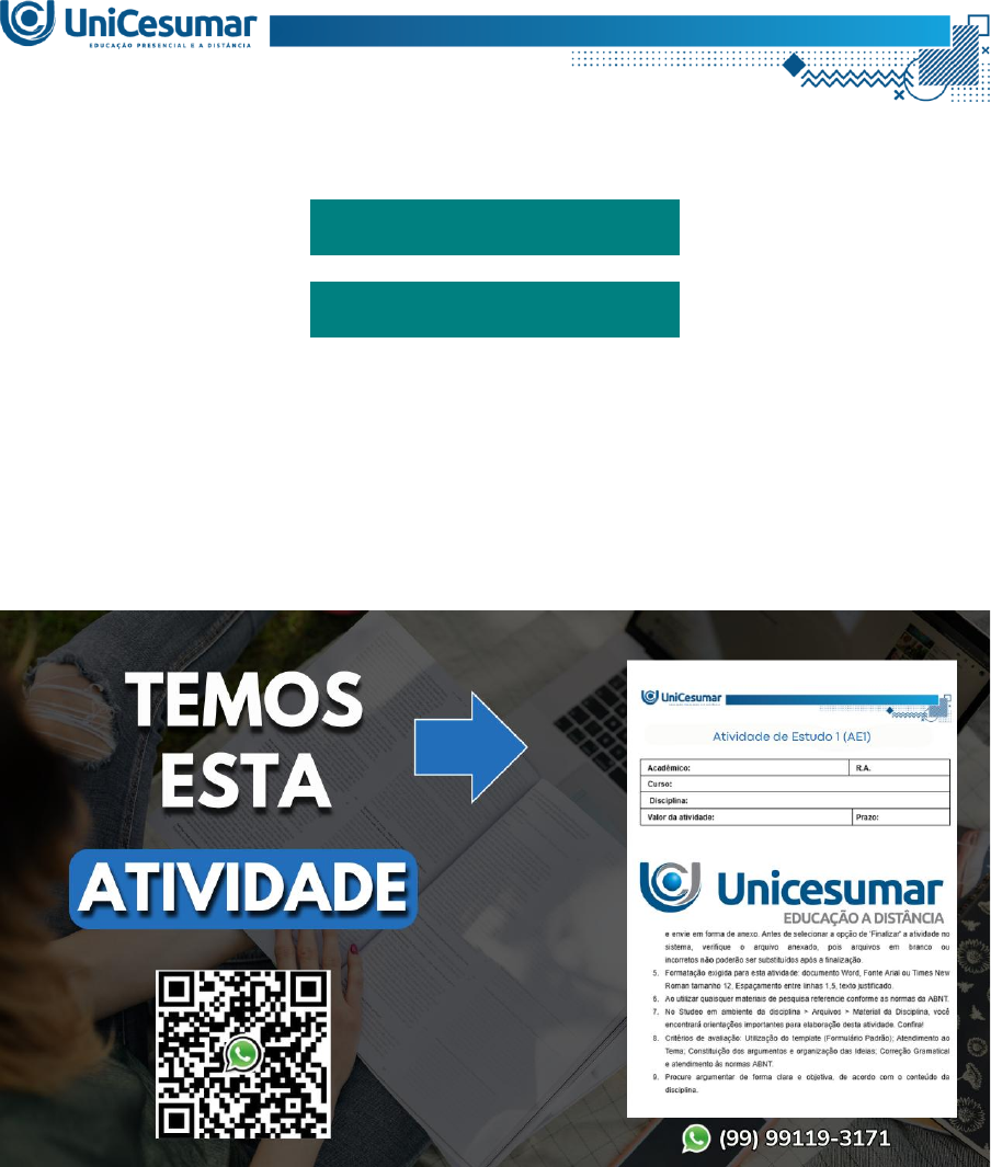 (99) 99119-3171 (99) 99119-3171 Olá!!! Somos da Assessoria Excellence Educacional e iremos te ajudar com este trabalho! Entre em contato conosco! MAPA - QUÍMICA GERAL E ORGÂNICA - 53_2025 MAPA - QUÍMICA GERAL E ORGÂNICA - 53_2025 2. Utilize o Modelo Padrão da Atividade MAPA para realizar esta atividade. Ele se encontra em "Material da Disciplina". Siga todas as instruções constantes nesse modelo. 3. Assista ao Vídeo de Orientação da Atividade MAPA, que estará na "Sala do Café”. CONTEXTUALIZAÇÃO Em uma amostra ou mistura, a quantificação de uma substância, como a determinação de sua massa ou concentração, assim como o conhecimento das reações químicas que ocorrem entre as substâncias, faz parte da área de atuação de inúmeros profissionais, como agrônomos, engenheiros ambientais, biólogos, químicos, biomédicos e farmacêuticos. Isso ocorre porque, em diferentes contextos, pode ser necessário avaliar amostras de água de rios, solos, medicamentos, cosméticos ou fluidos biológicos como sangue e urina, a fim de identificar elementos ou substâncias que podem ser o princípio ativo de um medicamento ou composto tóxico que precisa ser removido de uma amostra ambiental ou biológica. A titulação é uma técnica amplamente utilizada para quantificar uma substância presente em uma amostra, a partir de sua reação química, com uma solução de concentração conhecida (titulante). A concentração de uma solução é conhecida, o titulante é uma solução padrão, e se deseja determinar a concentração, até então desconhecida, da sua amostra (titulado). Para realizar a titulação de um ácido, é necessário um titulante contendo uma base, para que ocorra uma reação ácido-base, também chamada de reação de neutralização. A titulação é amplamente utilizada para confirmar a concentração ou percentagem de uma substância em um produto que será comercializado. Por exemplo, para se determinar a quantidade de ácido acético presente no vinagre, se faz uma titulação com hidróxido de sódio (NaOH); para se determinar a quantidade de cloreto de sódio (NaCl) presente em enlatados, se faz uma titulação com nitrato de prata. Semelhantemente, a quantificação das substâncias presentes em um efluente industrial se faz necessária para garantir que o efluente possa ser descartado no meio ambiente sem prejudicar a flora e a fauna. Para melhor compreensão da atividade MAPA, iremos realizar uma prática no Atlas Digital de Química da UniCesumar, onde é possível encontrar uma análise de uma amostra real. Como acessar? a) Acesse o link: https://221322w.ha.azioncdn.net/Arquivo/ID/8537/index.html (copie o link e cole no navegador) ou Studeo > Menu > Laboratórios > Atlas Digital > Atlas Digital de Química; b) Vá até o MENU, no canto superior direito, escolha Práticas e Experimentação; c) Digite seu RA e senha do Studeo. Caso a sua senha não entre, digite "visitante" tanto no RA, quanto na senha (tudo em minúsculo); d) Após o vídeo de introdução, clique na prática Titulação Ácido-Base > Iniciar experimento. e) Assista ao vídeo e responda às perguntas durante a atividade. Se você acertar a resposta, pode continuar assistindo à experimentação; mas se errar, é direcionado a um outro vídeo, que explica o porquê de aquela resposta ser incorreta. REALIZANDO A ATIVIDADE Agora que você aprendeu sobre a prática de titulação, suponha que você necessita determinar a concentração de ácido clorídrico (HCl) em uma amostra. Para isso, você realizará uma titulação ácido-base, reagindo a sua amostra com a base NaOH, conforme a equação química, já balanceada, a seguir: 1HCl(aq) + 1NaOH(aq) → 1NaCl(aq) + 1H2O(l) Imagine que sua amostra estaria no erlenmeyer, e a solução de NaOH foi colocada na bureta para titular a sua amostra contendo HCl. O indicador utilizado foi o mesmo da prática que você assistiu no Atlas. Em sua titulação, você gastou 18,0 mL da solução de NaOH na concentração de 0,10 mol/L para titular 5,0 mL da solução de HCl de concentração desconhecida. Responda: A) Qual indicador foi utilizado para a titulação? Qual a cor apresentada pela solução no início e no final do experimento e por quê? B) Qual é a concentração molar de HCl de sua amostra? Apresente os cálculos, resolva utilizando regra de três ou a fórmula de titulação. Referências bibliográficas ATENÇÃO: Insira as referências bibliográficas de todos os materiais utilizados na pesquisa, incluindo os indicados no MAPA, no formato ABNT. ORIENTAÇÕES FINAIS - O arquivo deve ser enviado única e exclusivamente pelo seu Studeo, no campo “MAPA” desta disciplina. Toda e qualquer outra forma de entrega desta atividade não é considerada. - SOMENTE UM ARQUIVO PODE SER ANEXADO NO STUDEO - Coloque um nome simples no seu arquivo. Se o nome tiver caracteres estranhos (principalmente pontos) ou for muito grande, a equipe de correção pode não conseguir abrir o seu trabalho e ele pode ser zerado. - Sugerimos que envie o arquivo em PDF para evitar incompatibilidades e arquivos corrompidos. - VERIFIQUE SE VOCÊ ESTÁ ENVIANDO O ARQUIVO CORRETO! Identifique o arquivo com o seu primeiro e último nome e a disciplina para evitar que você troque o arquivo na hora de anexar. Ex: MAPA_Química Geral e Orgânica_ JoseSilva.pdf - Antes de clicar em FINALIZAR, certifique-se de que está tudo certo, pois, uma vez finalizado, você não poderá mais modificar o arquivo. Sugerimos que você clique no link gerado da sua atividade e faça o download para conferir. - Salve o comprovante de envio da atividade, clicando em Imprimir, acima do cabeçalho da atividade. Bom trabalho!