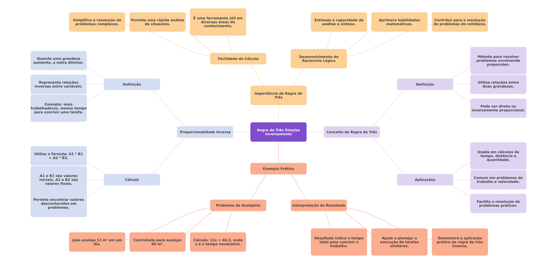 É uma ferramenta útil em Simplifica a resolução de Permite uma rápida análise diversas áreas do Estimula a capacidade de Aprimora habilidades Contribui para a resolução problemas complexos. de situações. análise e síntese. matemáticas. conhecimento. de problemas do cotidiano. Desenvolvimento do Quando uma grandeza Facilidade de Cálculo Método para resolver aumenta, a outra diminui. Raciocínio Lógico problemas envolvendo proporções. Representa relações inversas entre variáveis. Definição Definição Utiliza relações entre duas grandezas. Importância da Regra de Três Exemplo: mais Pode ser direta ou trabalhadores, menos tempo para concluir uma tarefa. inversamente proporcional. Proporcionalidade Inversa Regra de Três Simples Inversamente Conceito de Regra de Três Usada em cálculos de Utiliza a fórmula: A1 * B1 = A2 tempo, distância e quantidade. Exemplo Prático A1 e B1 são valores iniciais, A2 e B2 são Cálculo Aplicações Comum em problemas de trabalho e velocidade. valores finais. Permite encontrar valores desconhecidos em Facilita a resolução de Problema de Azulejista Interpretação do Resultado problemas. problemas práticos. João azuleja 12 em um Contratado para azulejar Cálculo: 12x = 60.3, onde Resultado indica tempo Ajuda a planejar a Demonstra a aplicação dia. 60 total para concluir execução de tarefas X é tempo necessário. prática da regra de três trabalho. similares. inversa.
